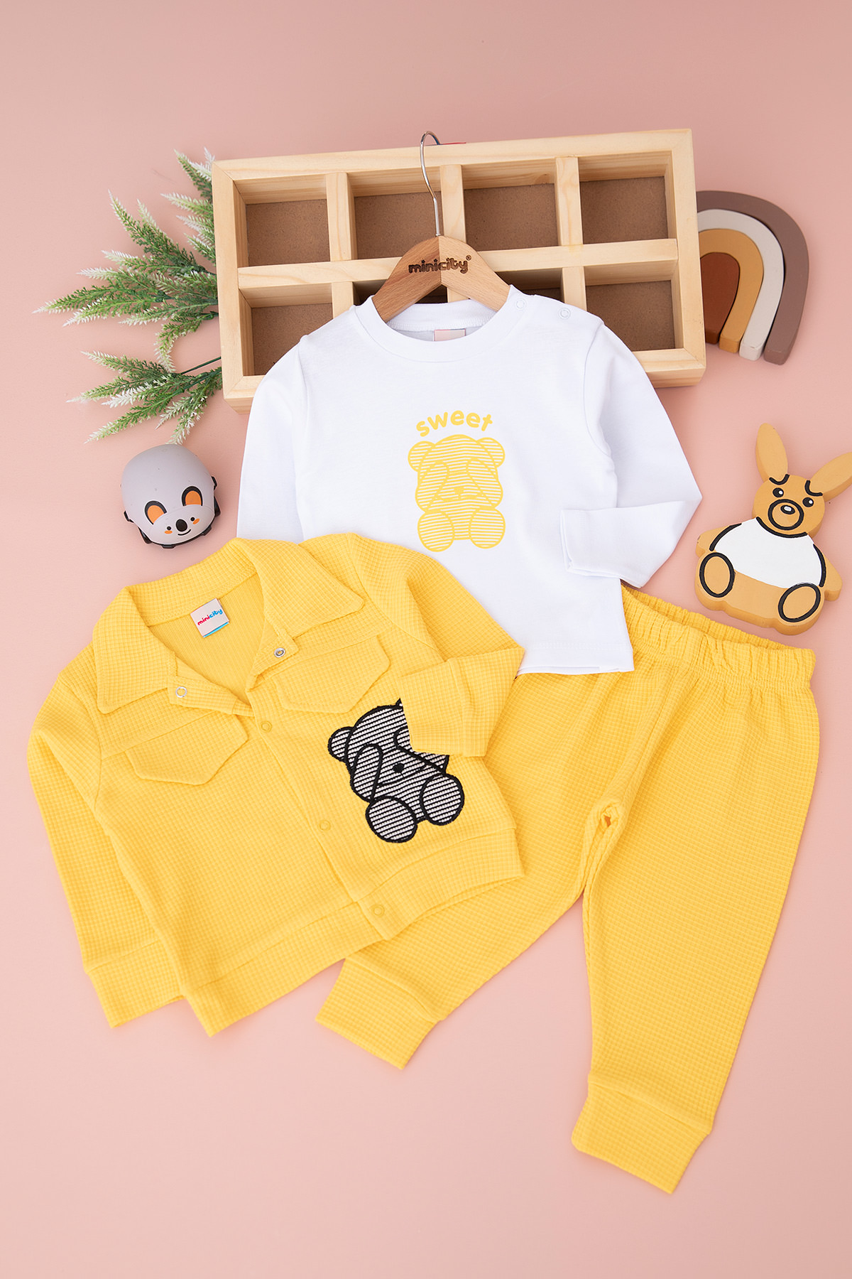 Erkek Bebek Ayıcık Nakışlı Takım - 23616 (9-24 Ay)
