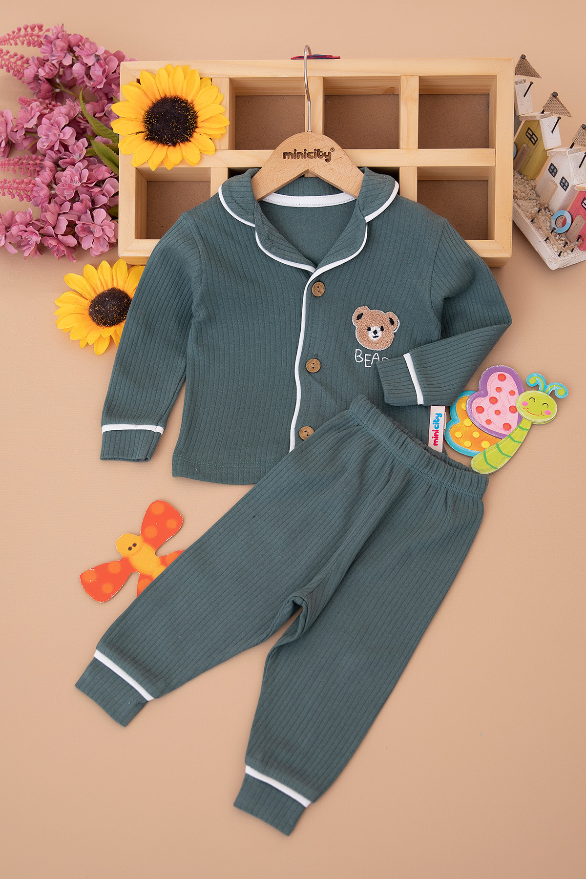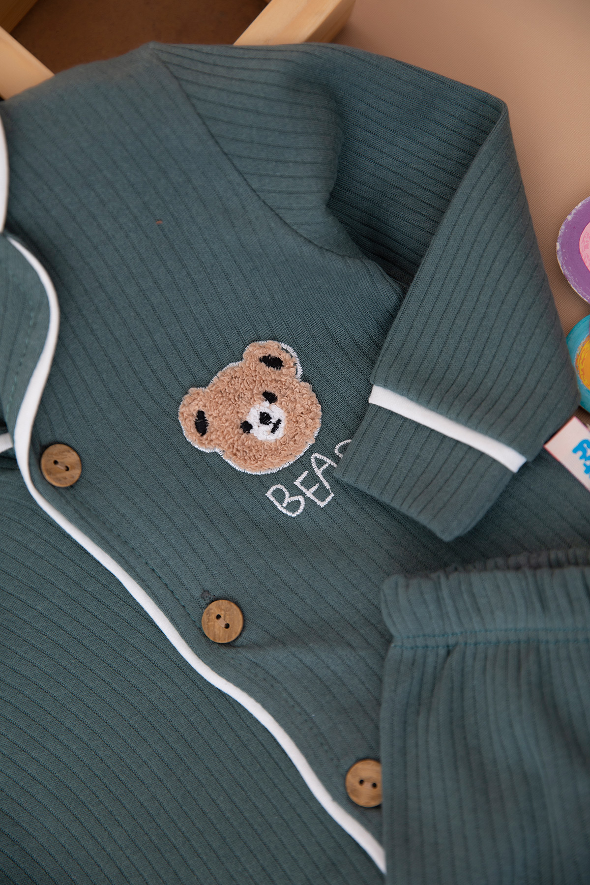 Erkek Bebek Ayıcıklı Düğmeli Pijama Takım - 1090 (6-24 Ay)