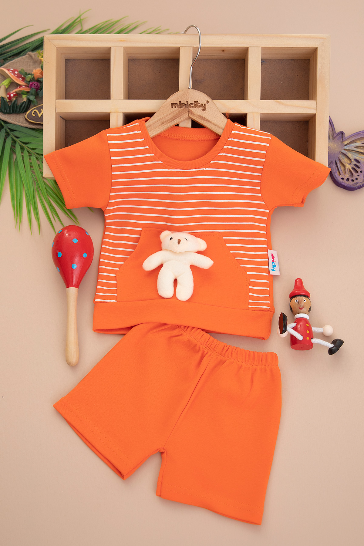 Erkek Bebek Ayılı Kargo Cepli Şortlu Takım - 2129 (3-18 Ay)