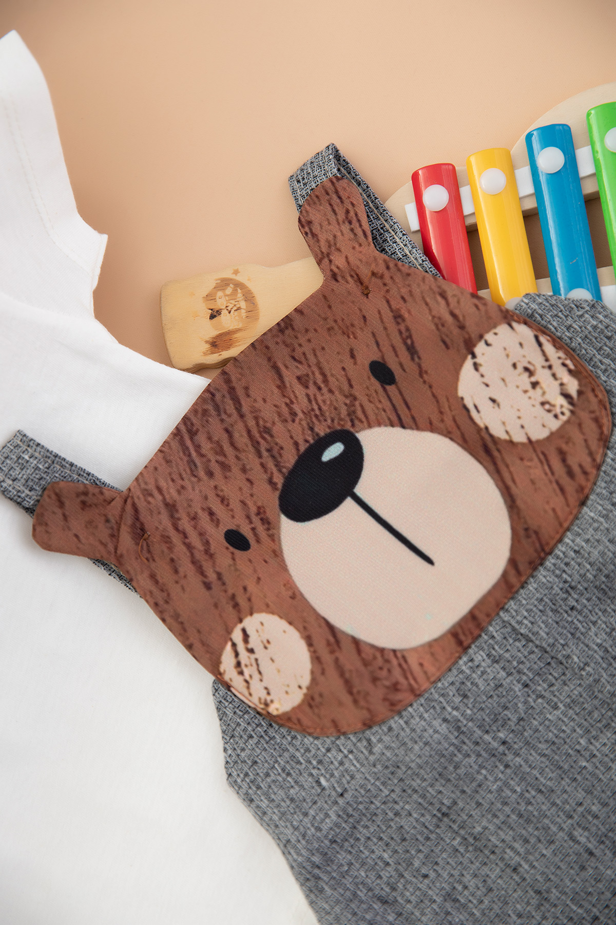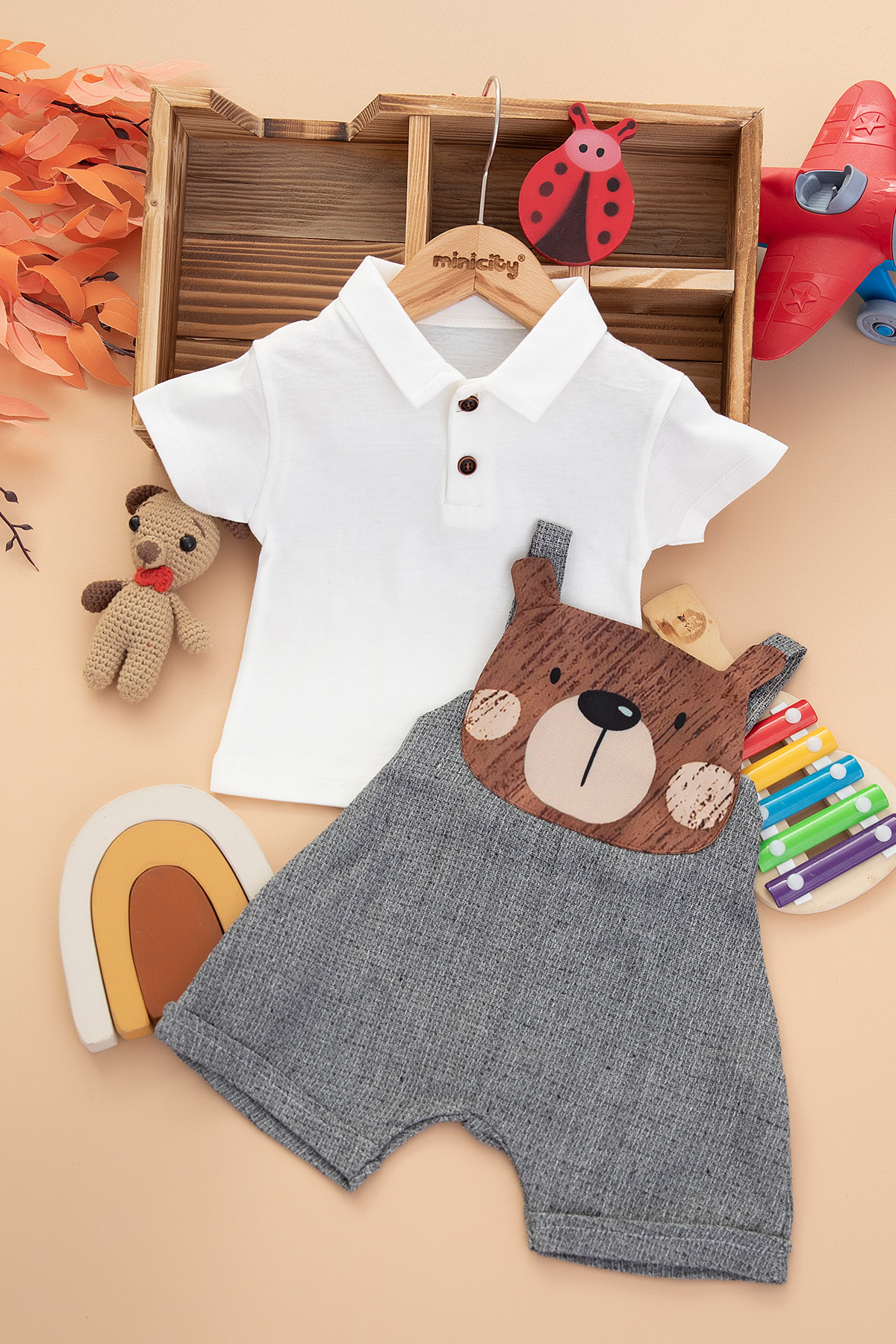 Erkek Bebek Ayılı Şort Salopet - 4003 (9-24 Ay)