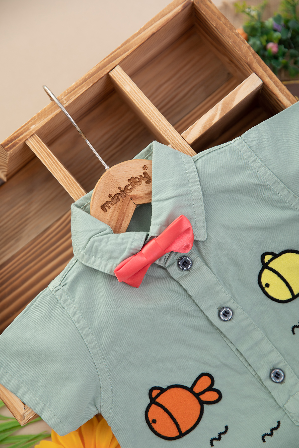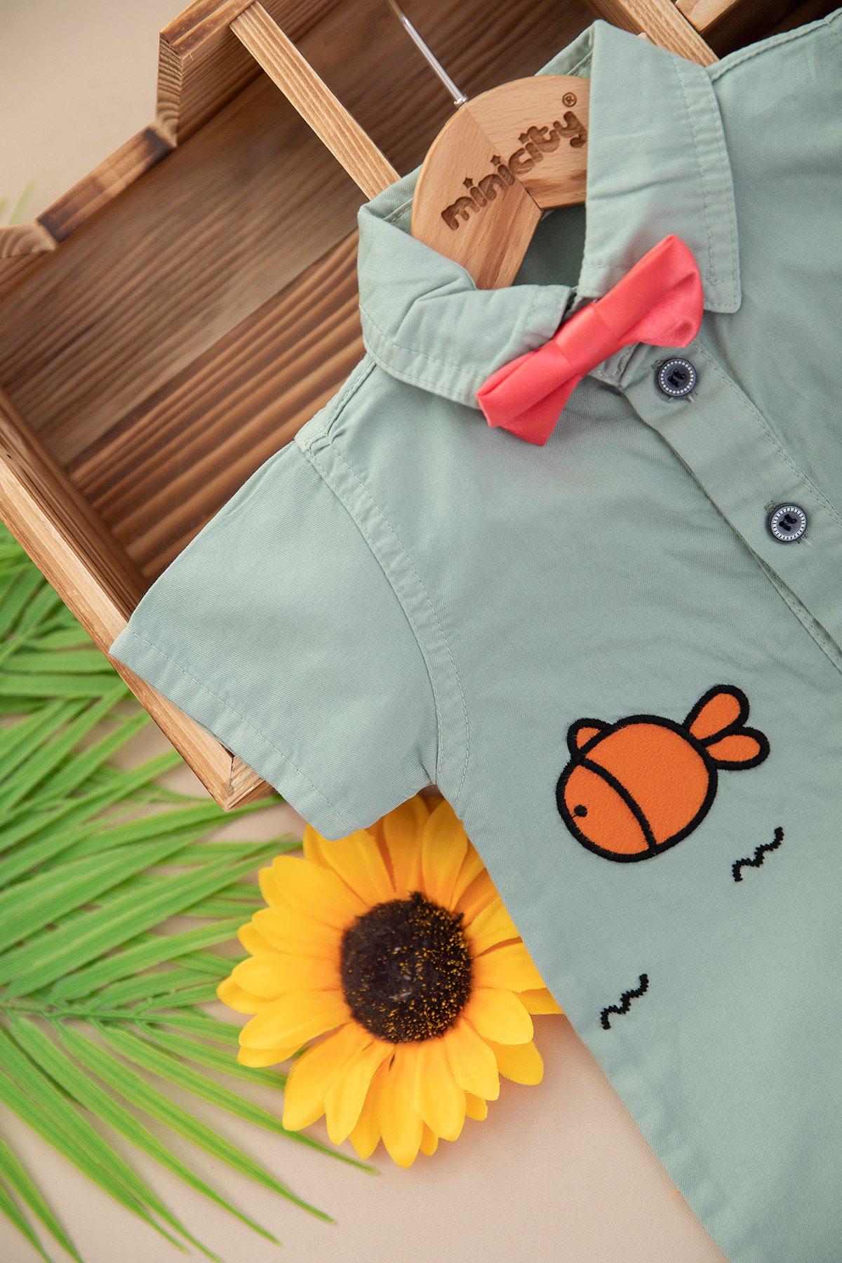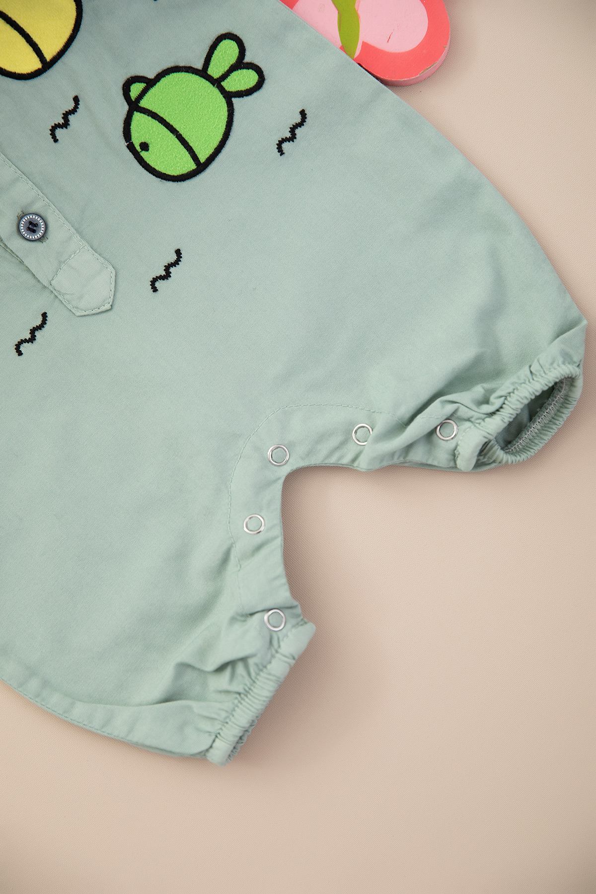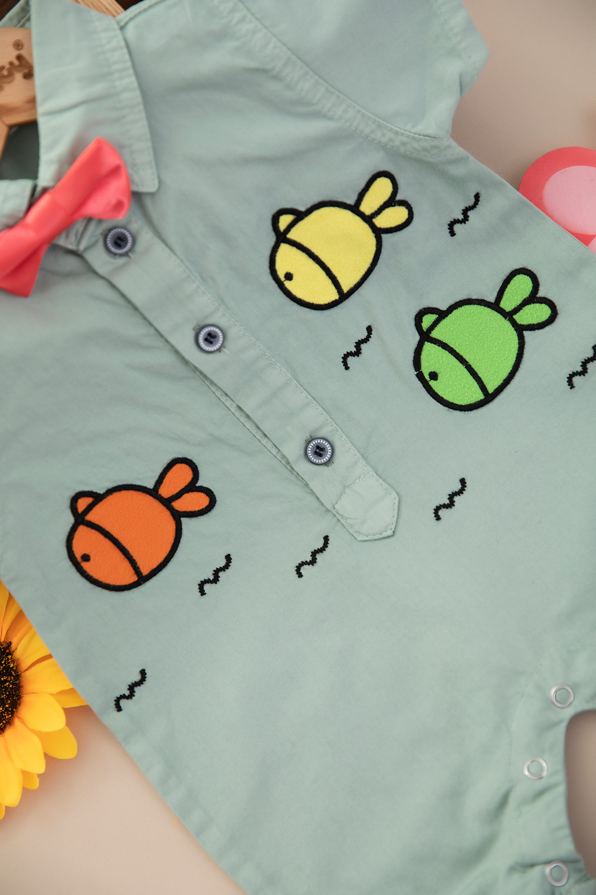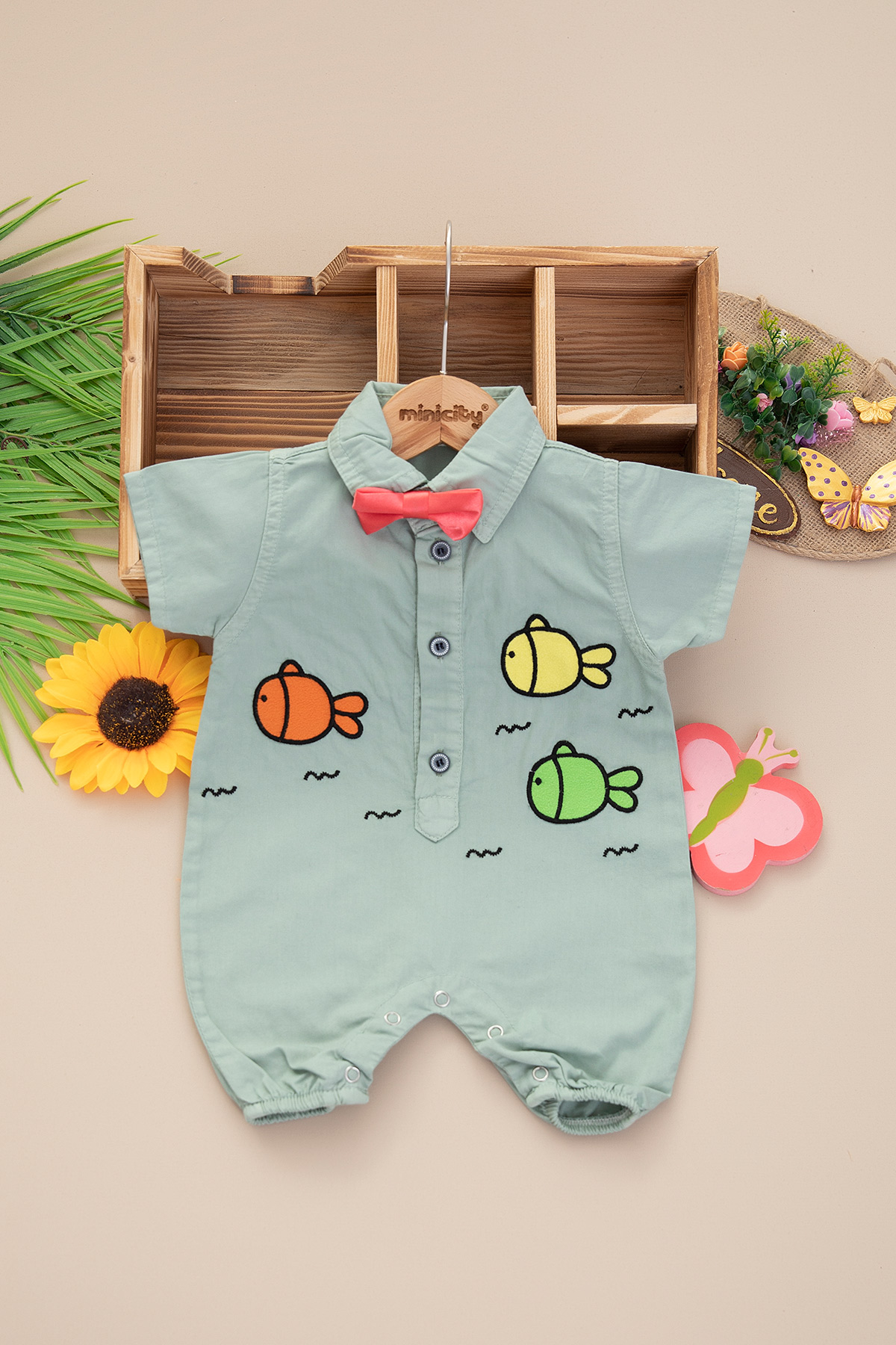 Erkek Bebek Balık Nakışlı Şort Tulum - 1125 (6-18 Ay)