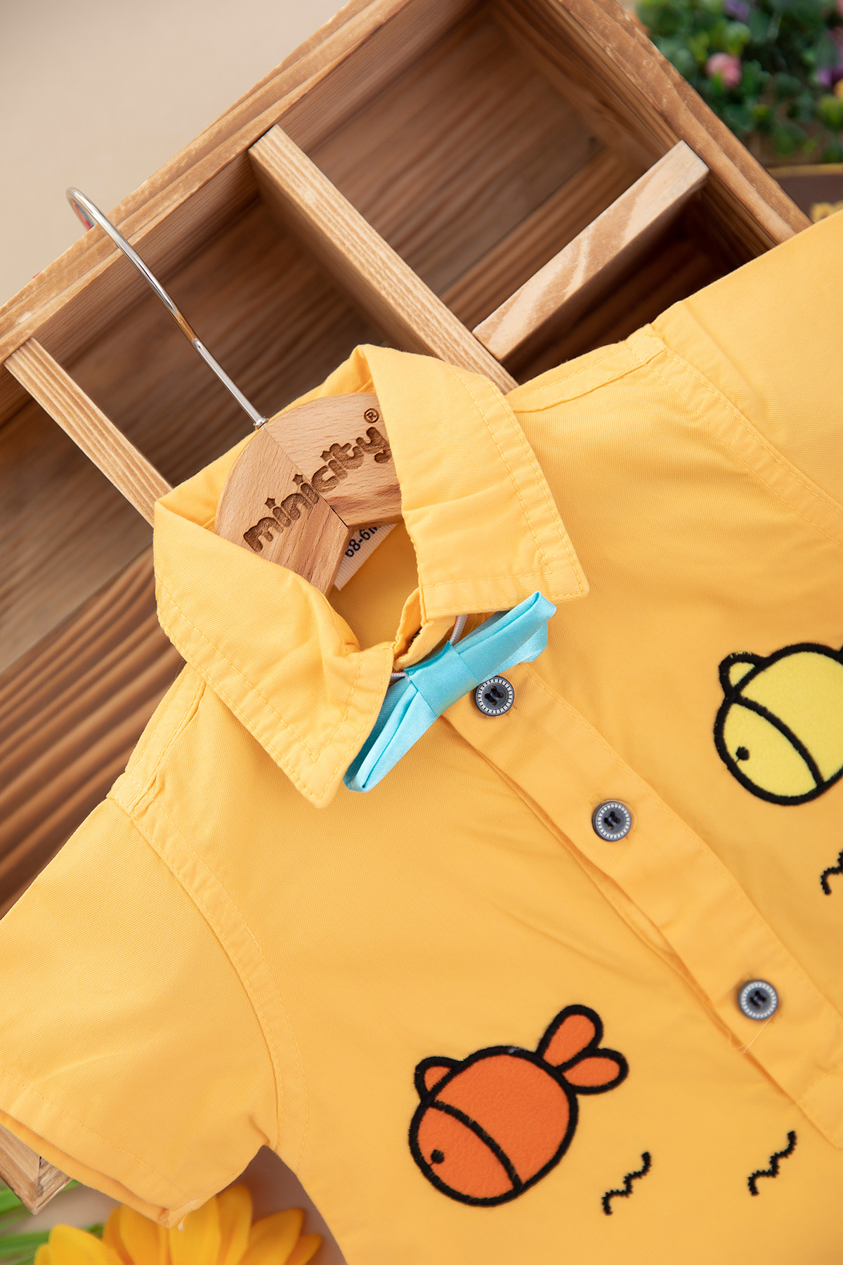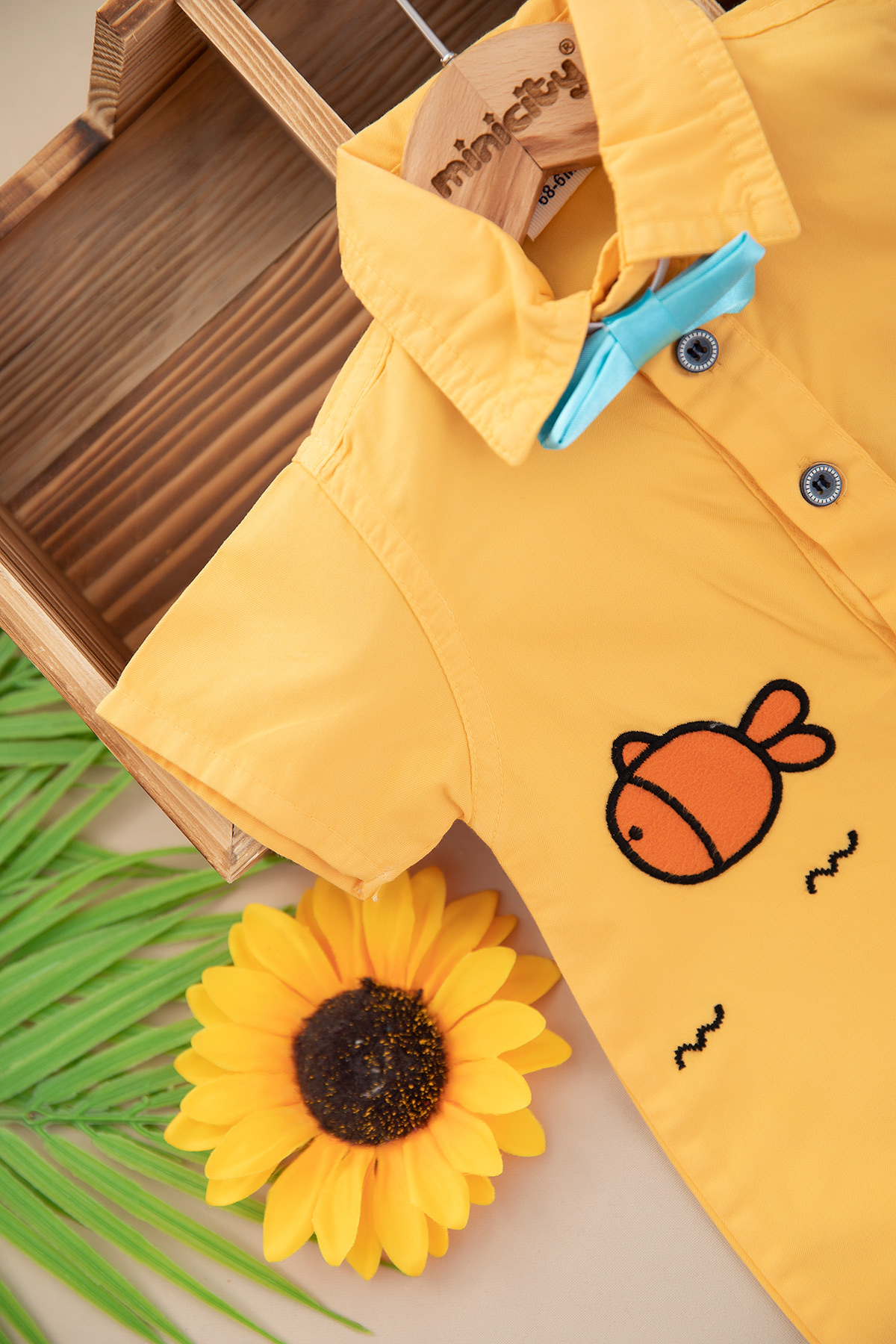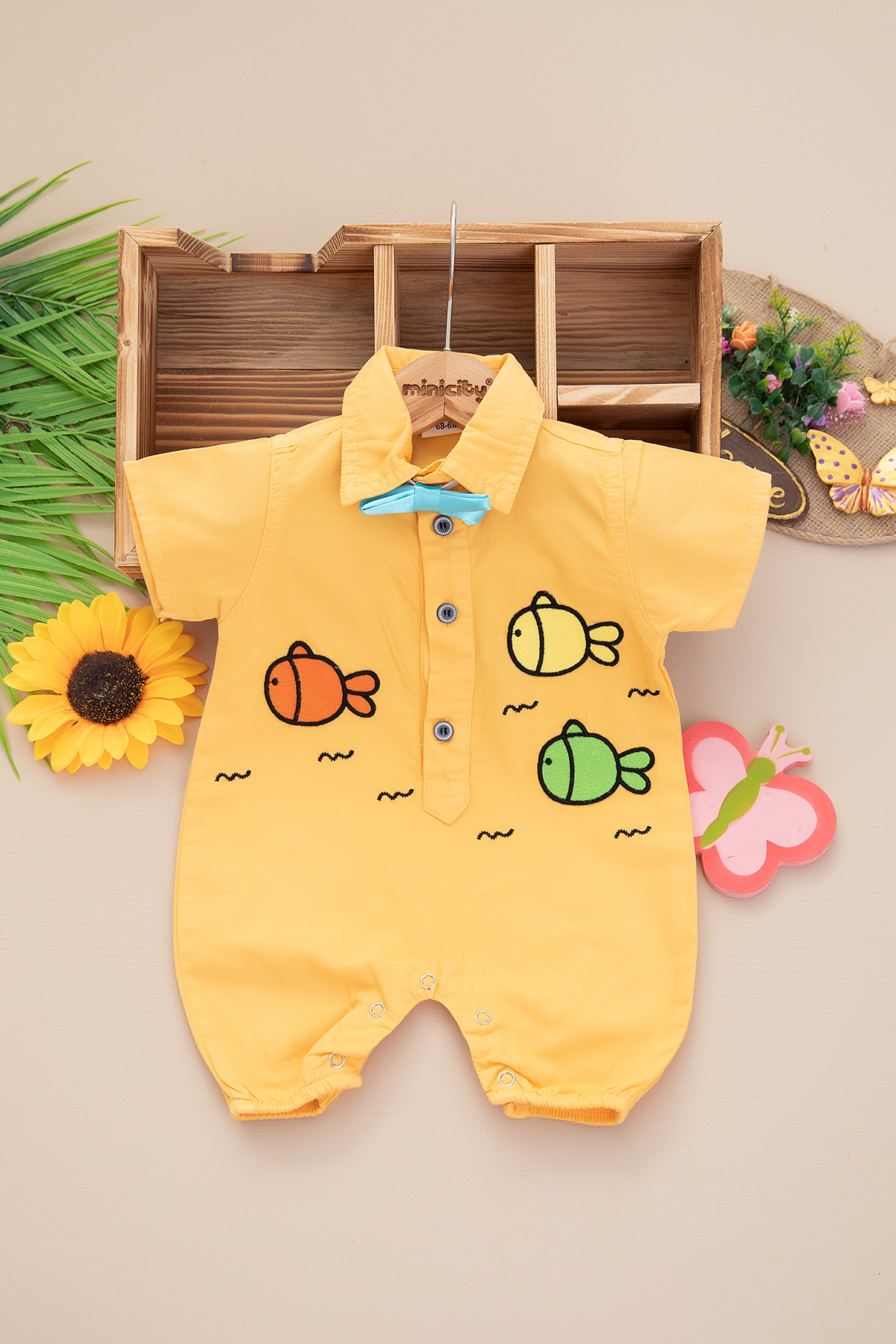 Erkek Bebek Balık Nakışlı Şort Tulum - 1125 (6-18 Ay)
