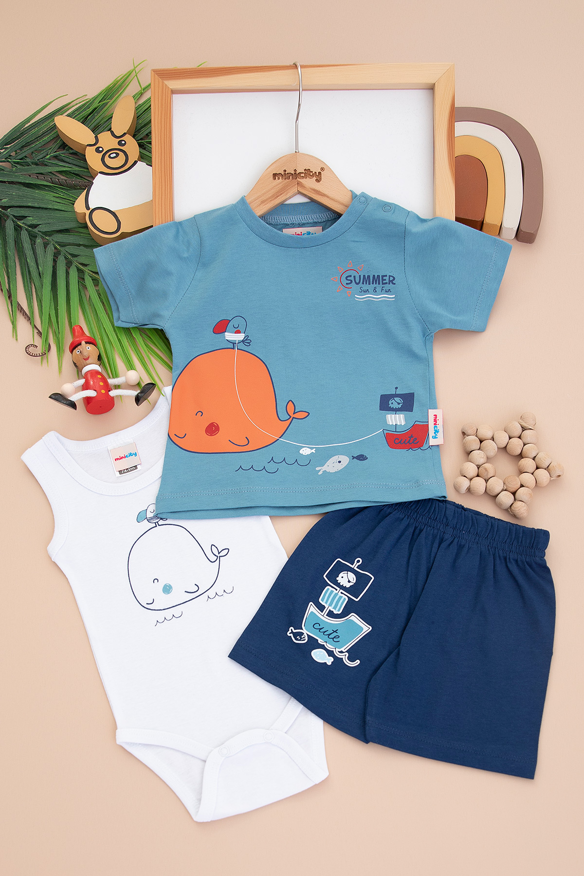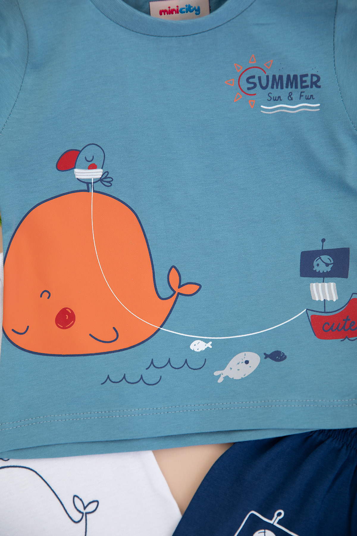 Erkek Bebek Balina Baskılı Badili Şortlu Takım - 24179 (9-24 Ay)