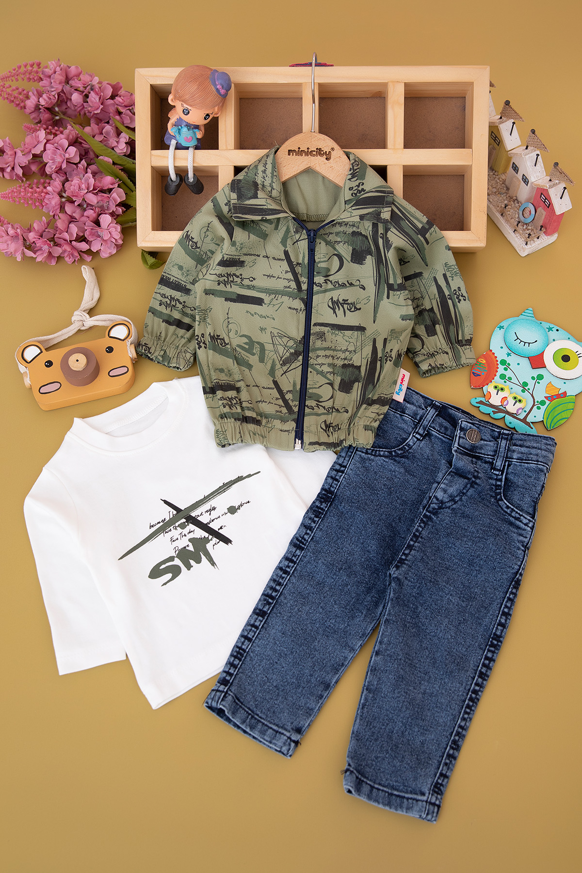 Erkek Bebek Baskılı Ceketli Üçlü Takım - 0999 (6-24 Ay)