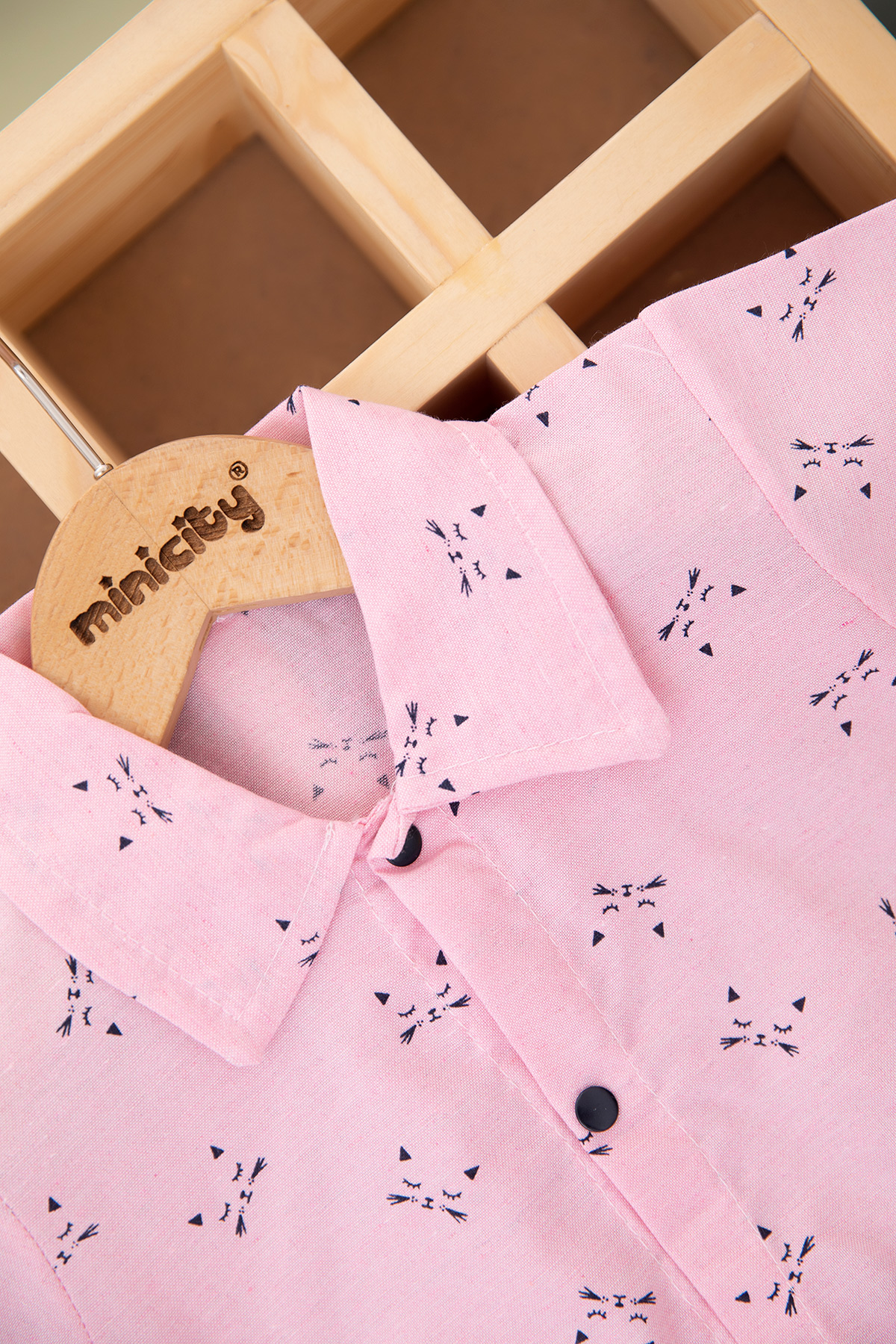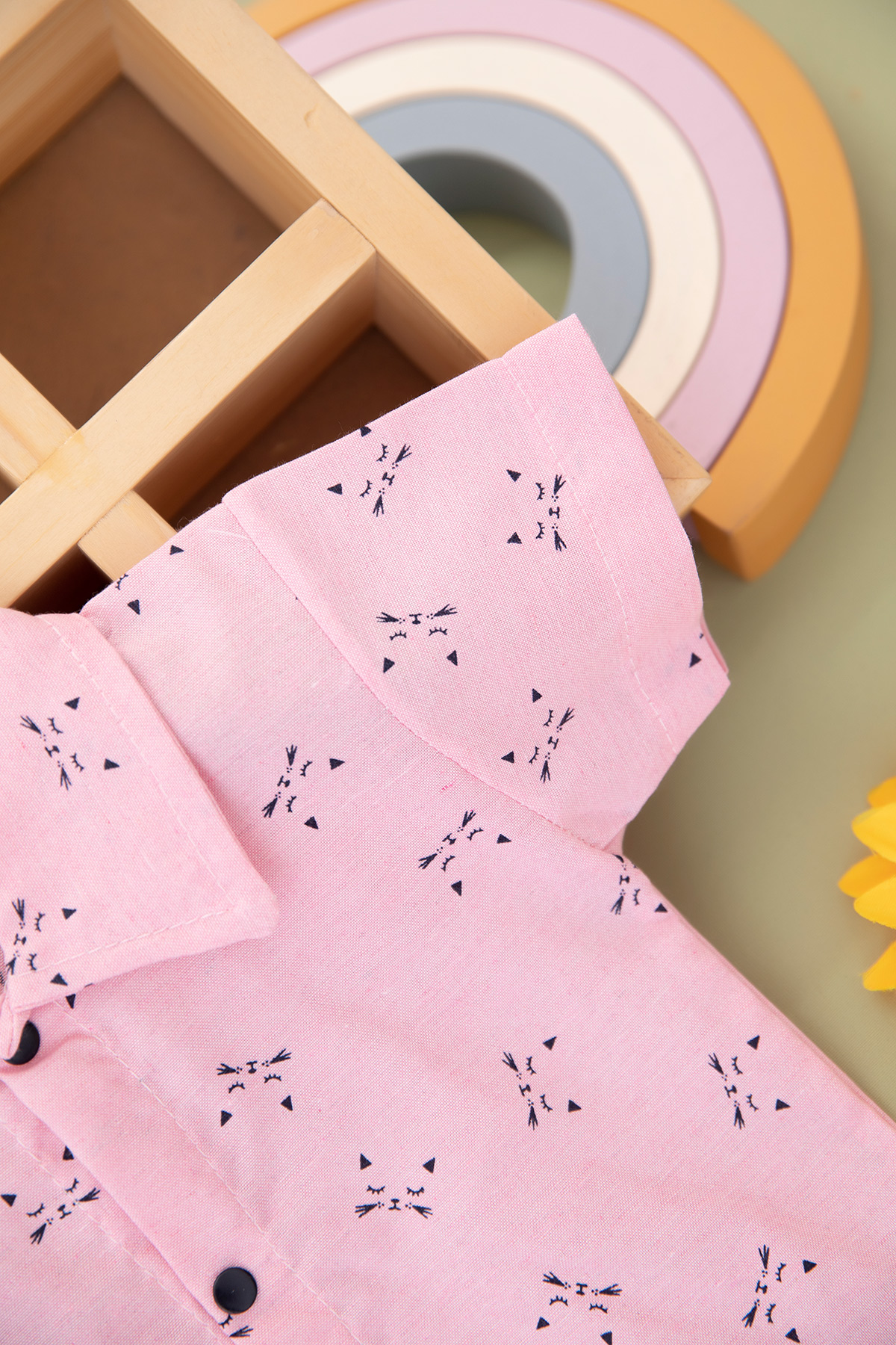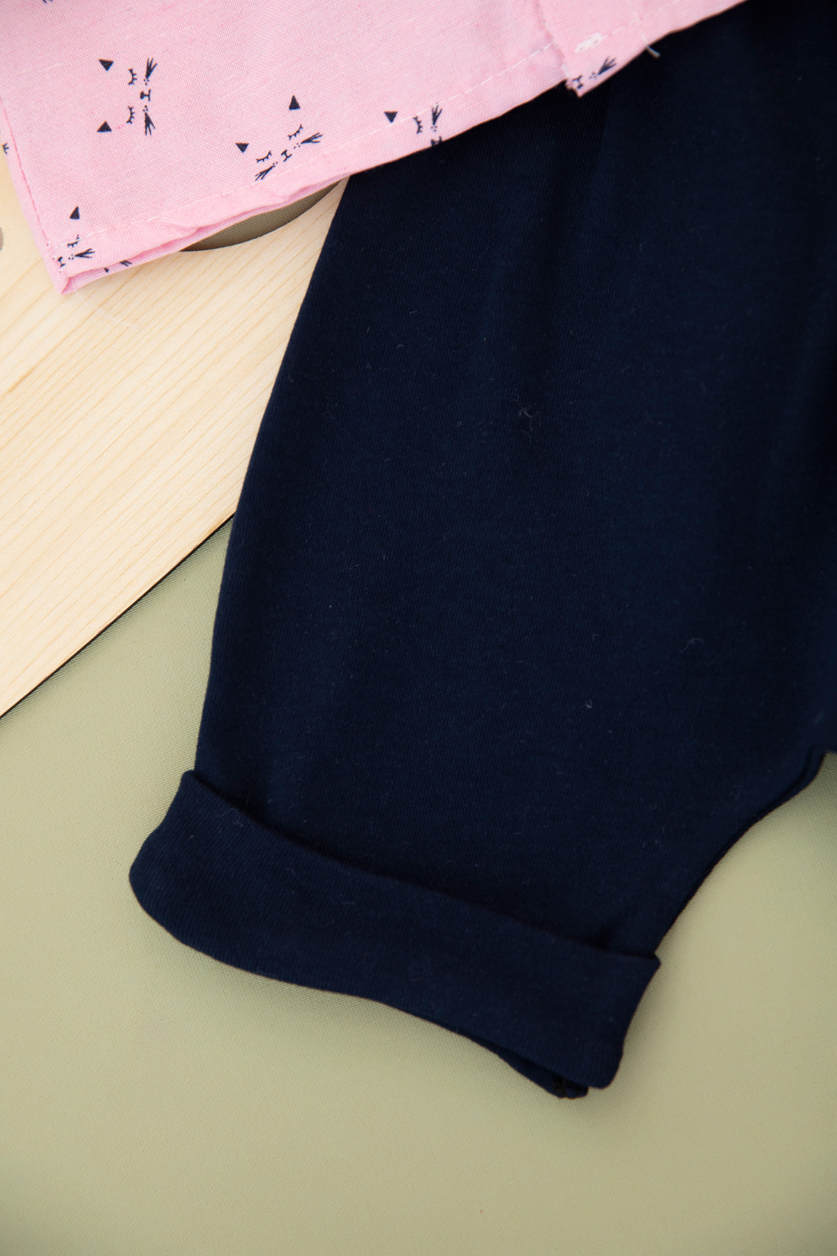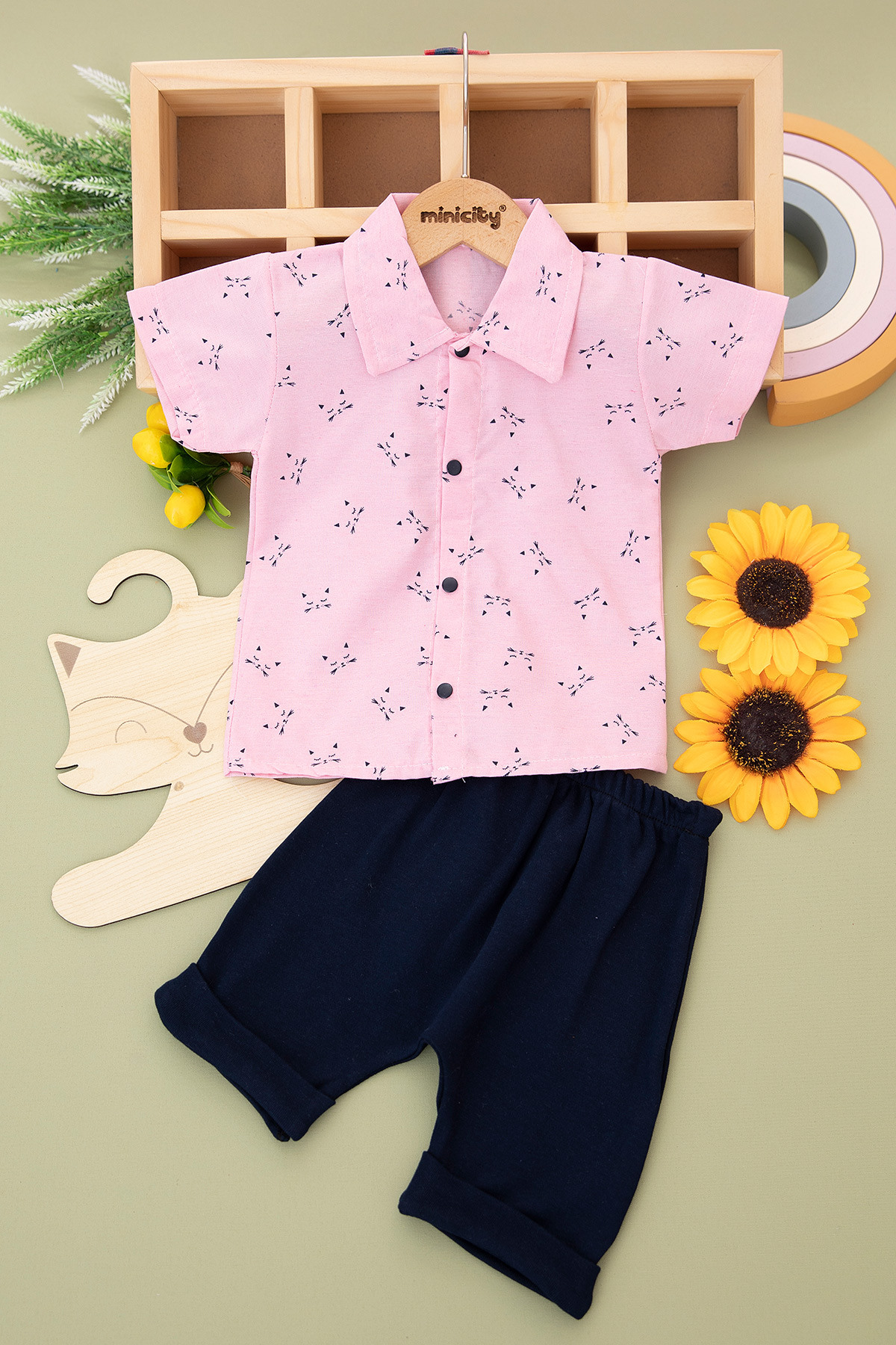 Erkek Bebek Baskılı Keten Gömlek Şortlu Takım - 9940