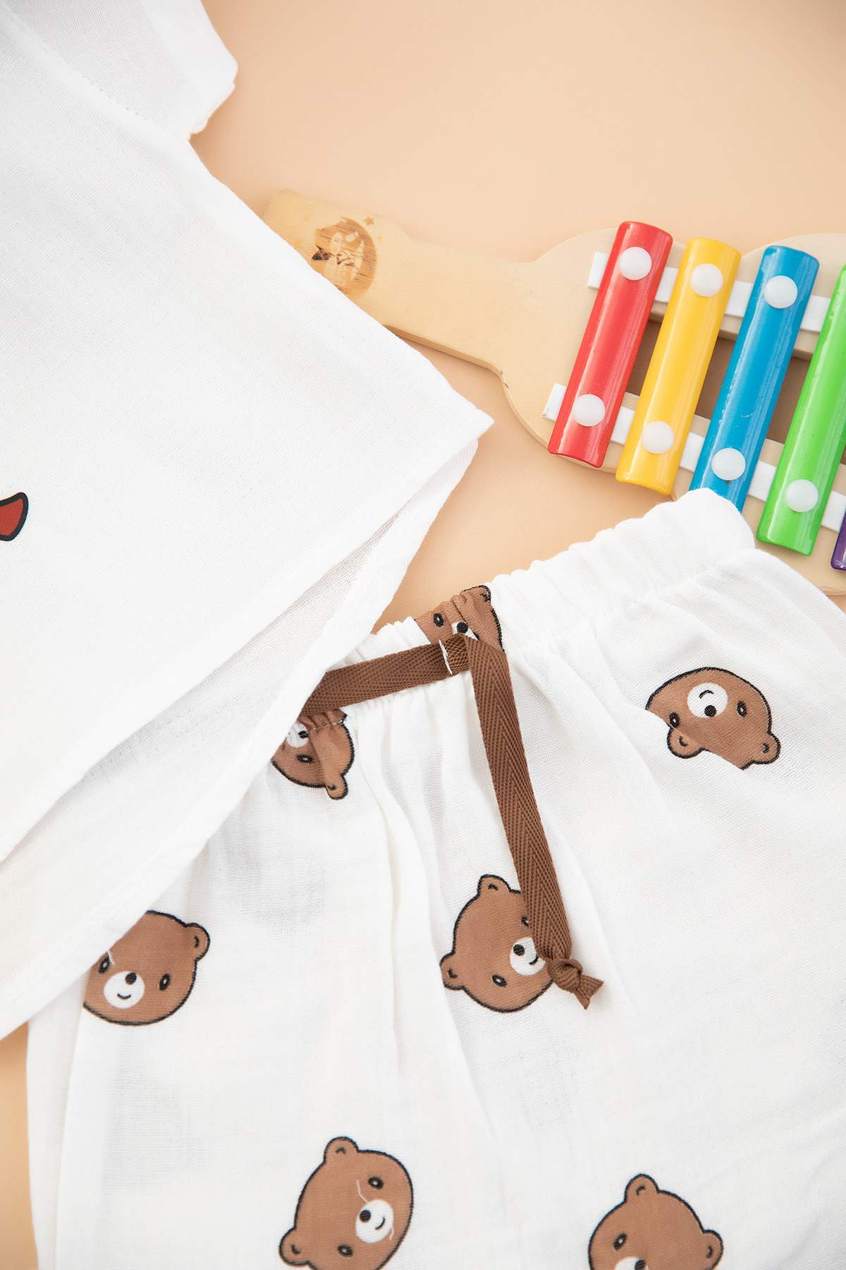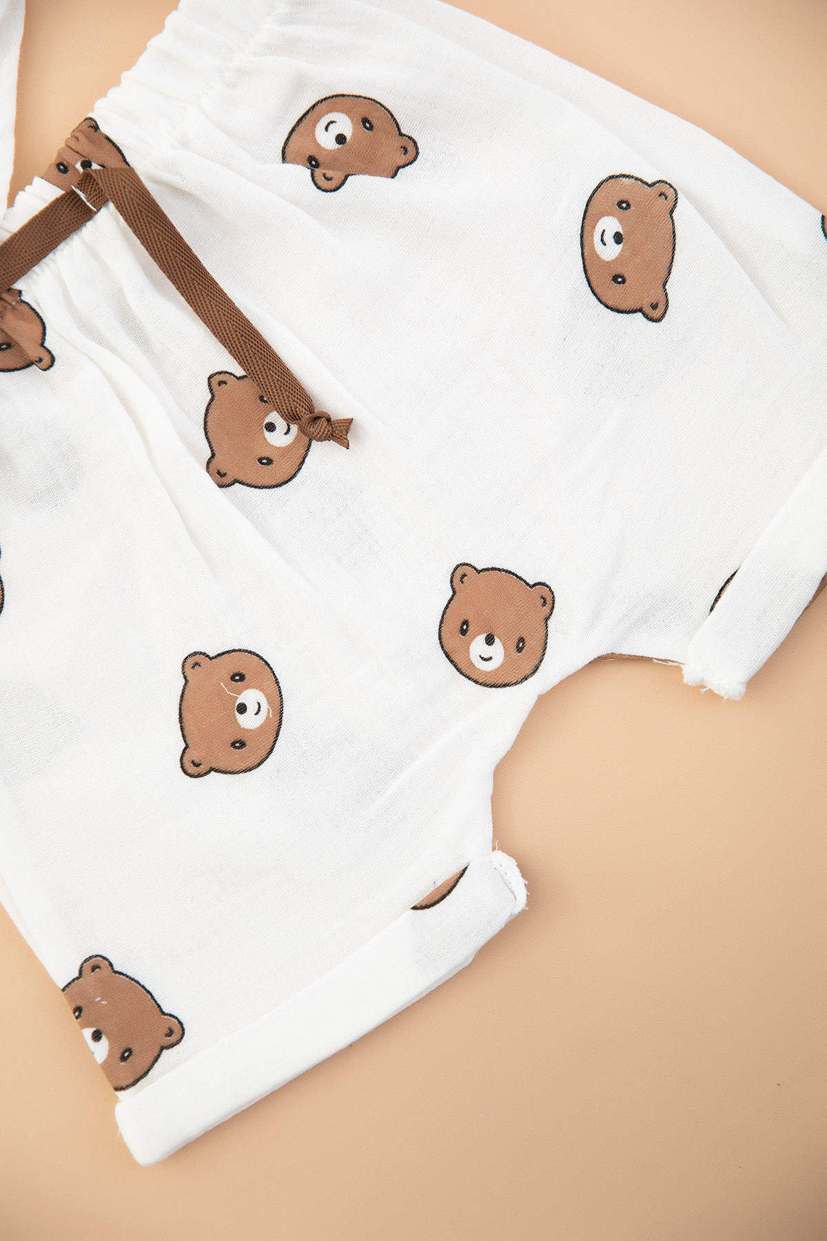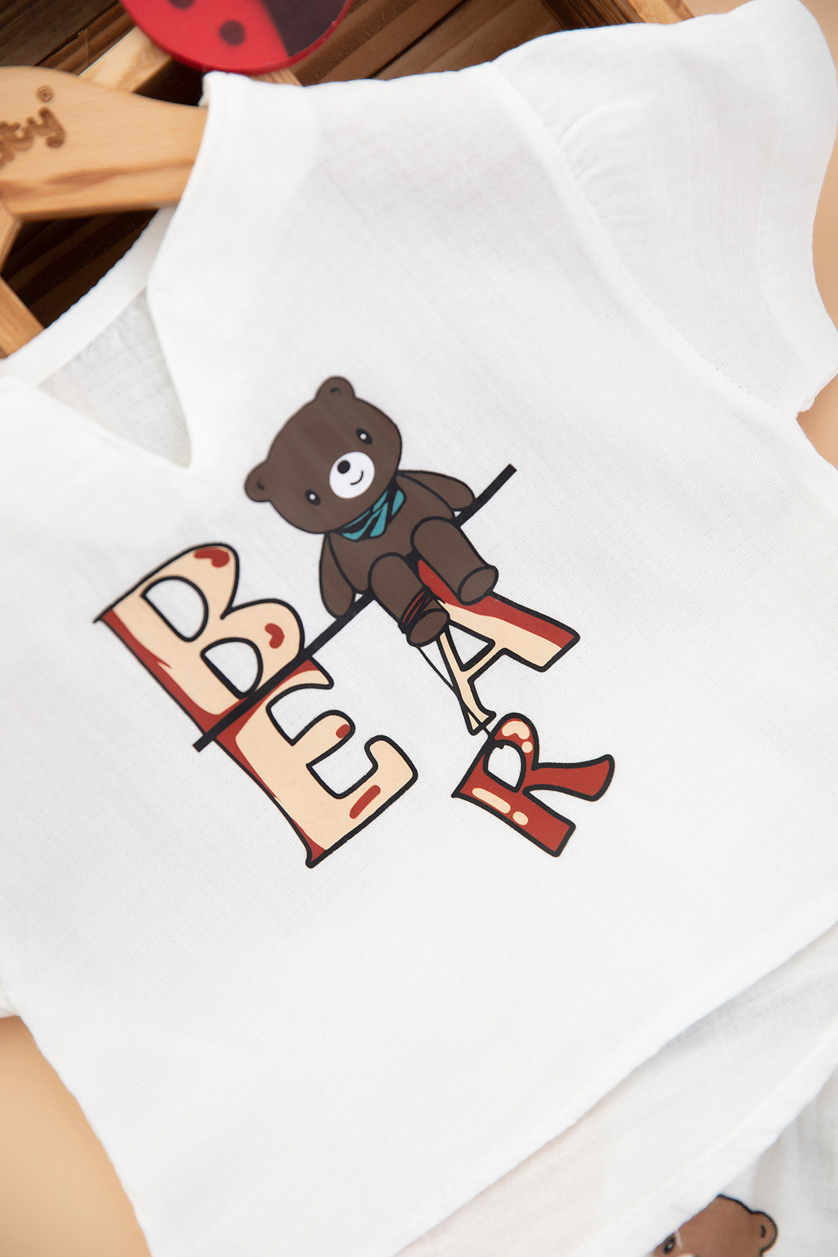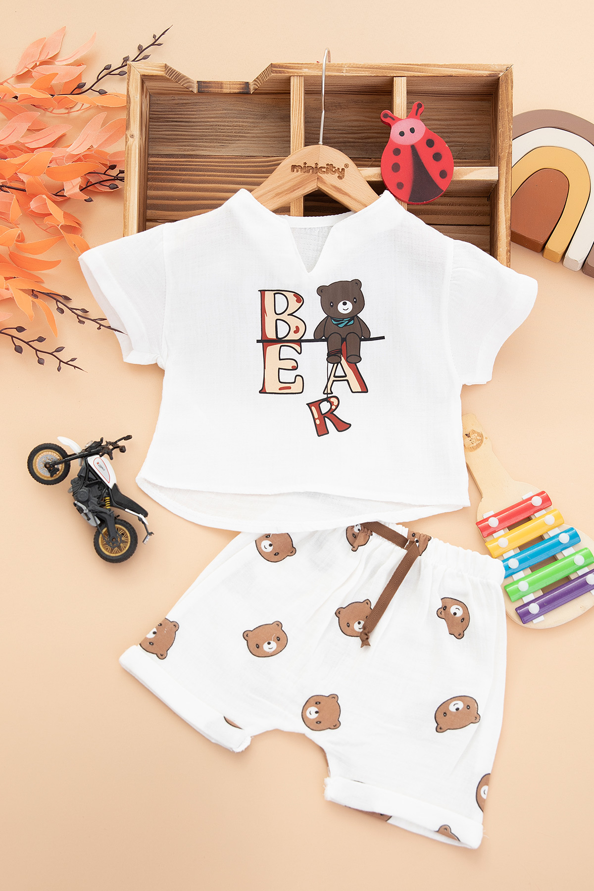 Erkek Bebek Bear Baskılı Şortlu Takım - 2513 (9-18 Ay)