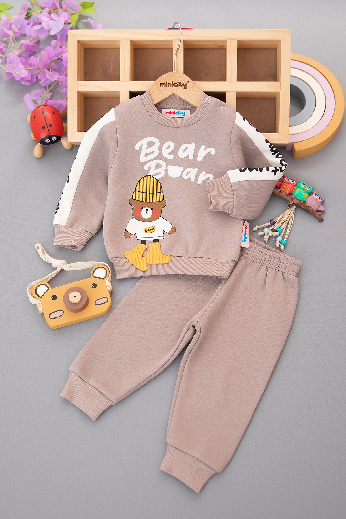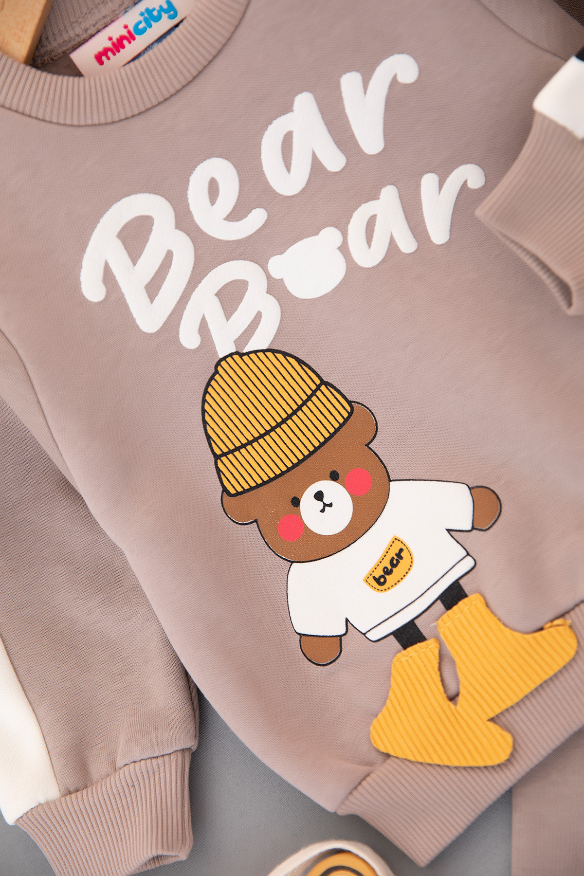 Erkek Bebek Bear Baskılı Üçip Takım - 24760 (9-24 Ay)