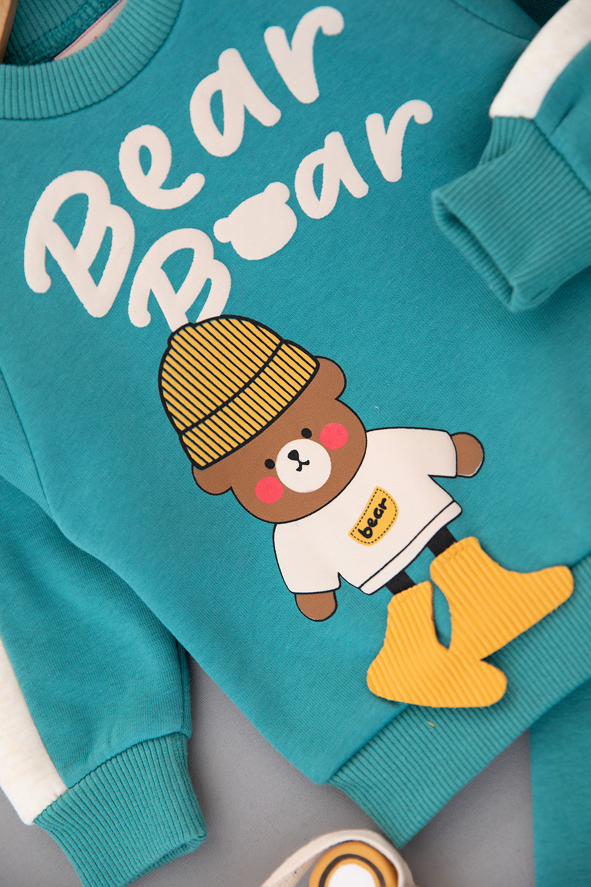 Erkek Bebek Bear Baskılı Üçip Takım - 24760 (9-24 Ay)