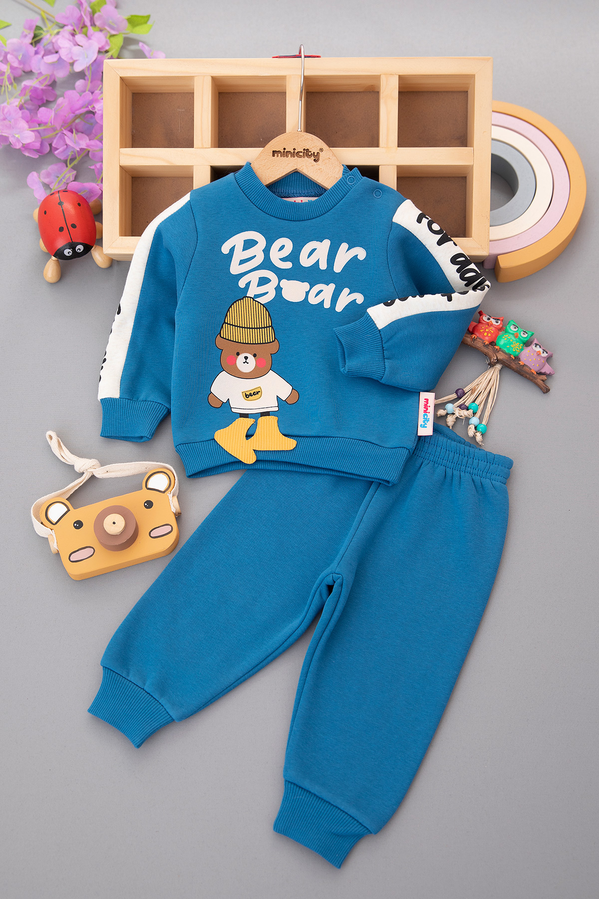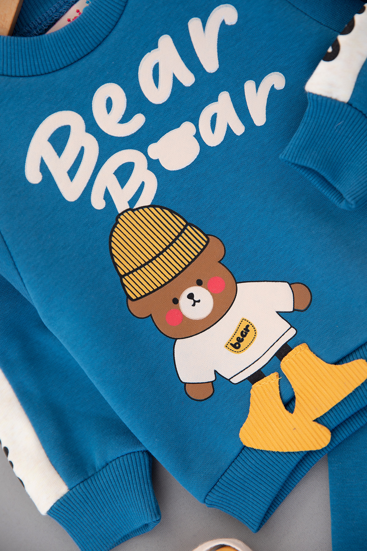 Erkek Bebek Bear Baskılı Üçip Takım - 24760 (9-24 Ay)