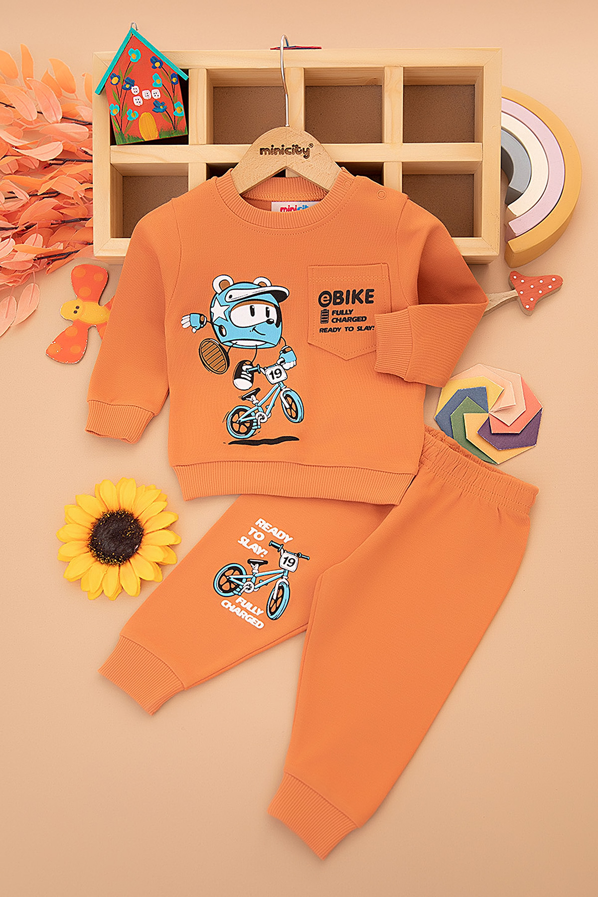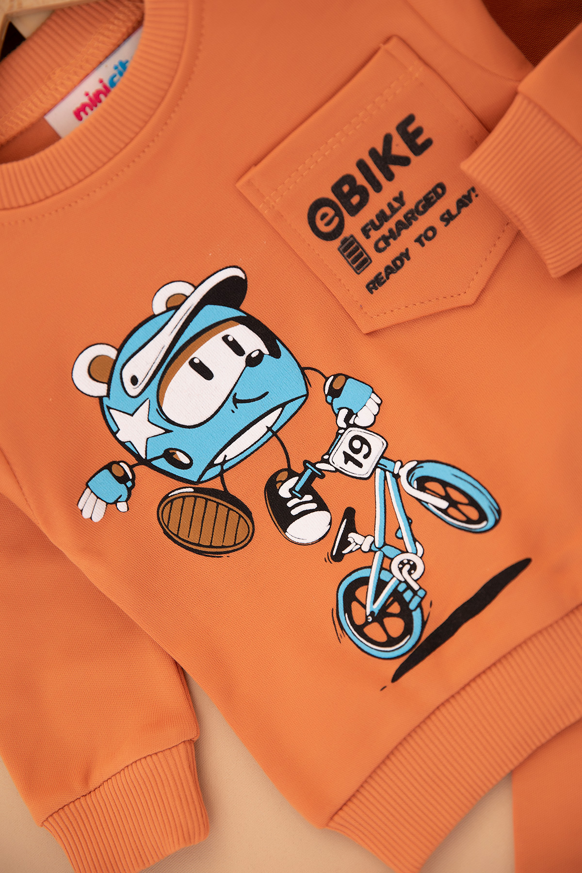 Erkek Bebek Bisiklet Baskılı Takım - 25797 (9-24 Ay)