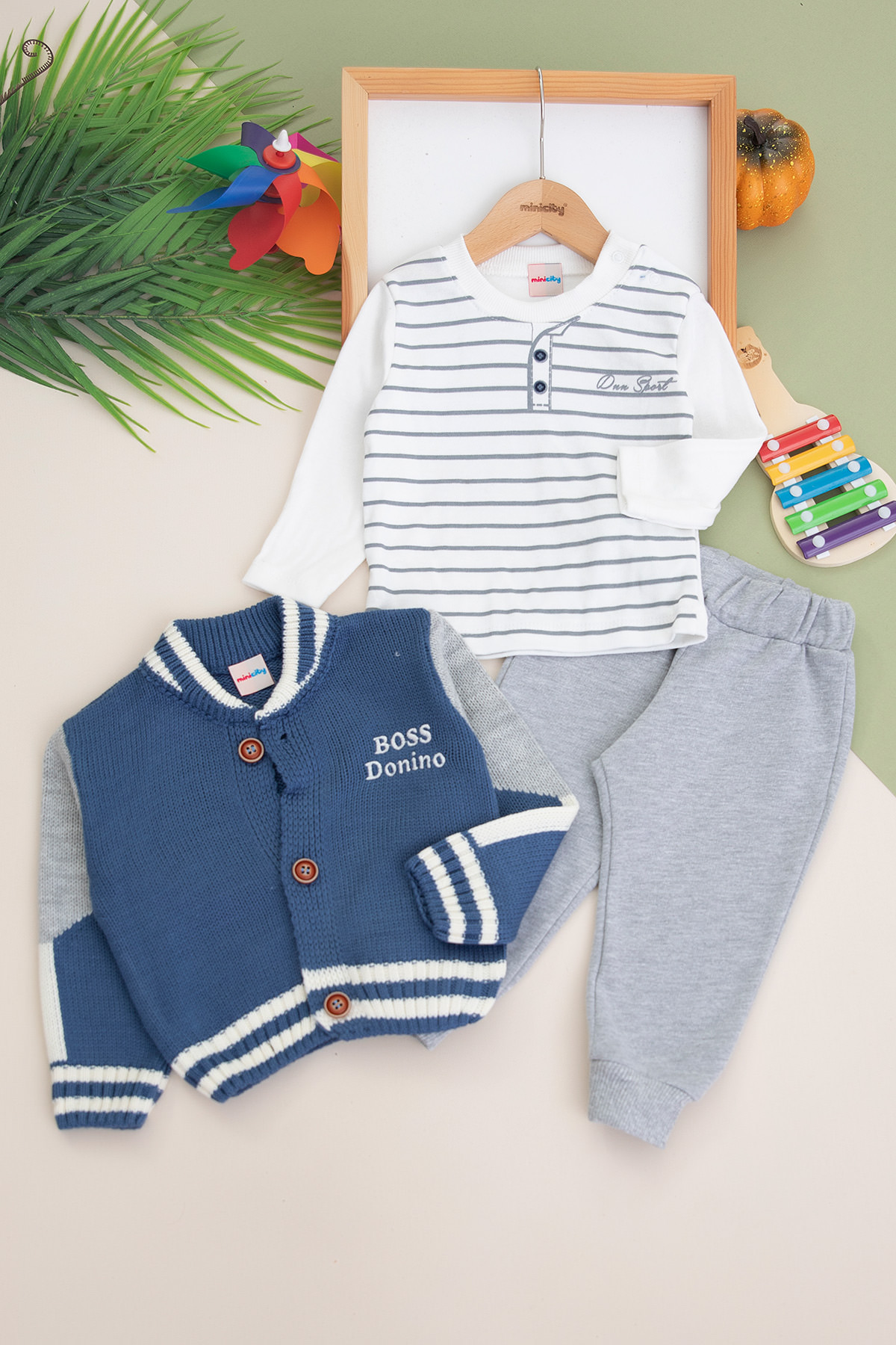 Erkek Bebek Boss Donino Triko Üçlü Takım - 13783 (6-24 Ay)