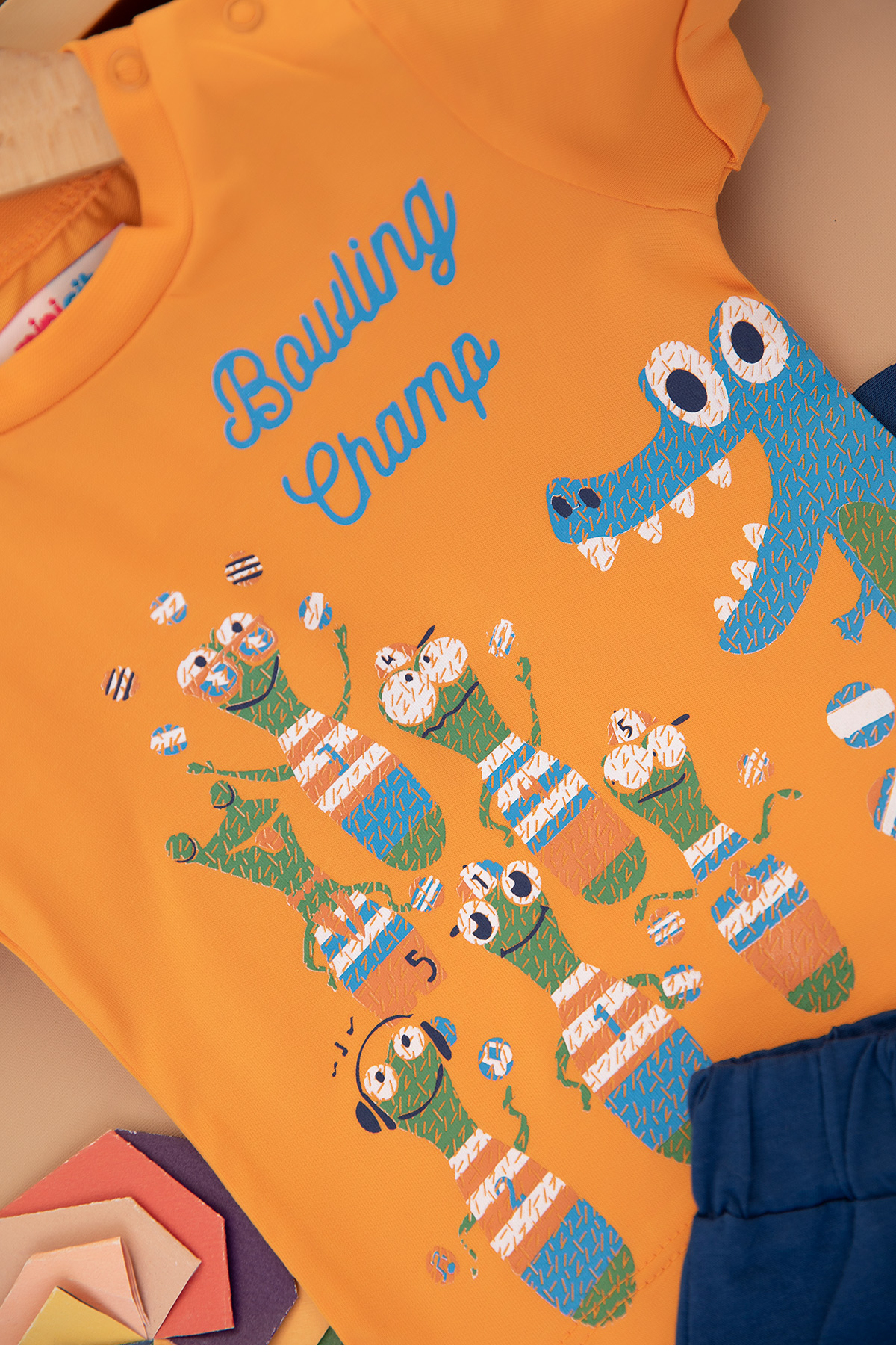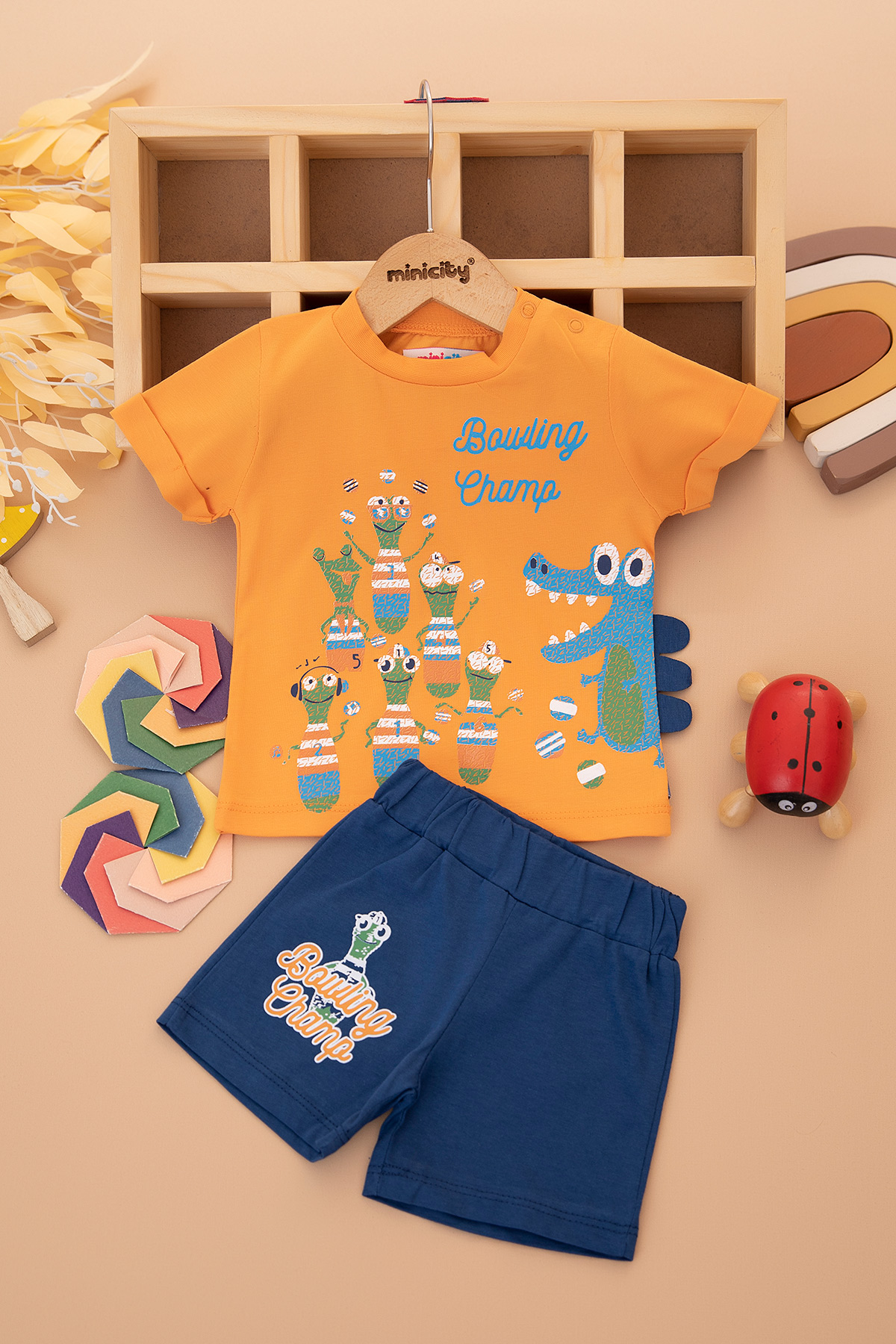 Erkek Bebek Bowling Baskılı Şortlu Takım - 25301 (9-24 Ay)