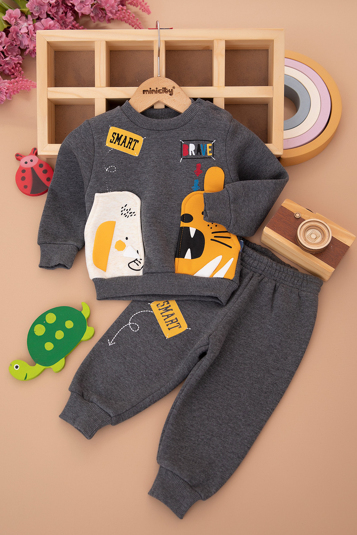 Erkek Bebek Brave Baskılı Üç İp Takım - 24747 (9-24 Ay)