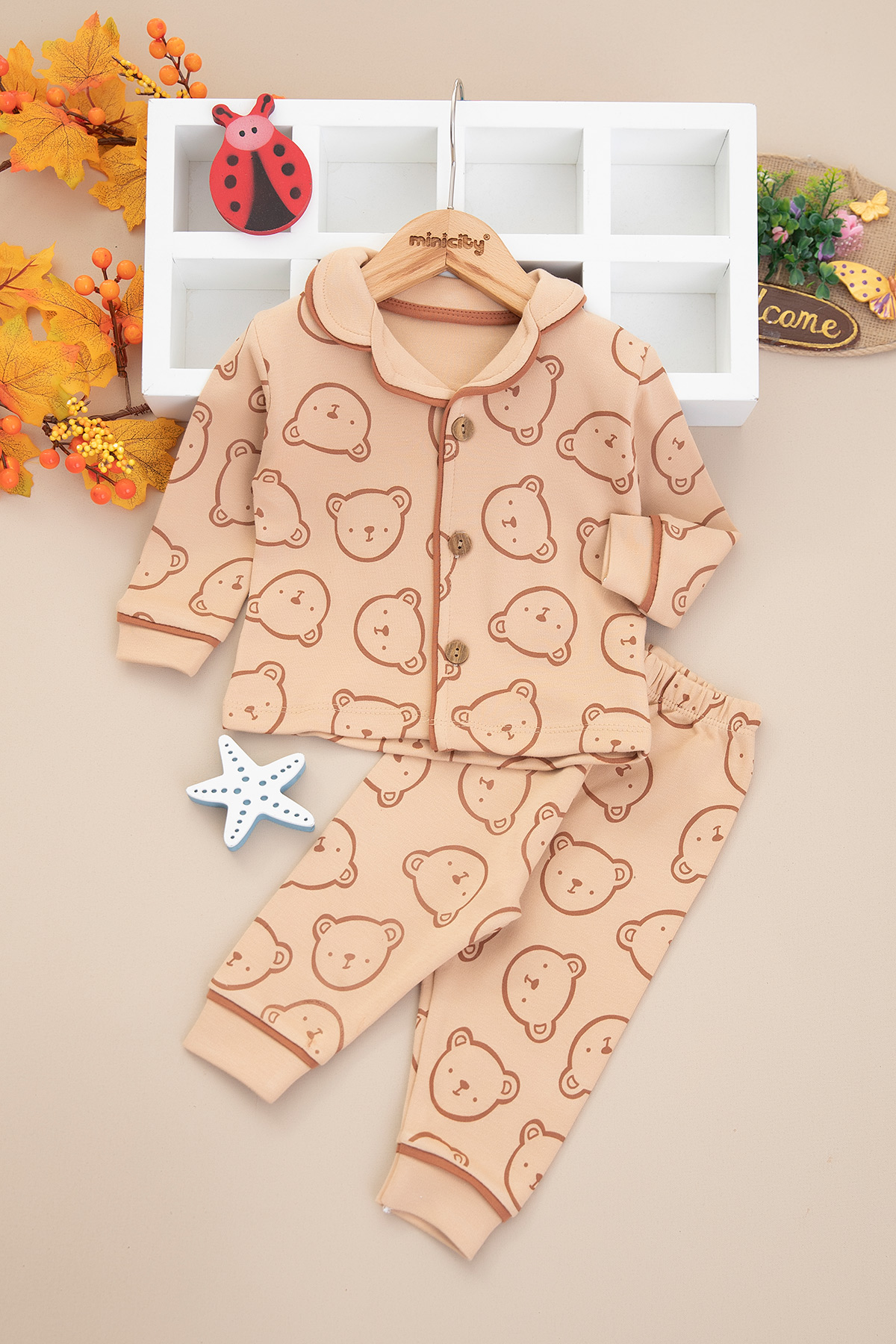 Erkek Bebek Büyük Ayı Baskılı Pijama Takım - 1109 (6-24 Ay)