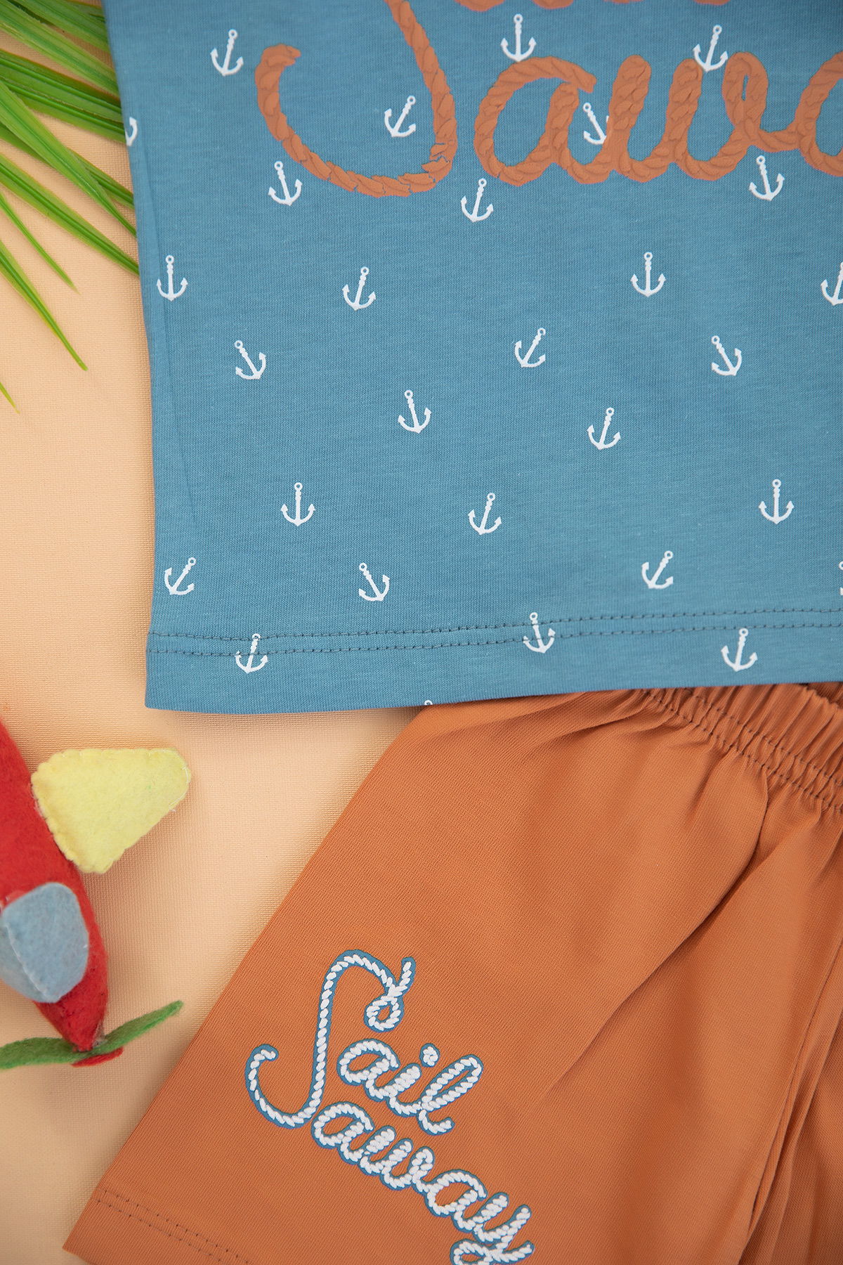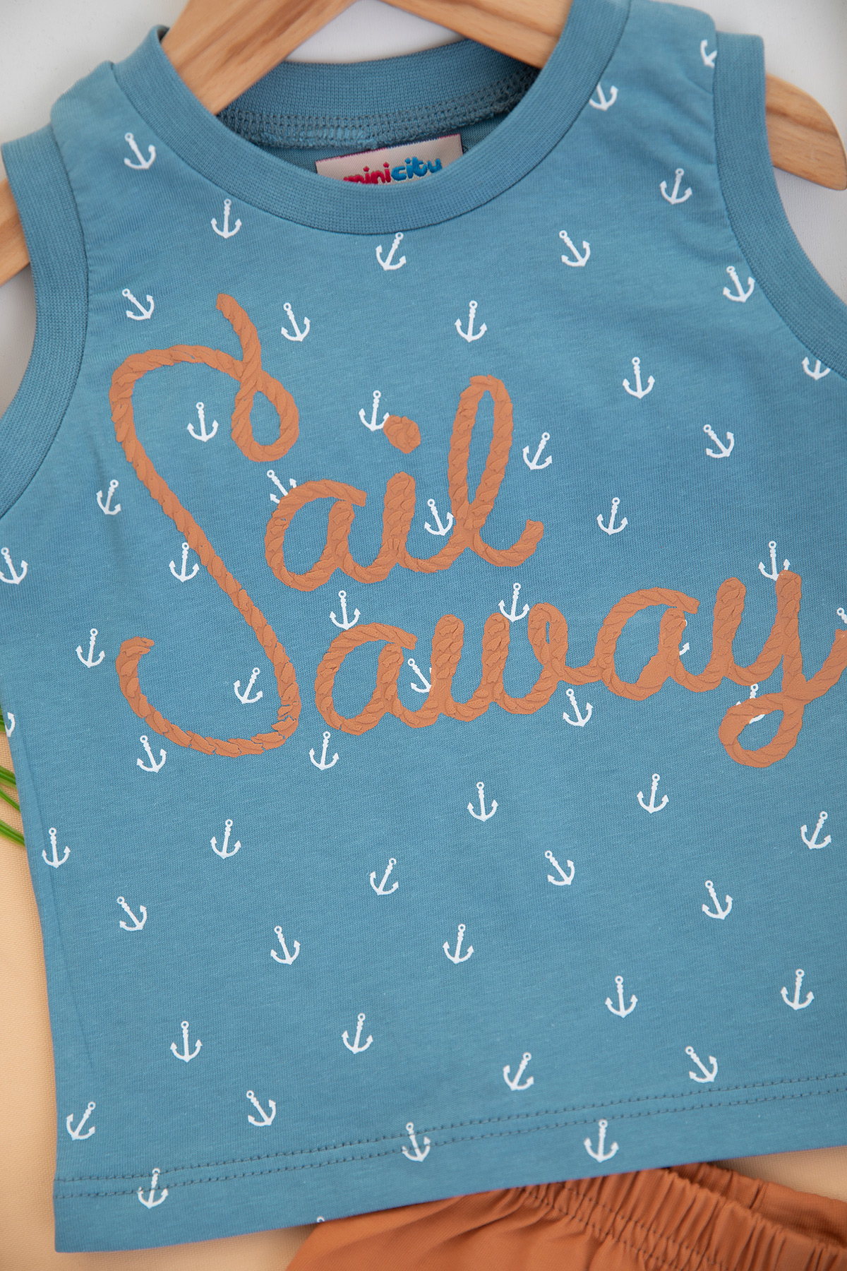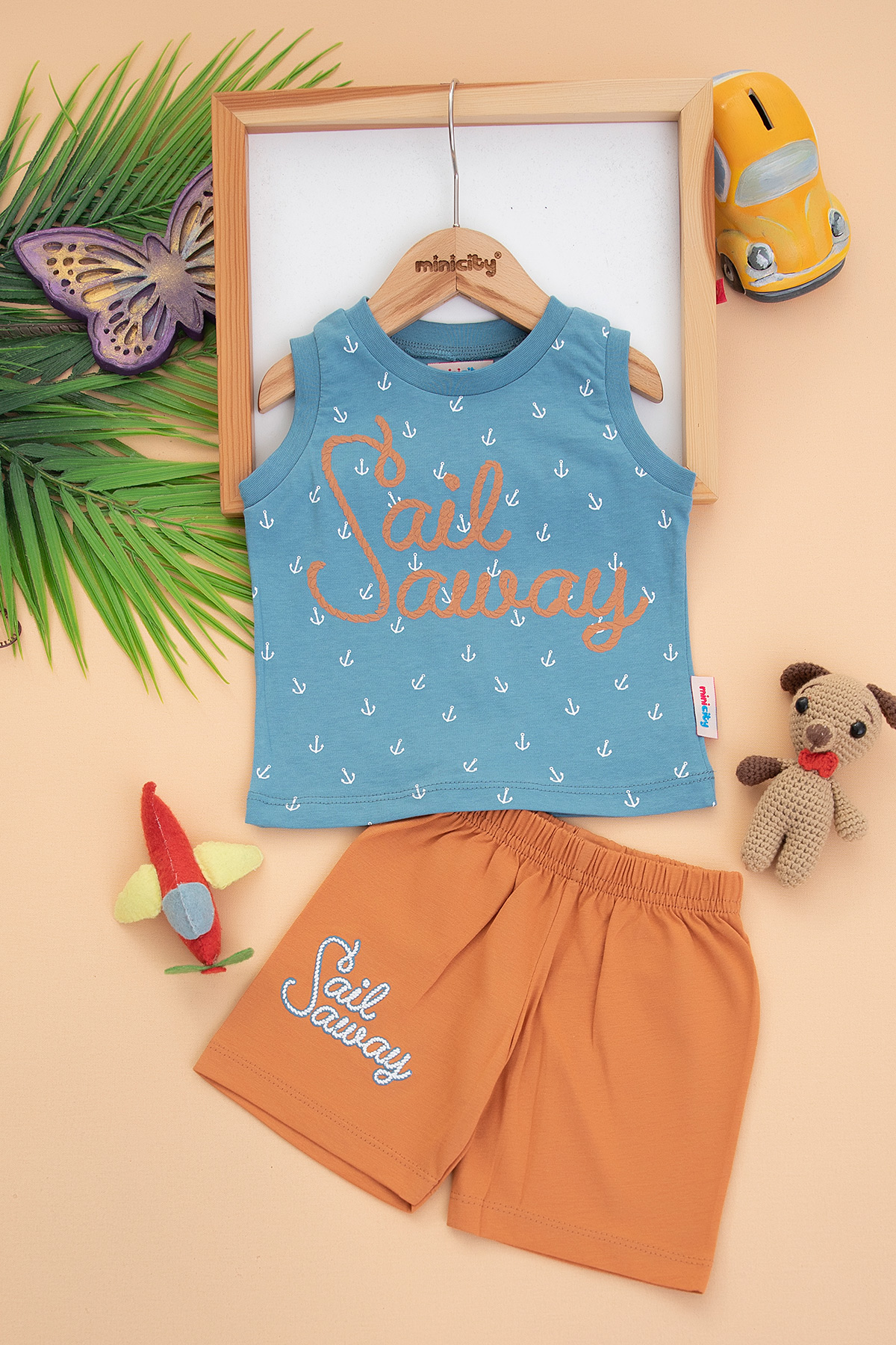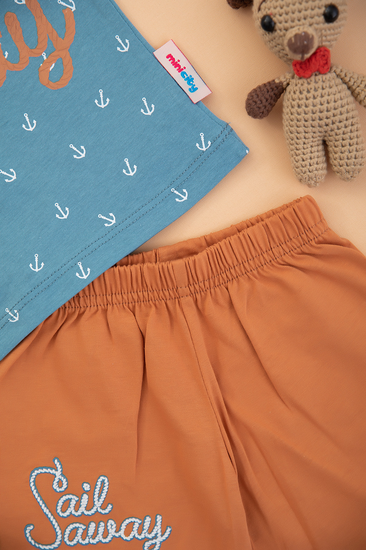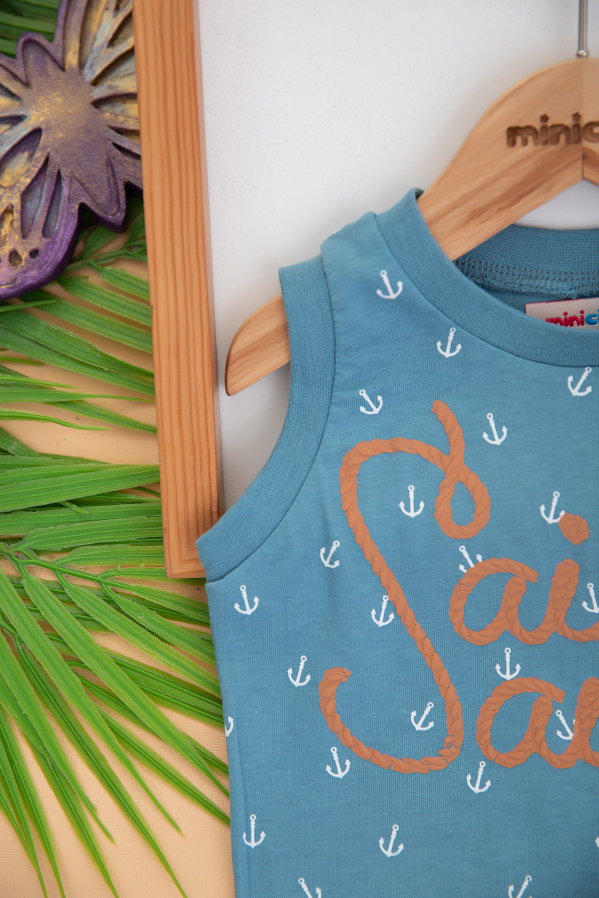 Erkek Bebek Çapa Baskılı Askılı Takım - 24133 (9-24 Ay)
