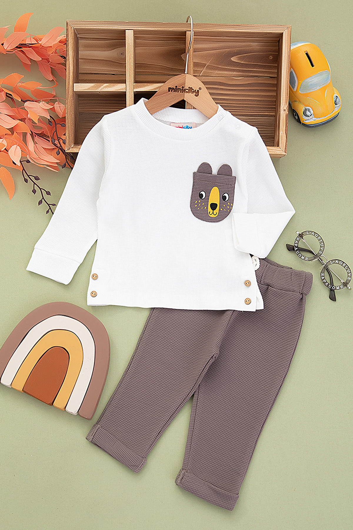 Erkek Bebek Cebi Ayı Baskılı Takım - 24012 (9-24 Ay)