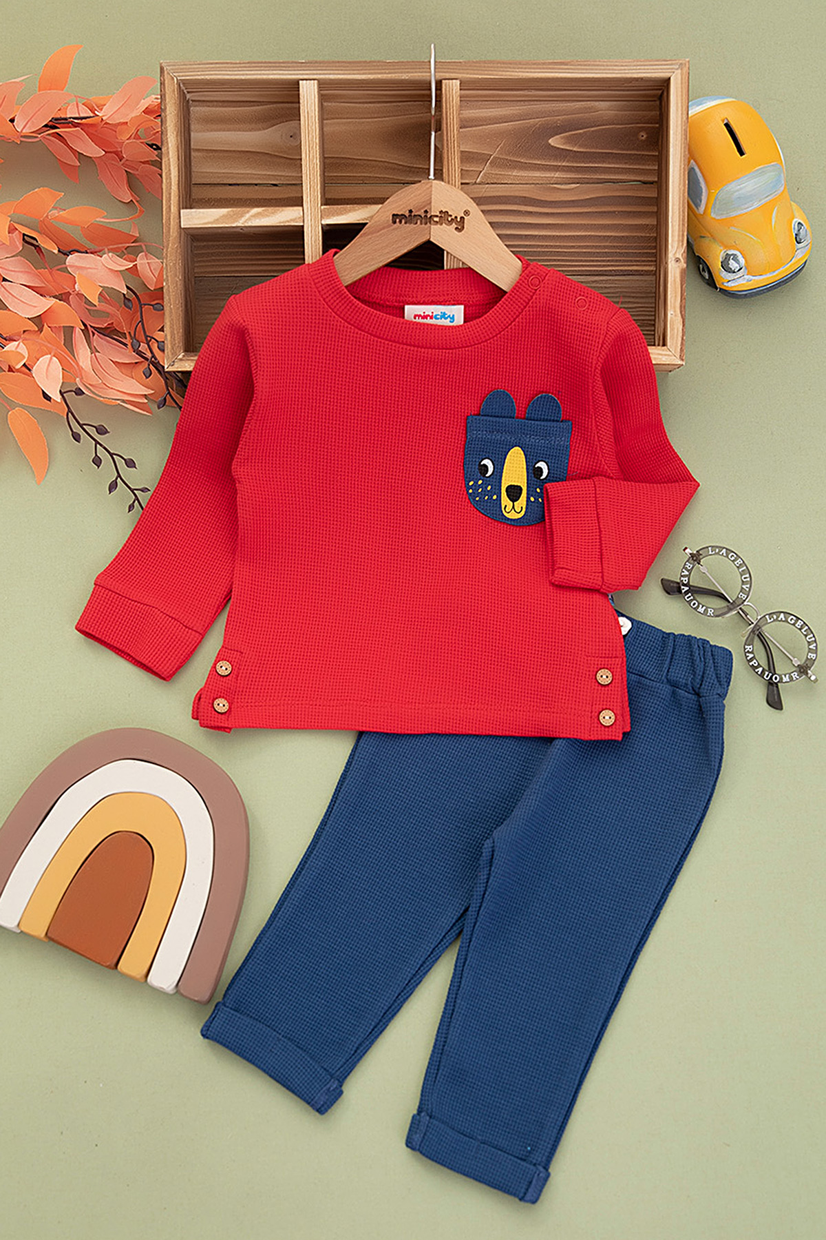 Erkek Bebek Cebi Ayı Baskılı Takım - 24012 (9-24 Ay)