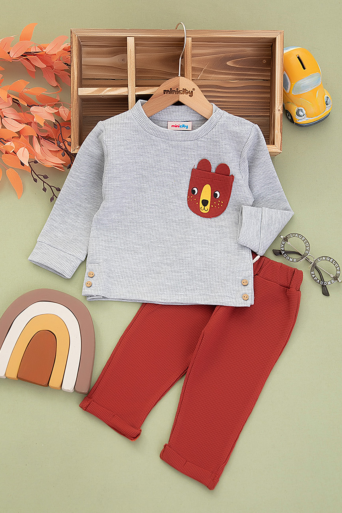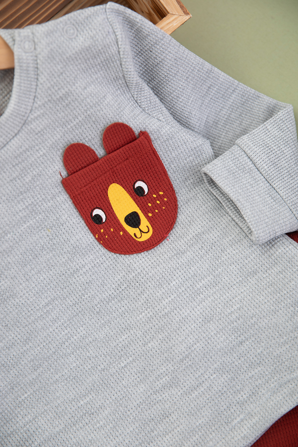 Erkek Bebek Cebi Ayı Baskılı Takım - 24012 (9-24 Ay)