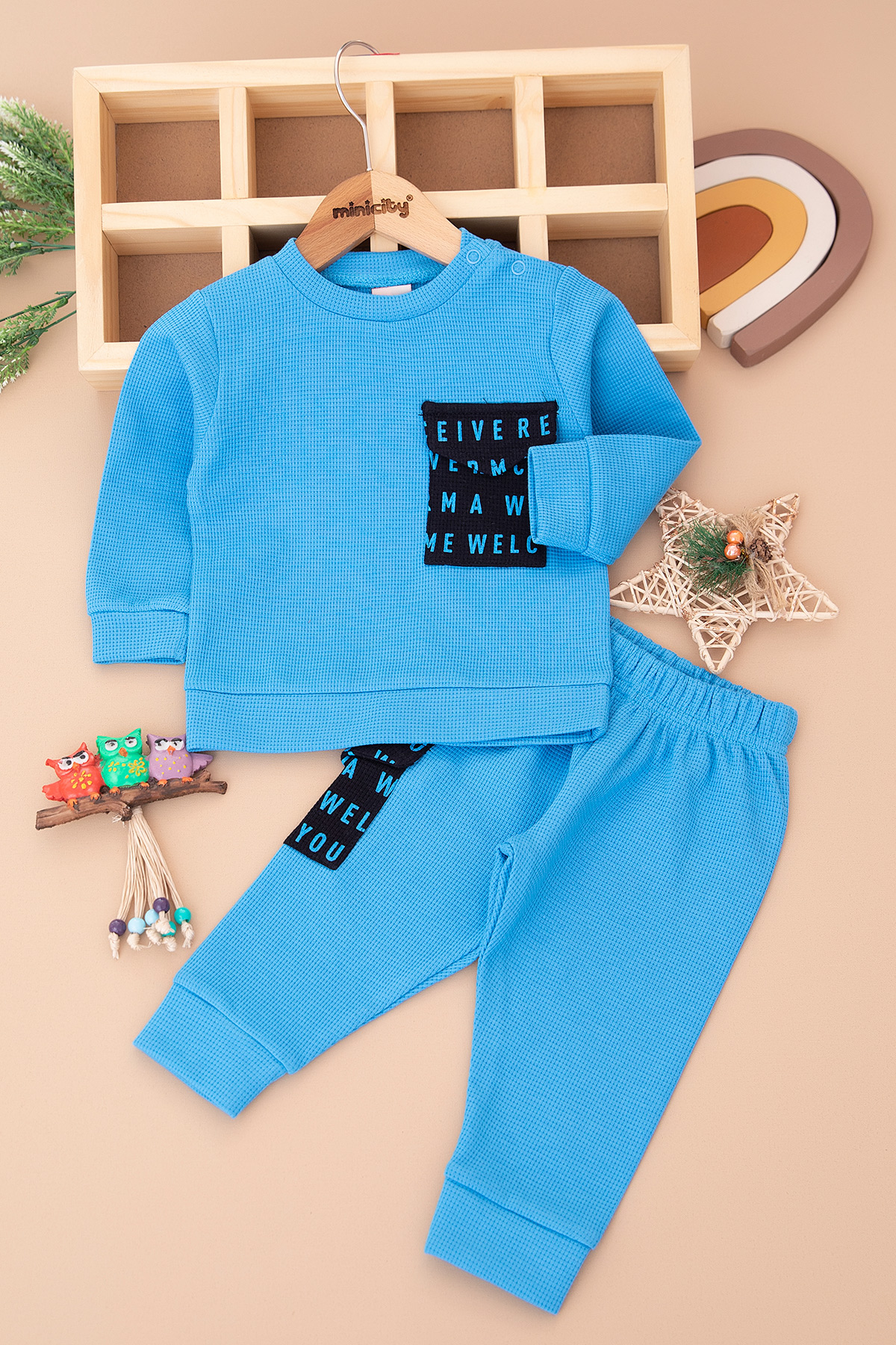 Erkek Bebek Cebi Baskılı Petek Kumaş Takım - 23512 (9-24 Ay)