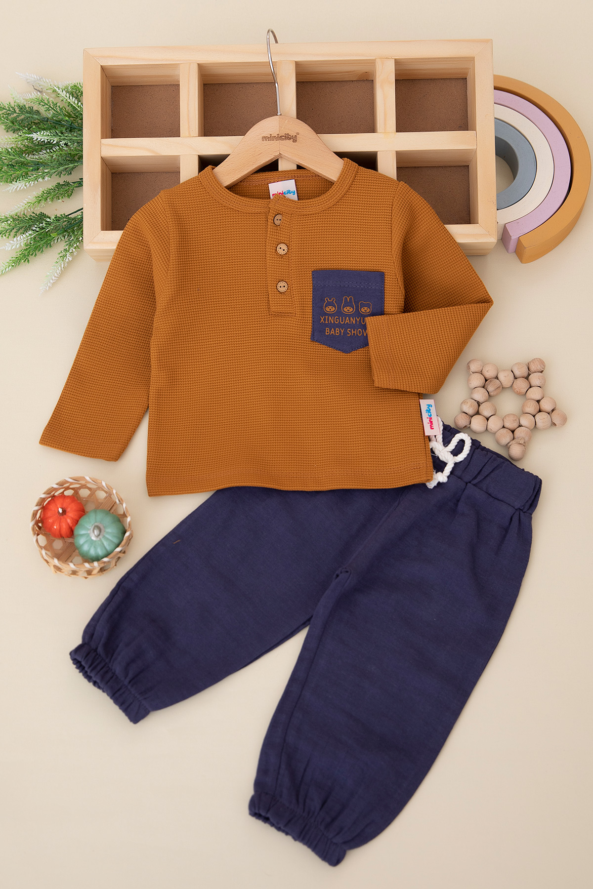 Erkek Bebek Cebi Baskılı Petek Kumaş Takım - 24058 (9-24 Ay)