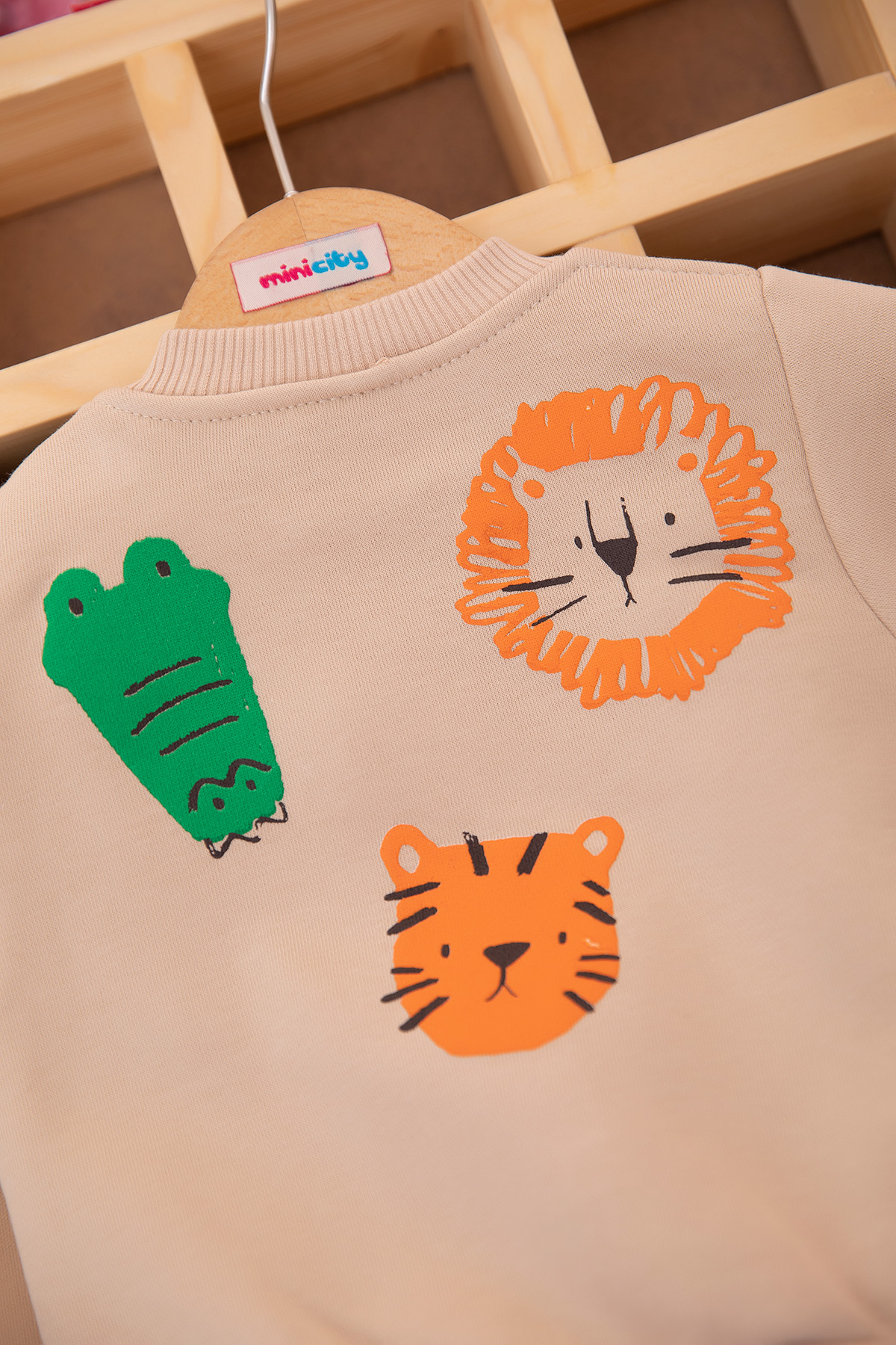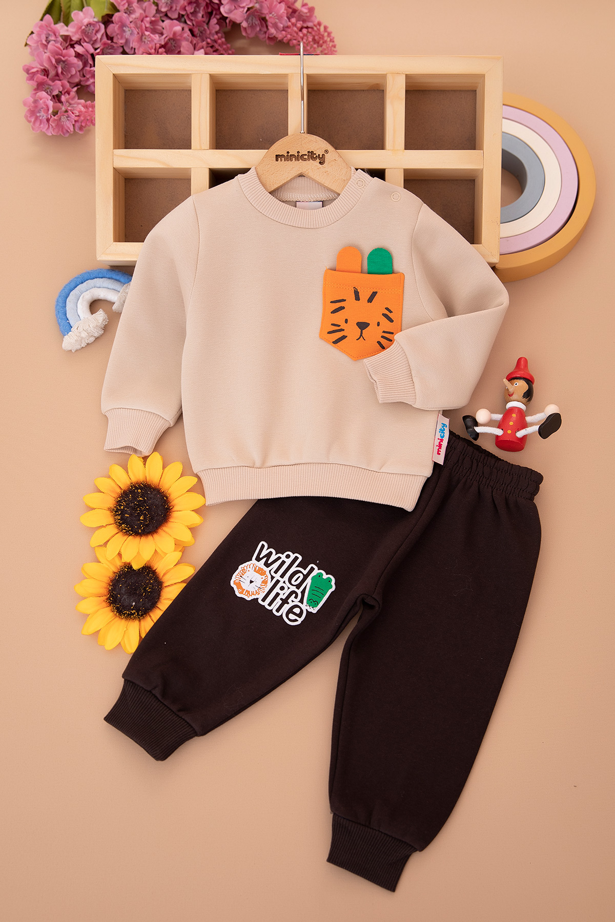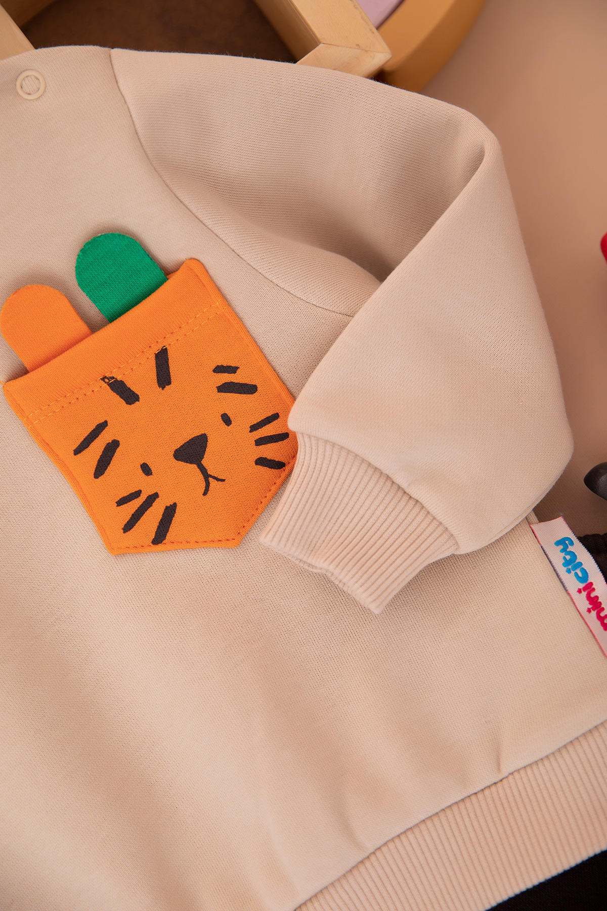Erkek Bebek Cebi Kaplan Baskılı Üçip Takım - 24702 (9-24 Ay)