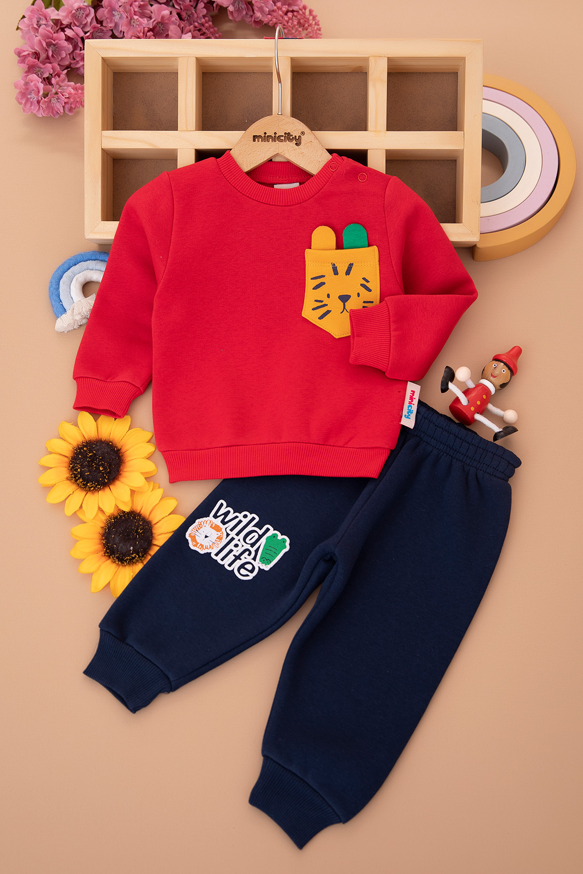 Erkek Bebek Cebi Kaplan Baskılı Üçip Takım - 24702 (9-24 Ay)
