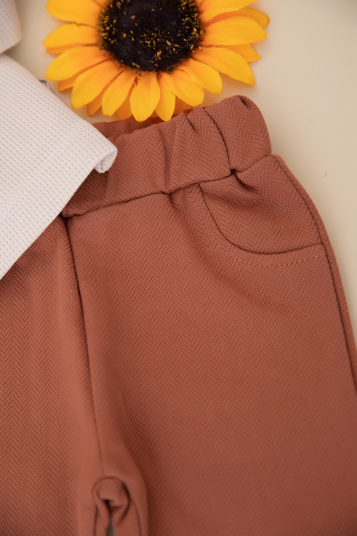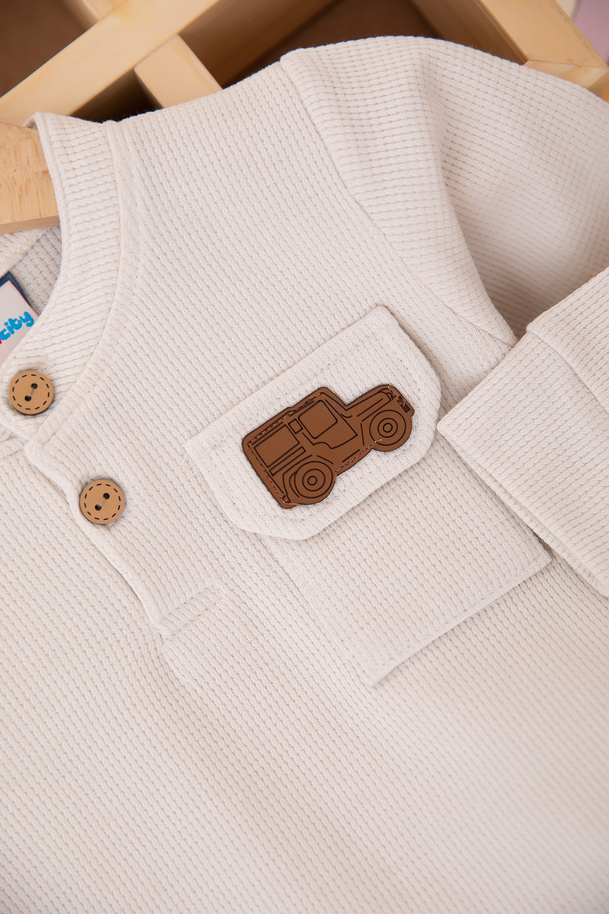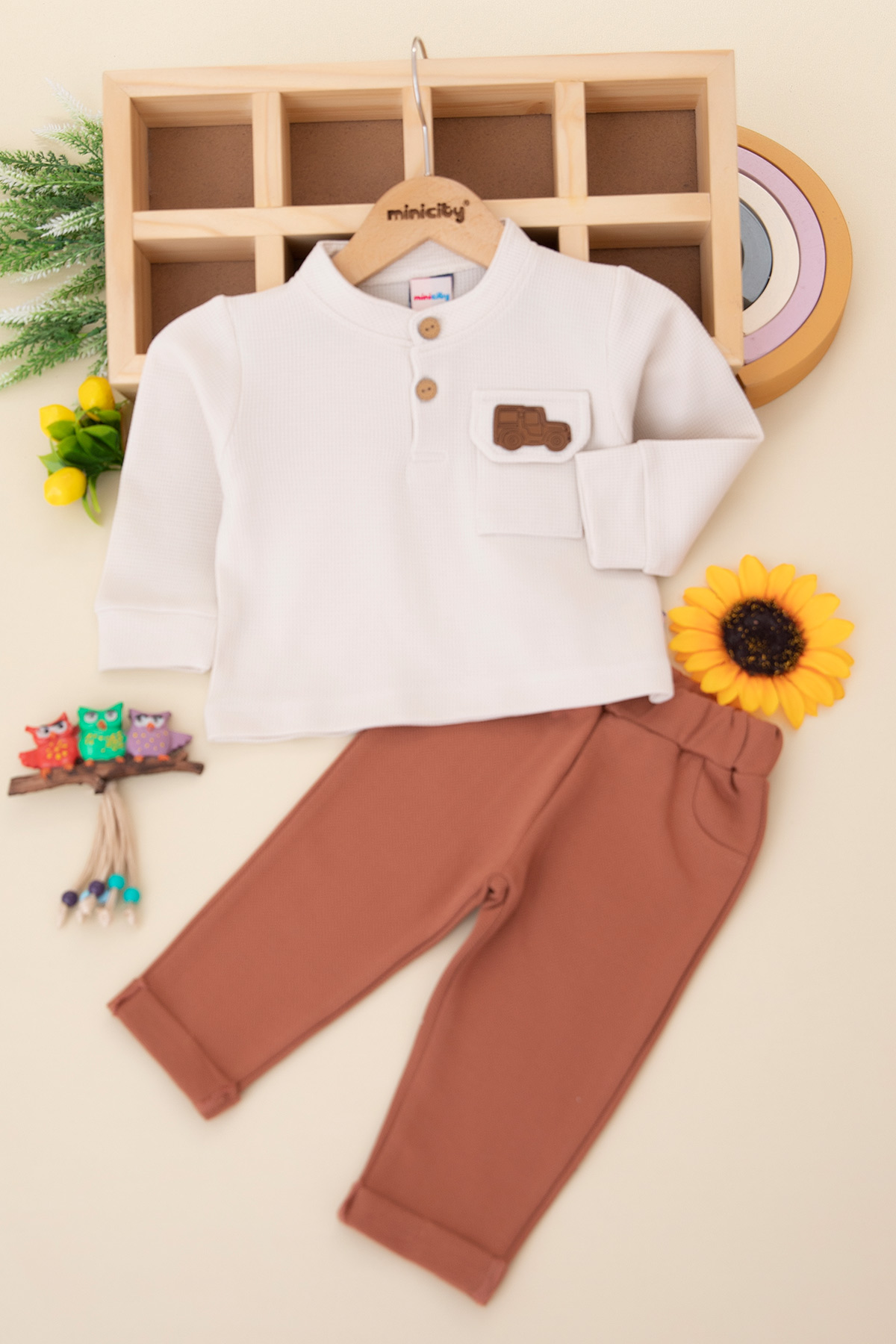 Erkek Bebek Cebi Nakışlı Düğmeli Takım - 24073 (9-24 Ay)