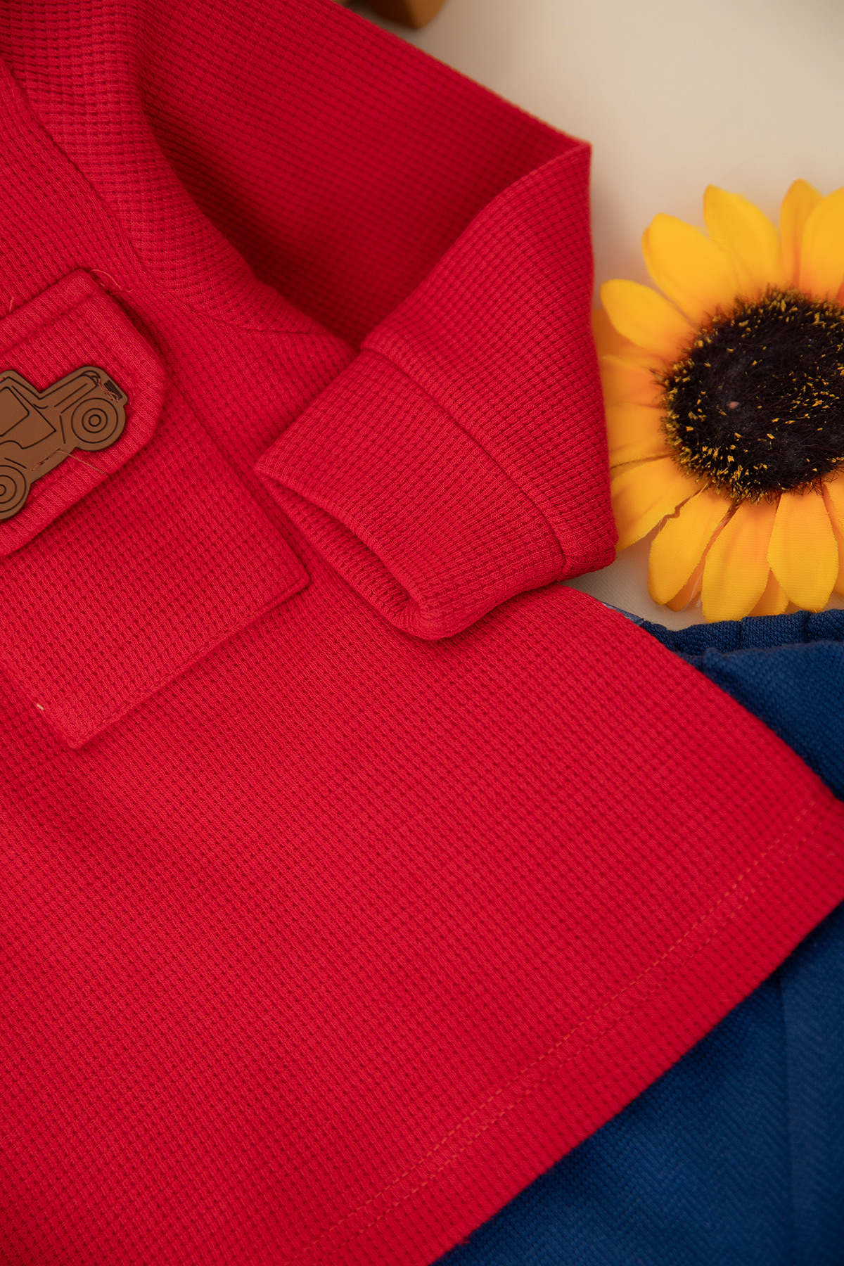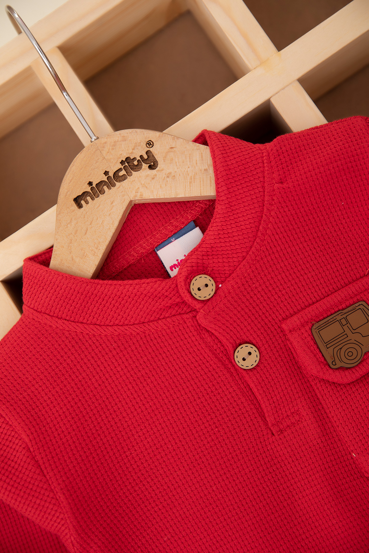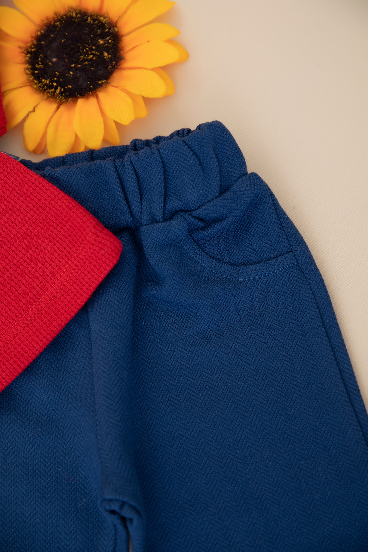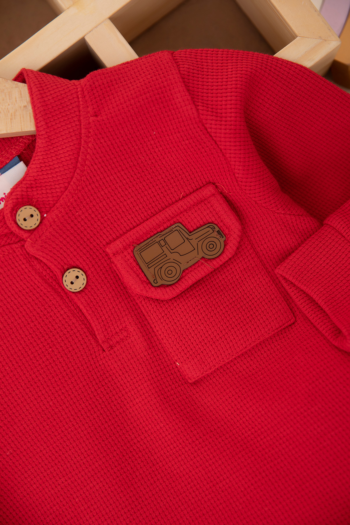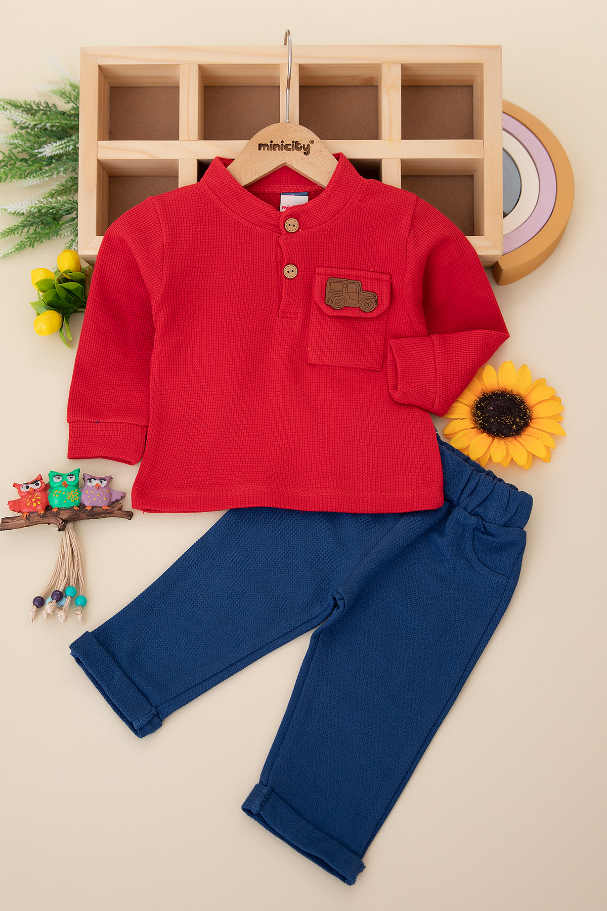 Erkek Bebek Cebi Nakışlı Düğmeli Takım - 24073 (9-24 Ay)
