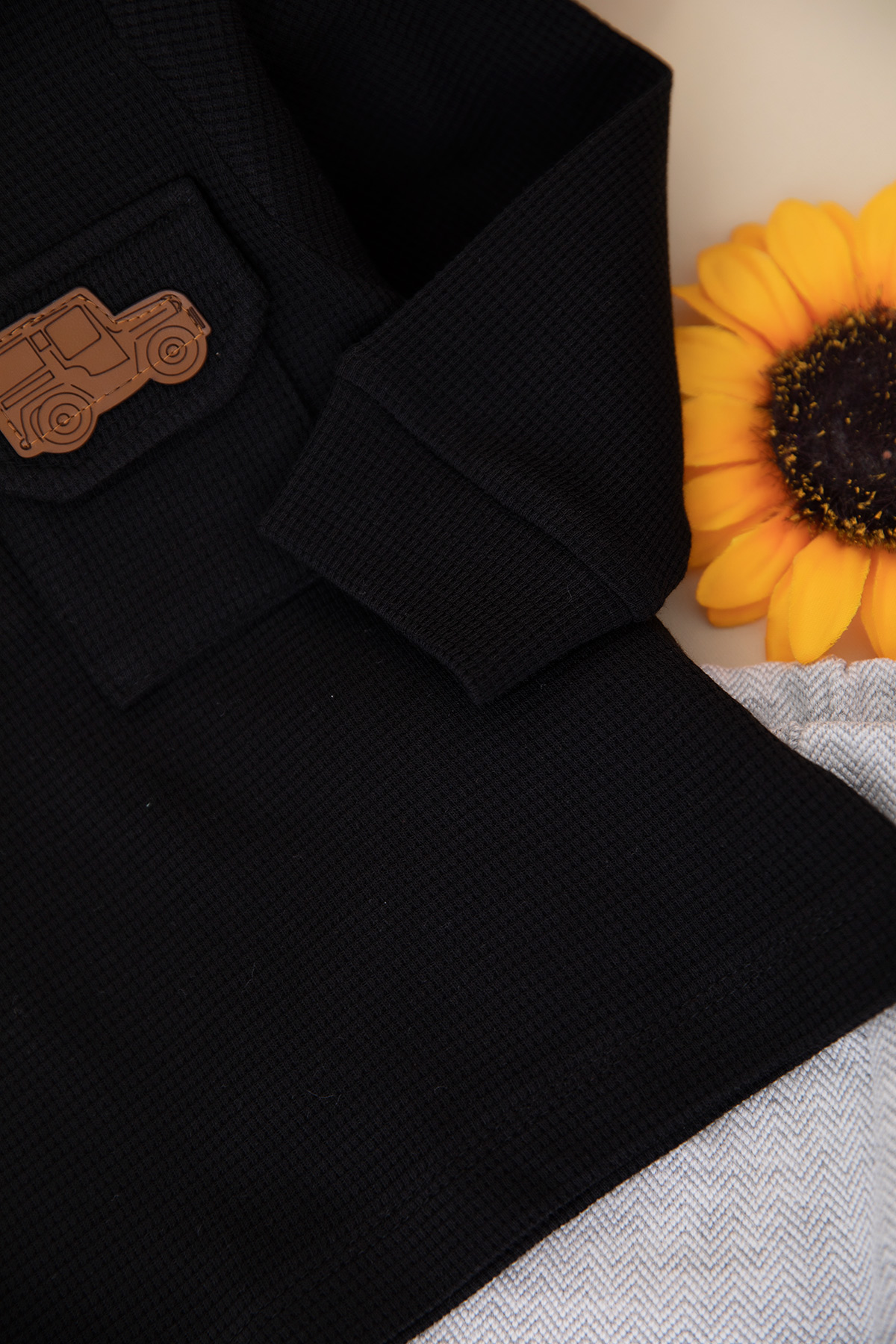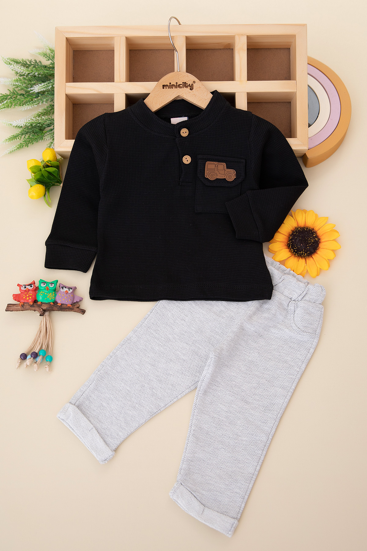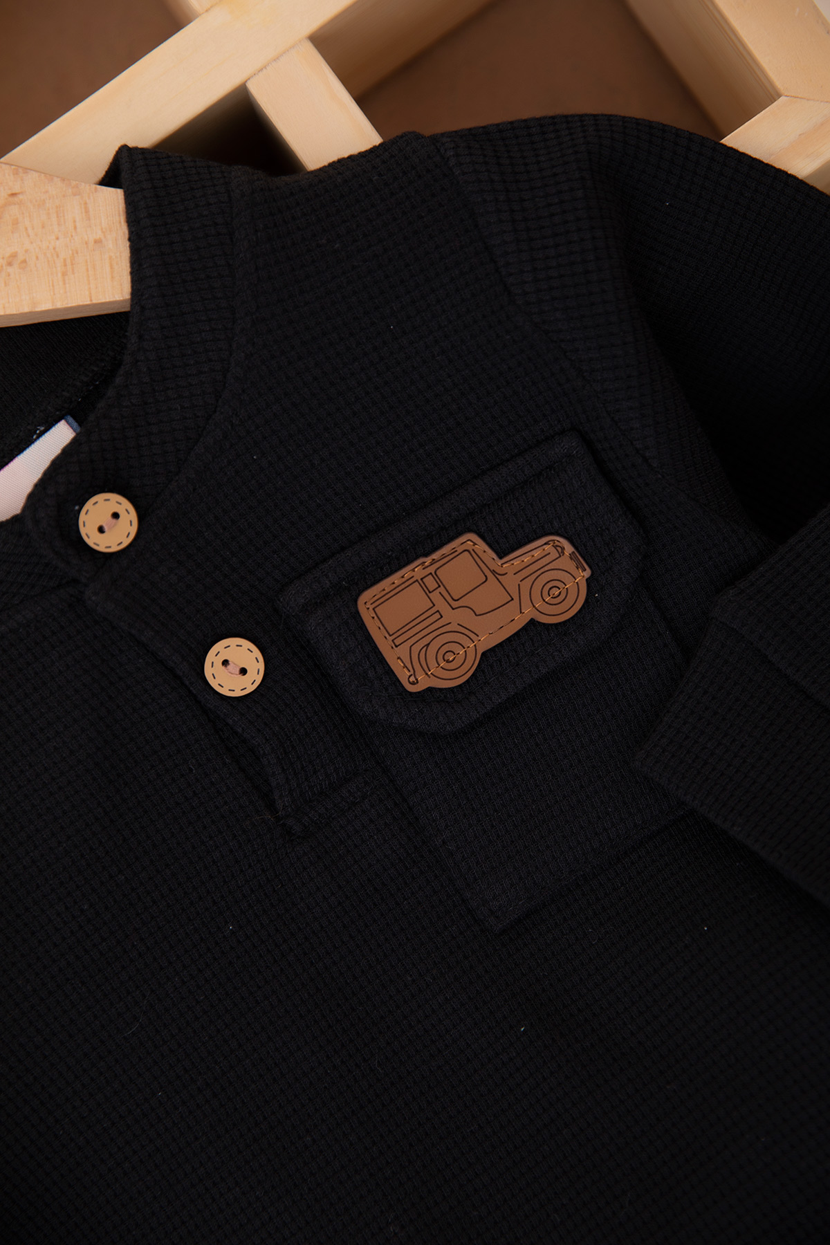 Erkek Bebek Cebi Nakışlı Düğmeli Takım - 24073 (9-24 Ay)