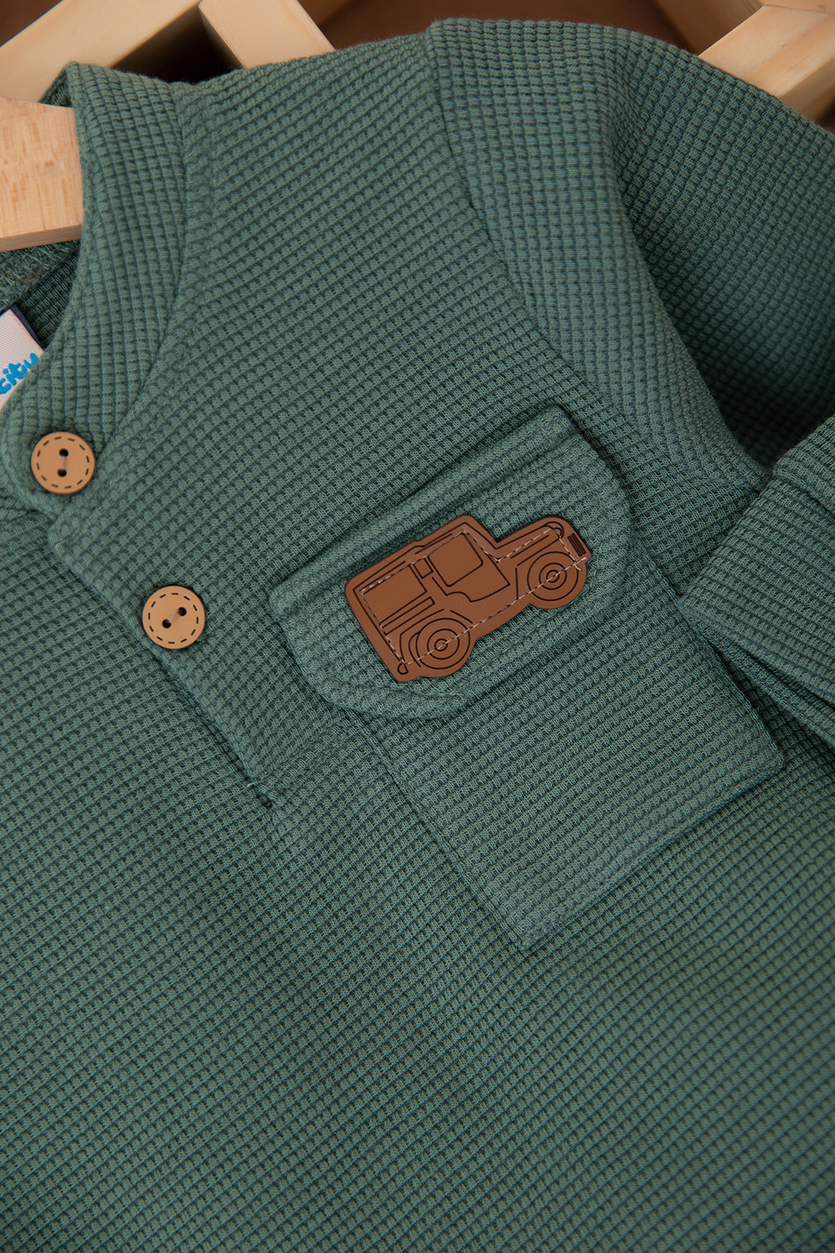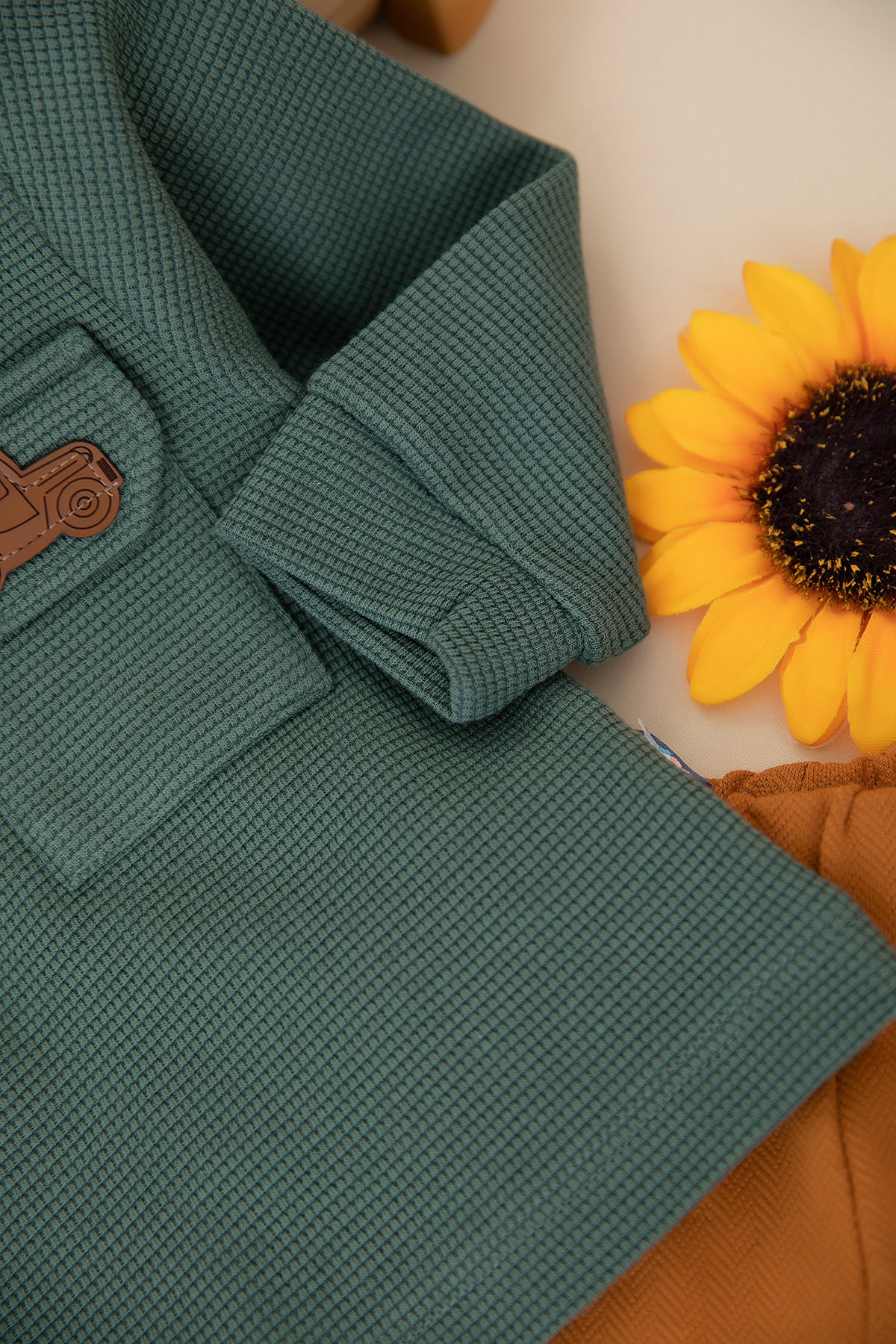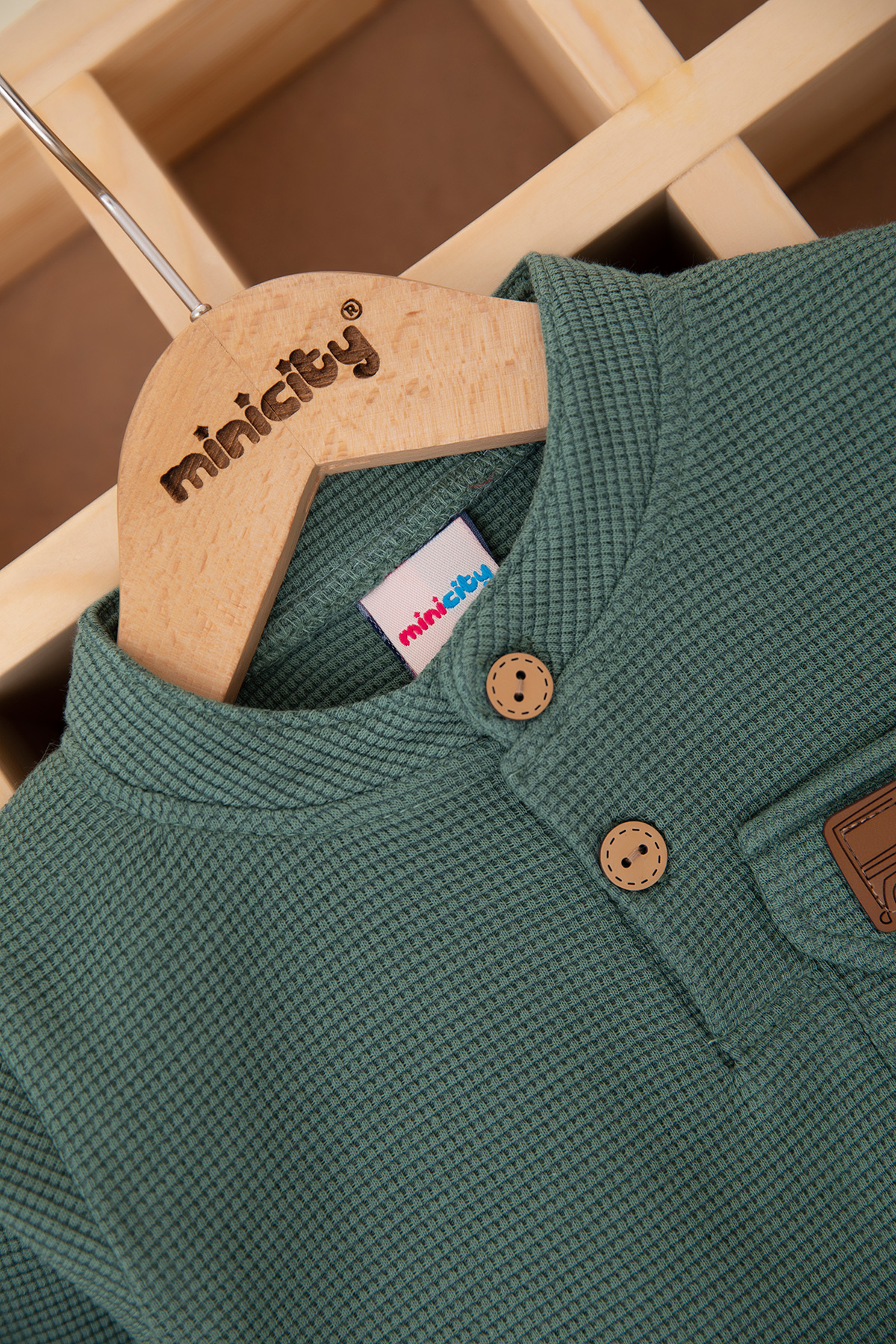 Erkek Bebek Cebi Nakışlı Düğmeli Takım - 24073 (9-24 Ay)