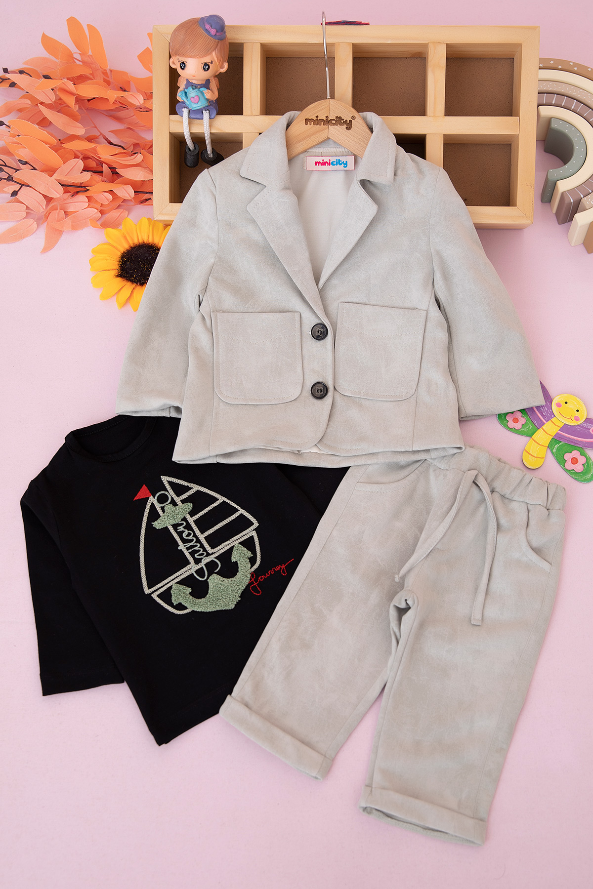 Erkek Bebek Ceketli Üçlü Takım - 5257 (6-18 Ay)