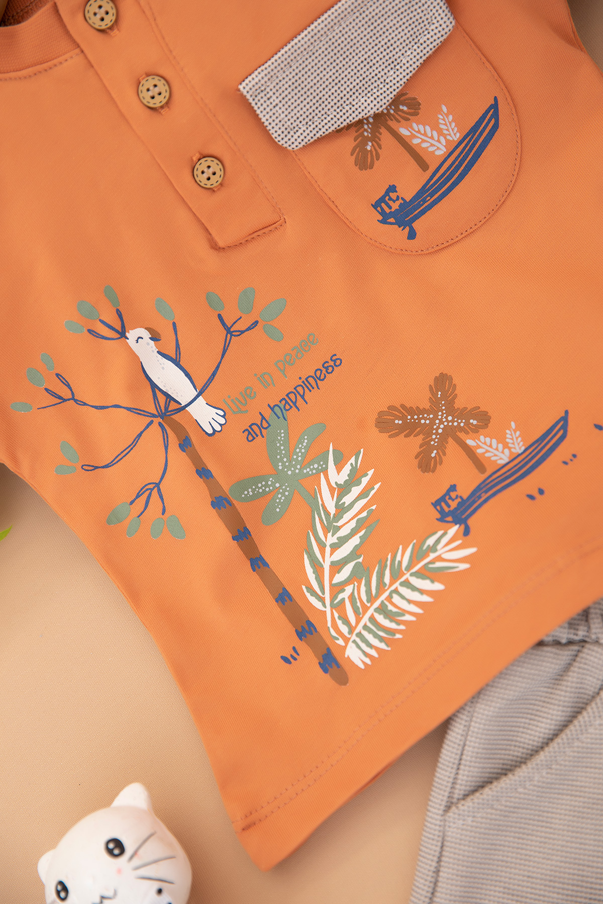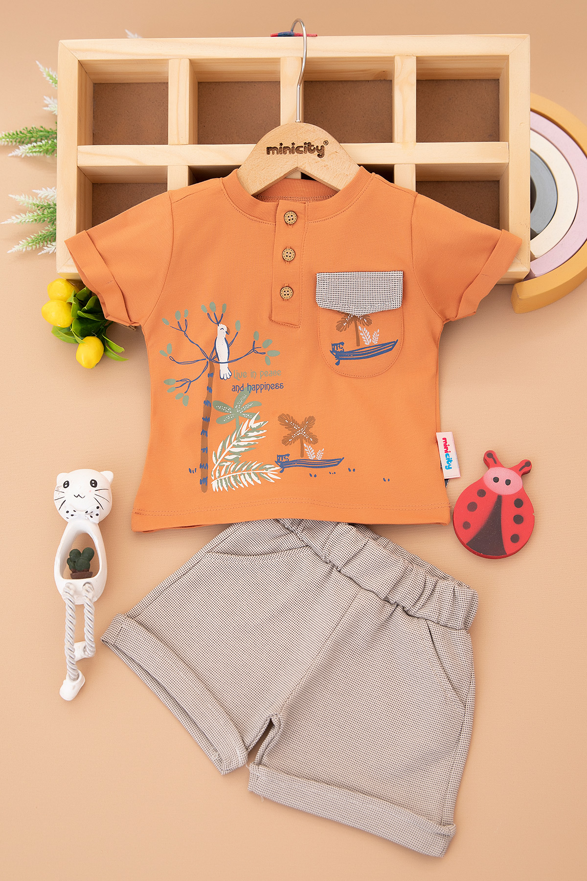 Erkek Bebek Cep Baskılı Duble Face Şortlu Takım - 24109 (9-24 Ay)