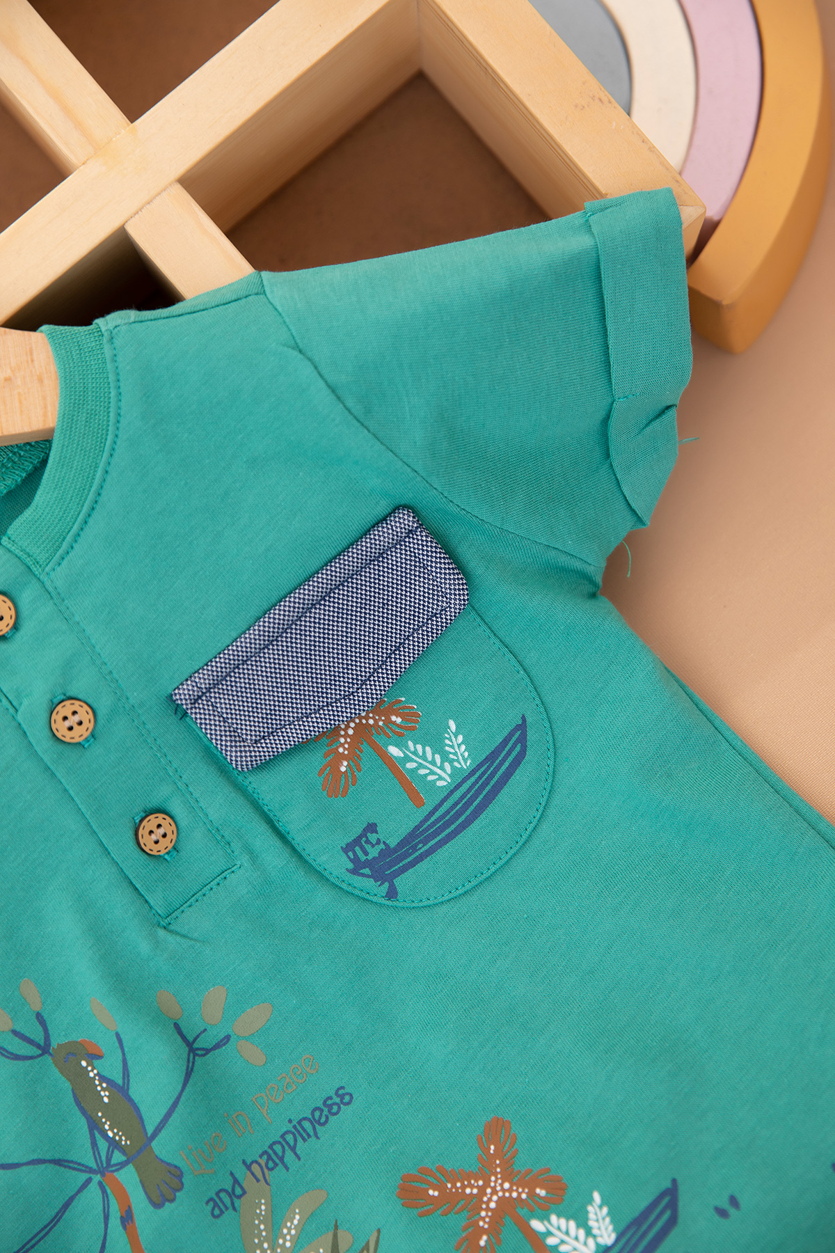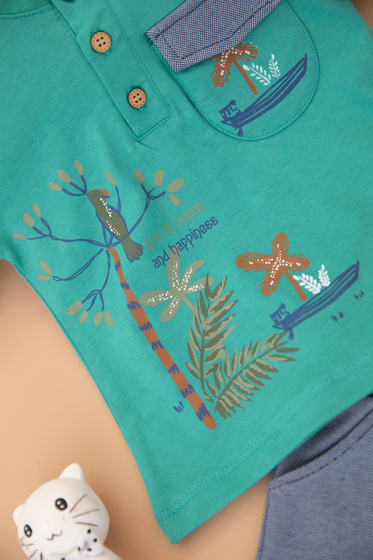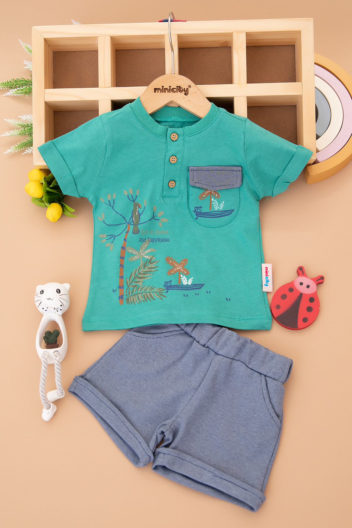 Erkek Bebek Cep Baskılı Duble Face Şortlu Takım - 24109 (9-24 Ay)