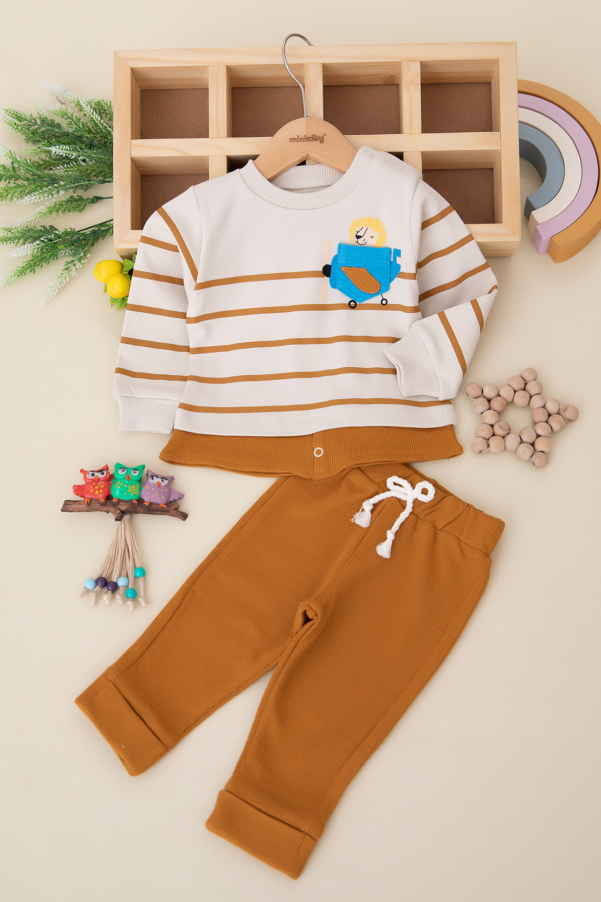 Erkek Bebek Cep Uçak Nakışlı Takım - 24032 (9-24 Ay)