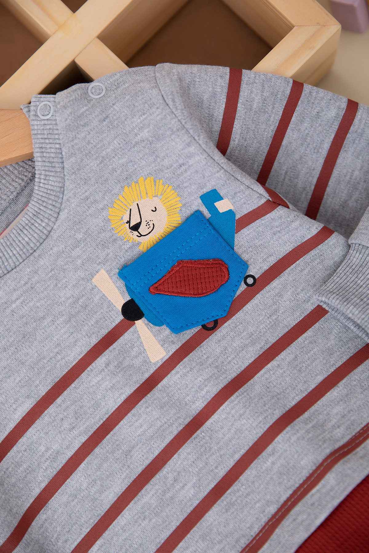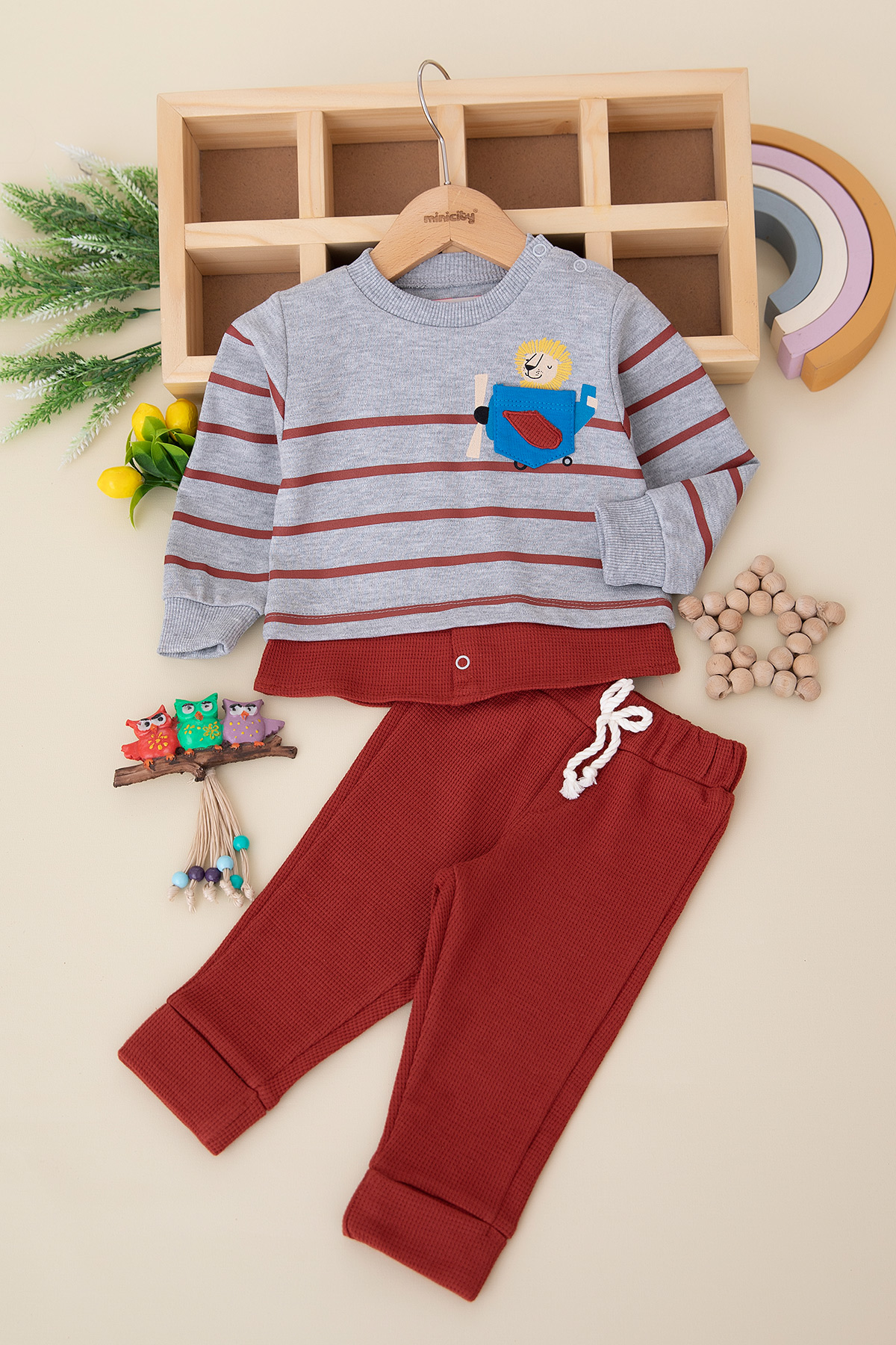 Erkek Bebek Cep Uçak Nakışlı Takım - 24032 (9-24 Ay)