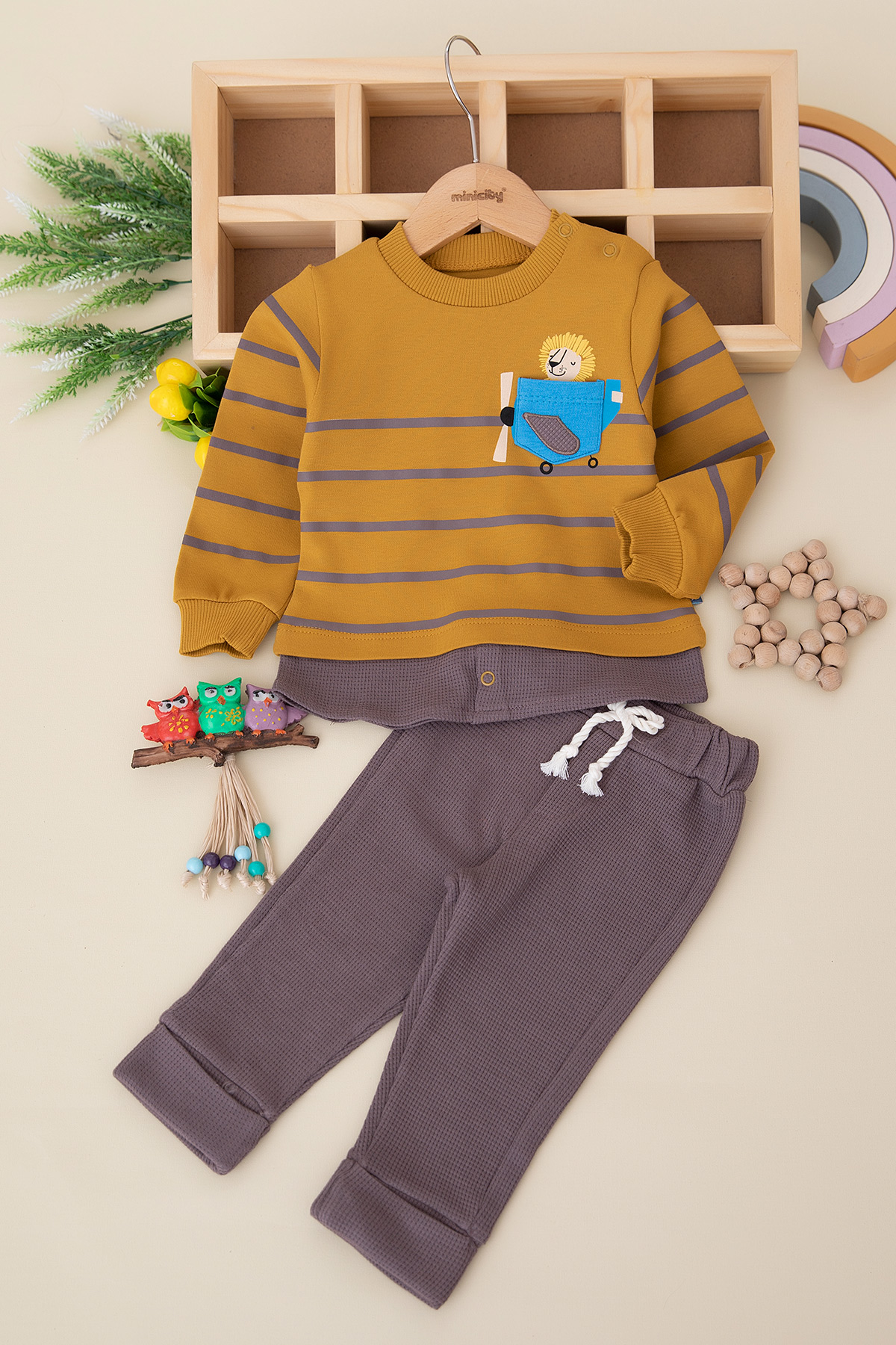 Erkek Bebek Cep Uçak Nakışlı Takım - 24032 (9-24 Ay)