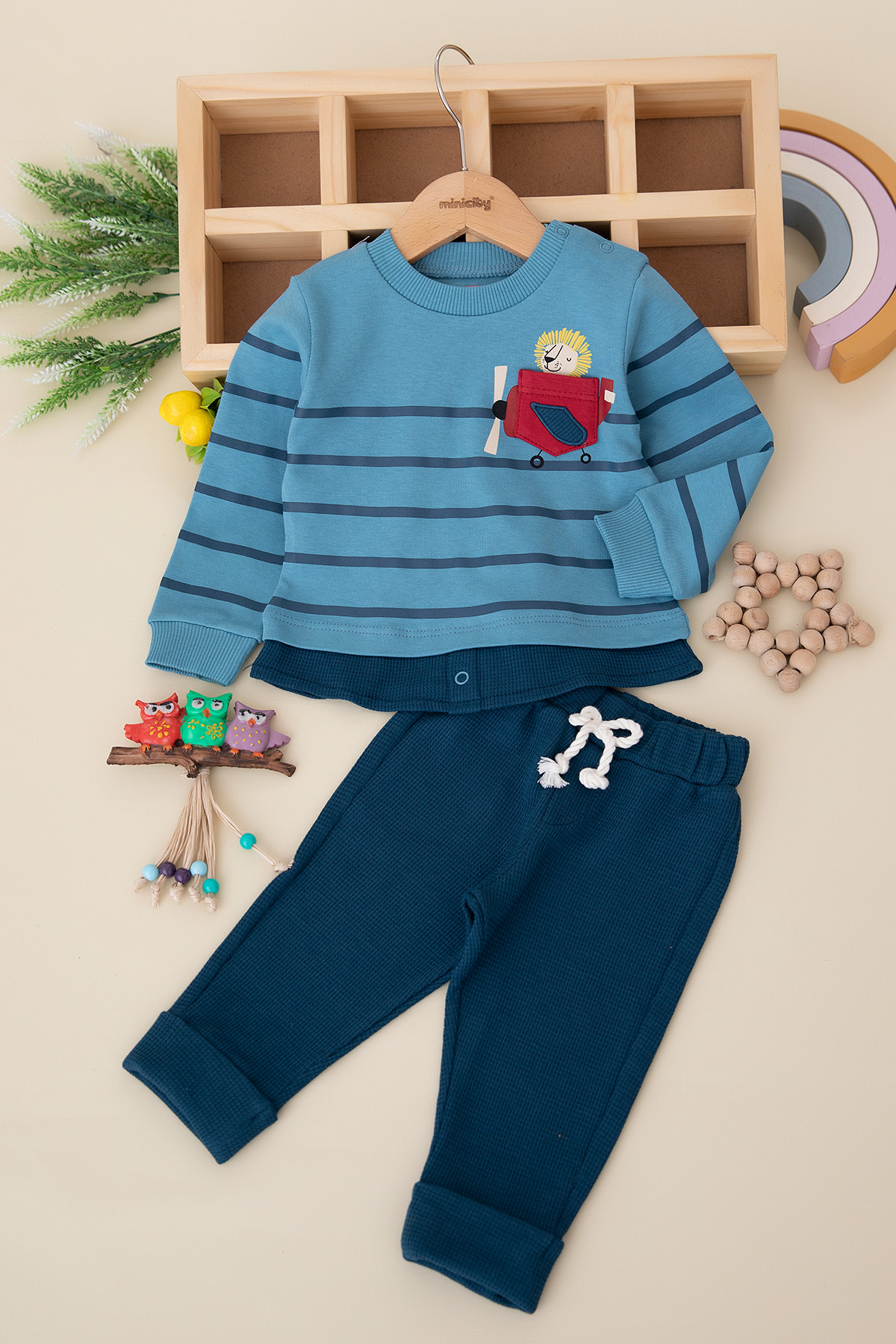 Erkek Bebek Cep Uçak Nakışlı Takım - 24032 (9-24 Ay)