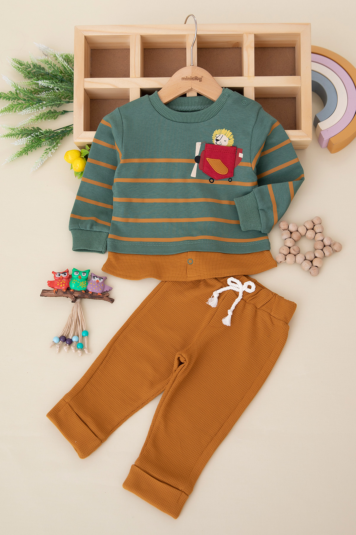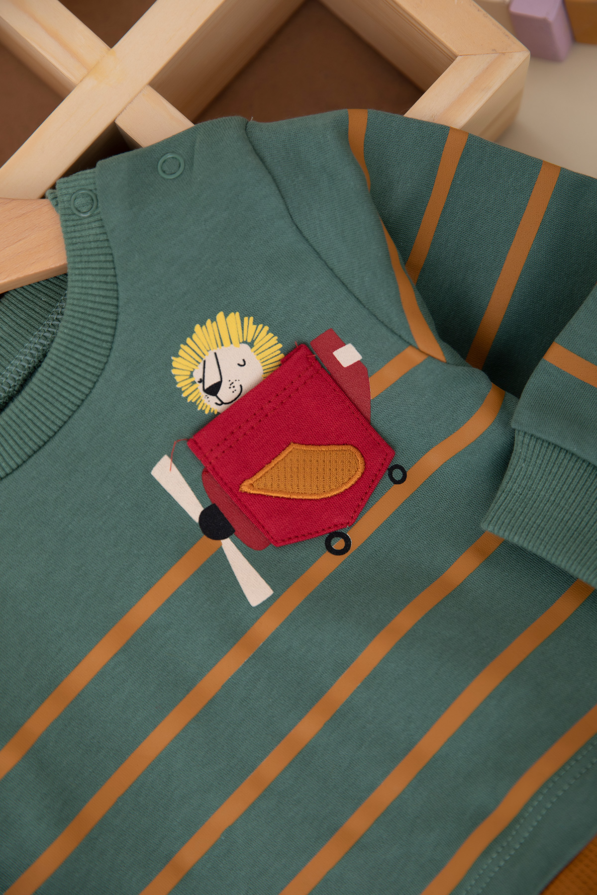 Erkek Bebek Cep Uçak Nakışlı Takım - 24032 (9-24 Ay)