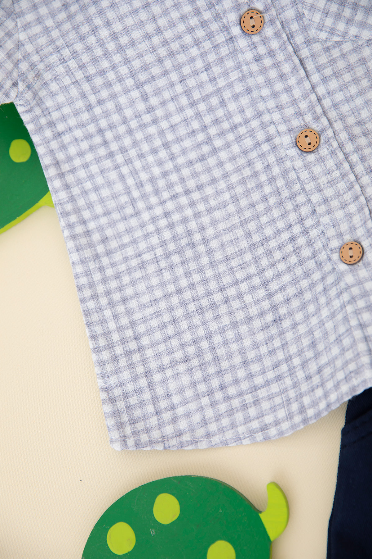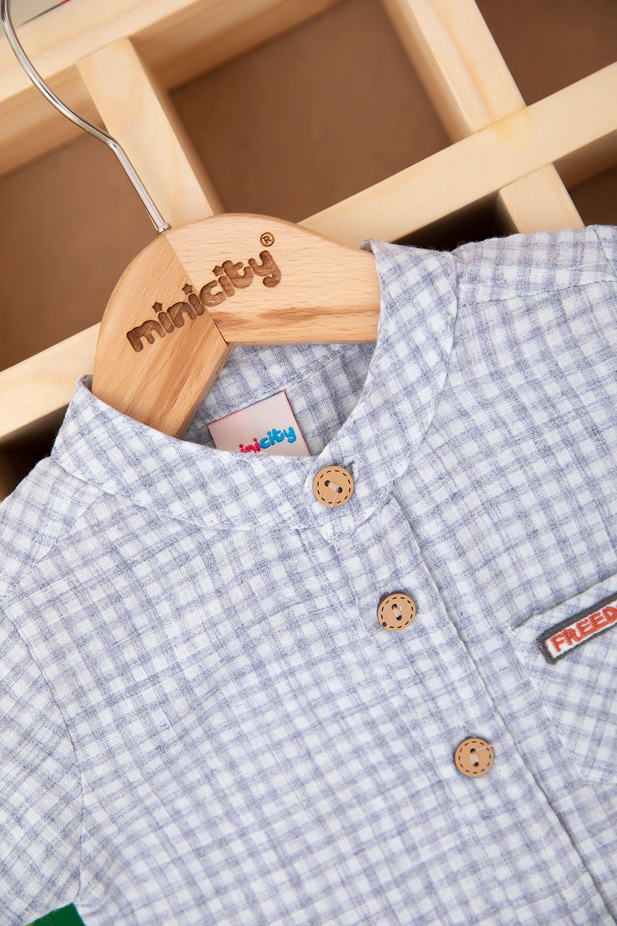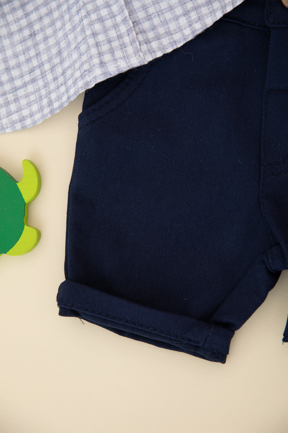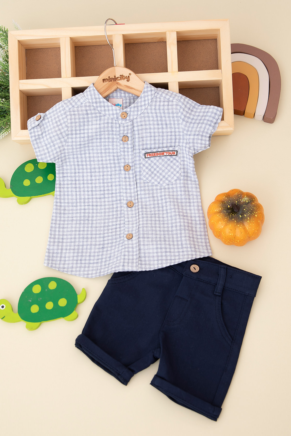 Erkek Bebek Cep Yazılı Gömlekli Takım - 3916 (9-24 Ay)