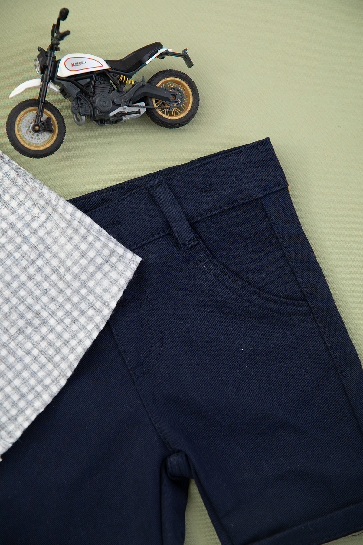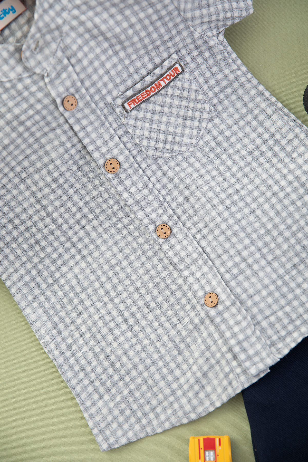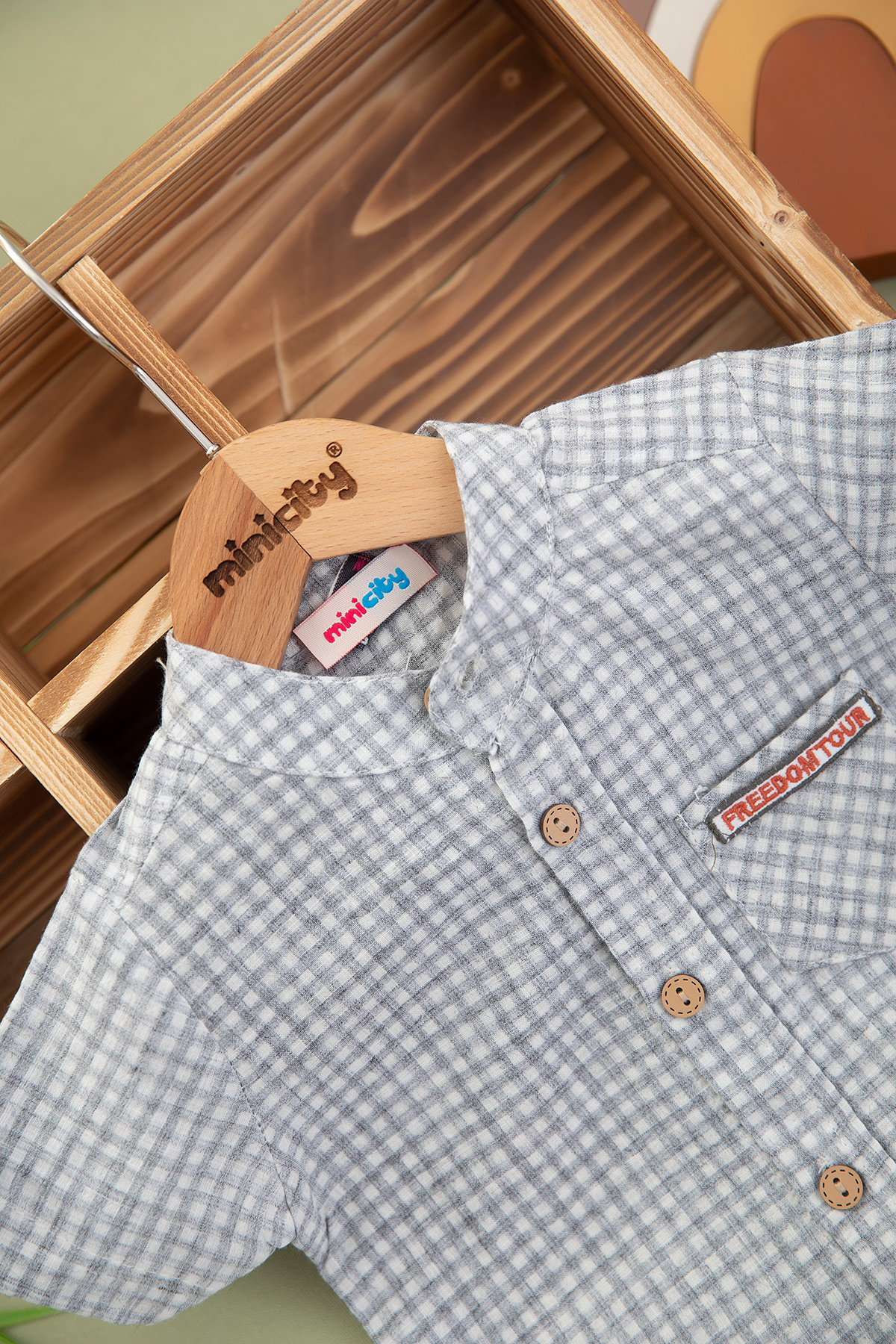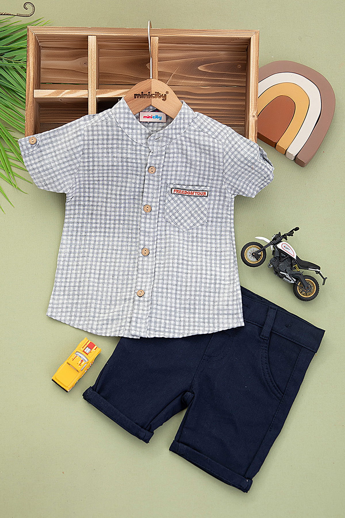 Erkek Bebek Cep Yazılı Gömlekli Takım - 3916 (9-24 Ay)