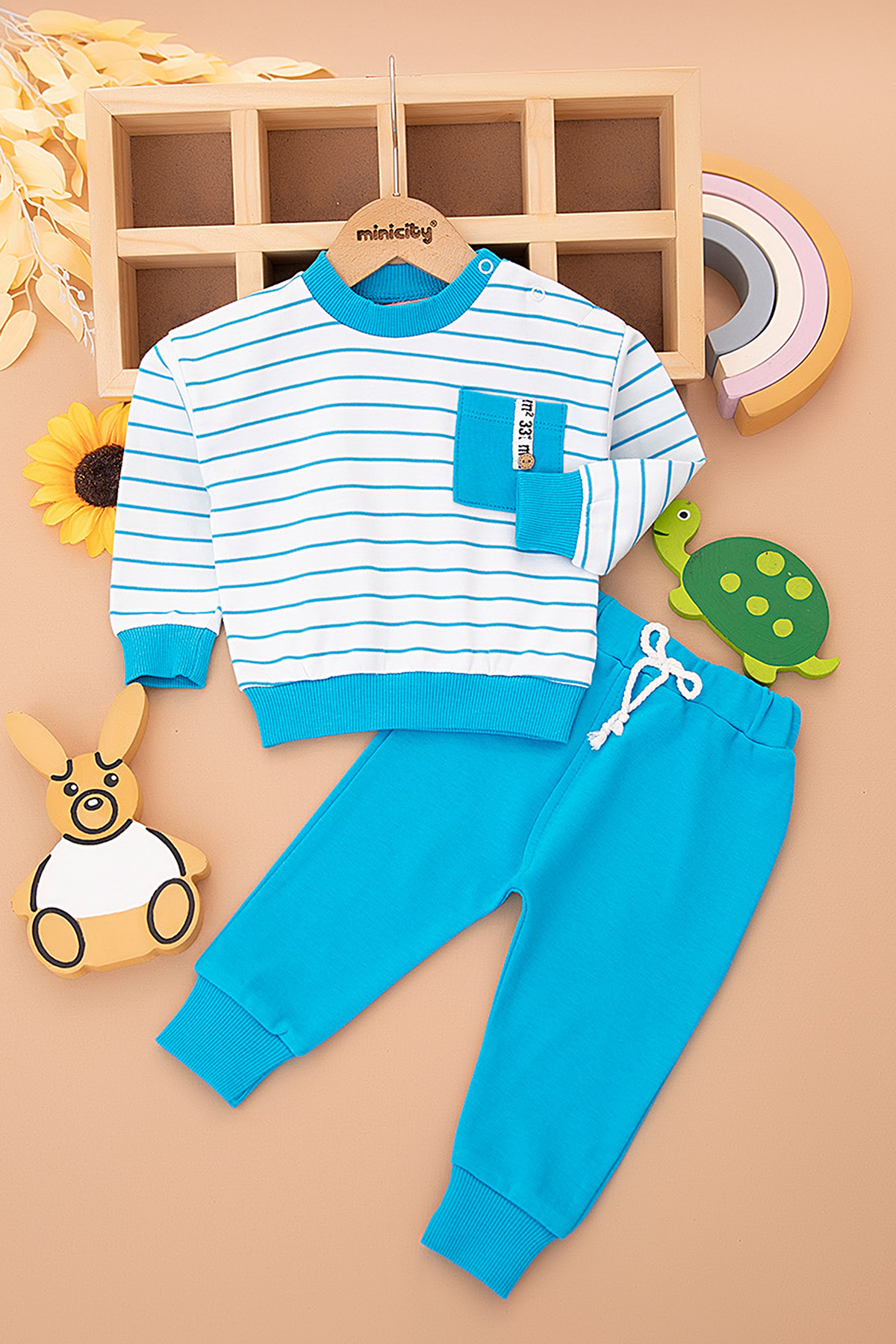 Erkek Bebek Cepli Çizgili Takım - 24516 (9-24 Ay)