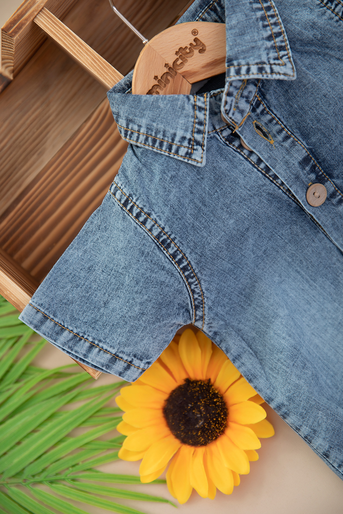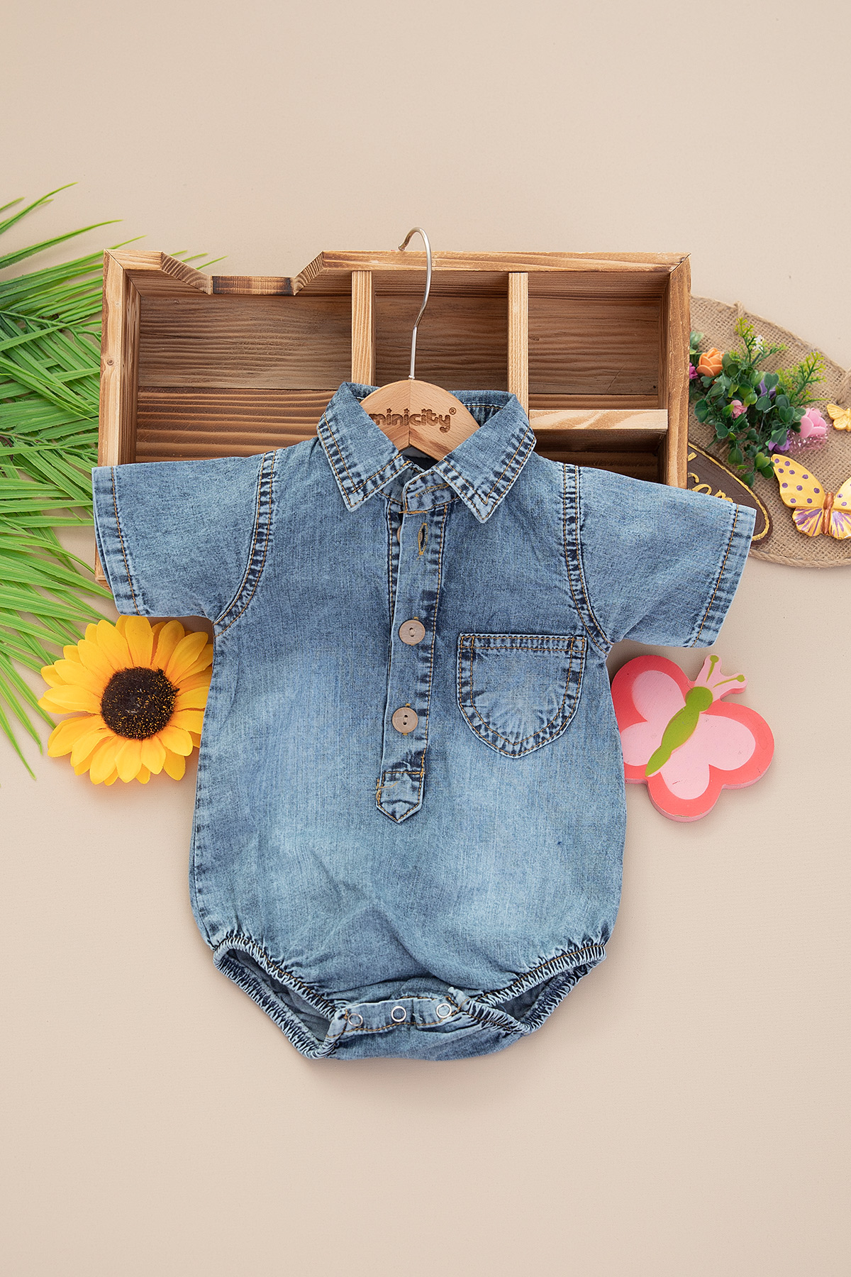 Erkek Bebek Cepli Kot Zıbın Gömlek - 3226 (6-18 Ay)
