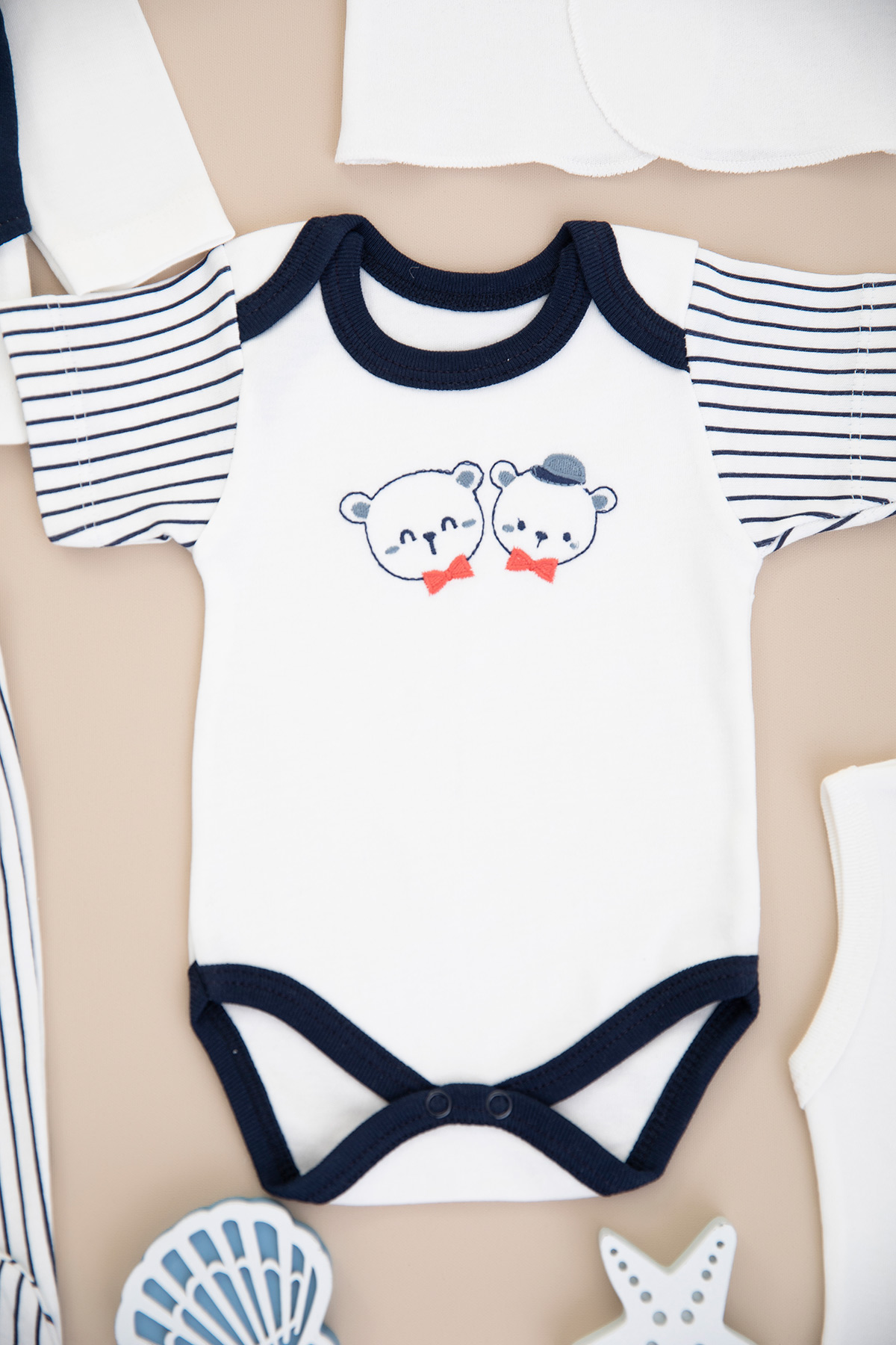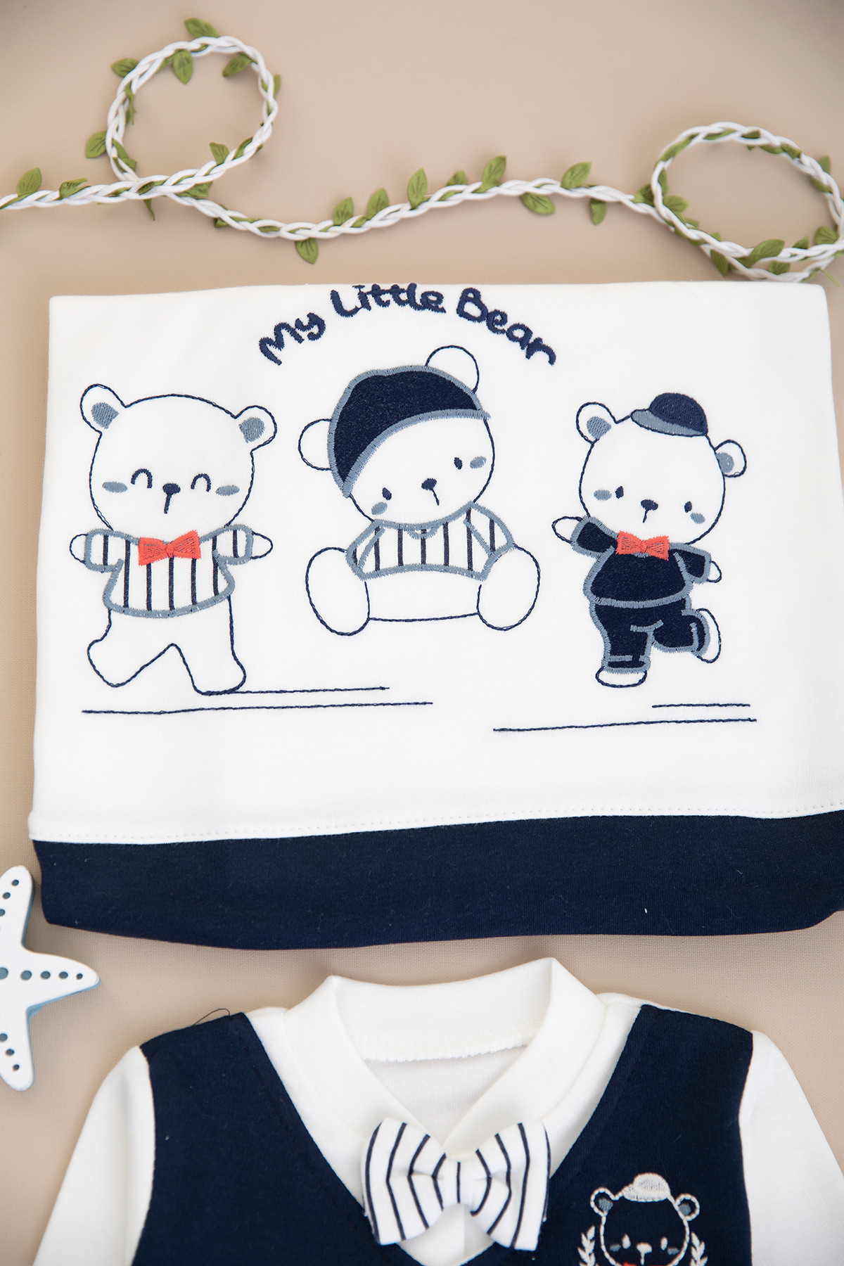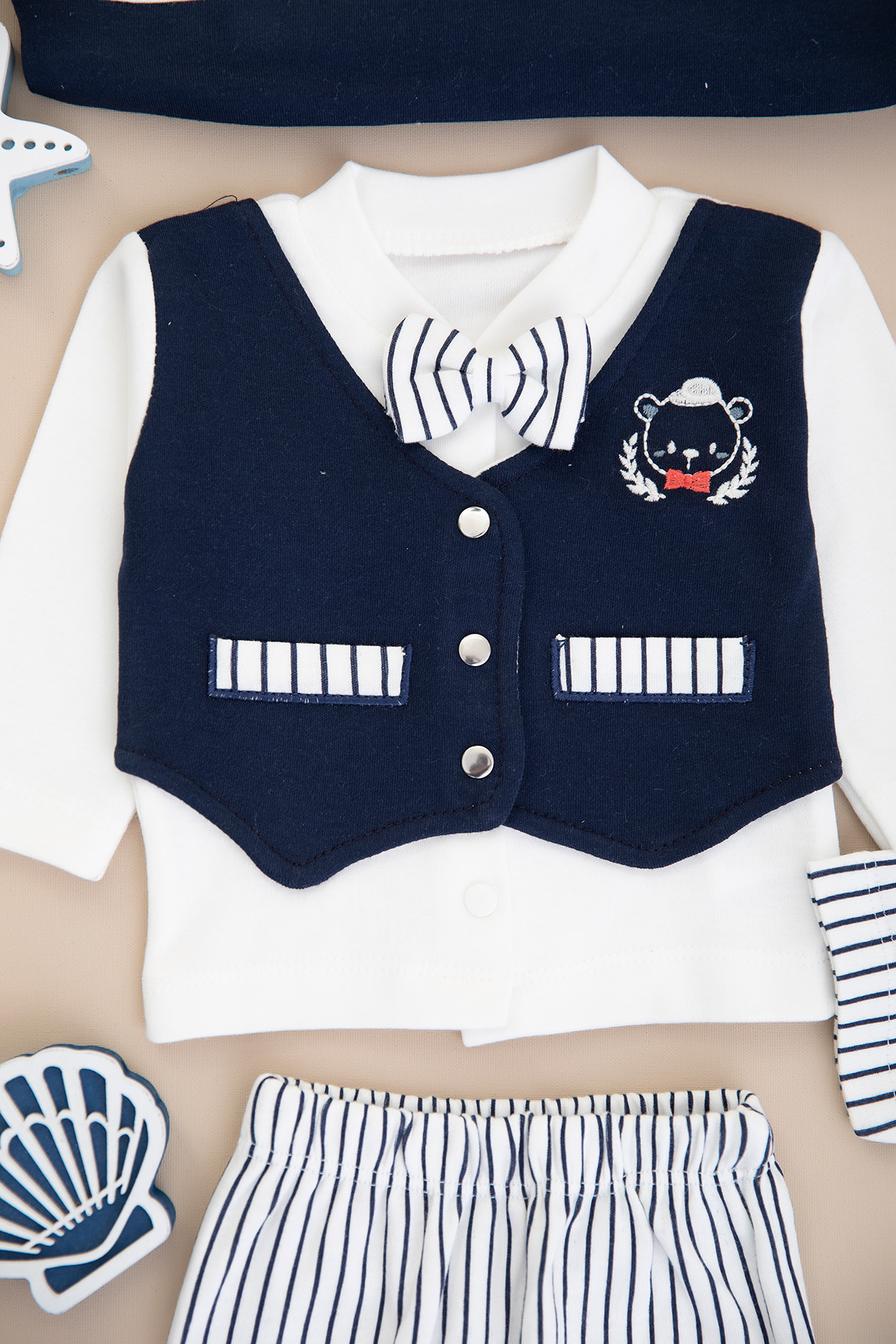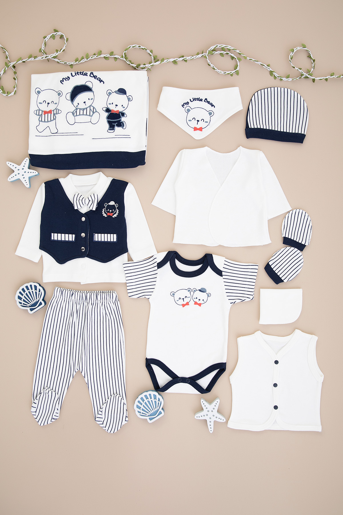 Erkek Bebek Cepli Yelekli Papuonlu 10`Lu Zıbın Seti