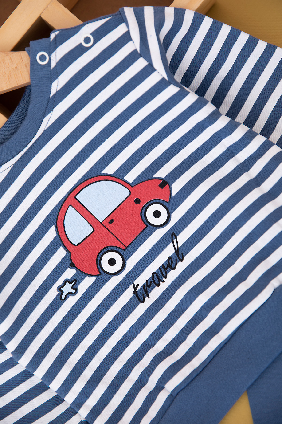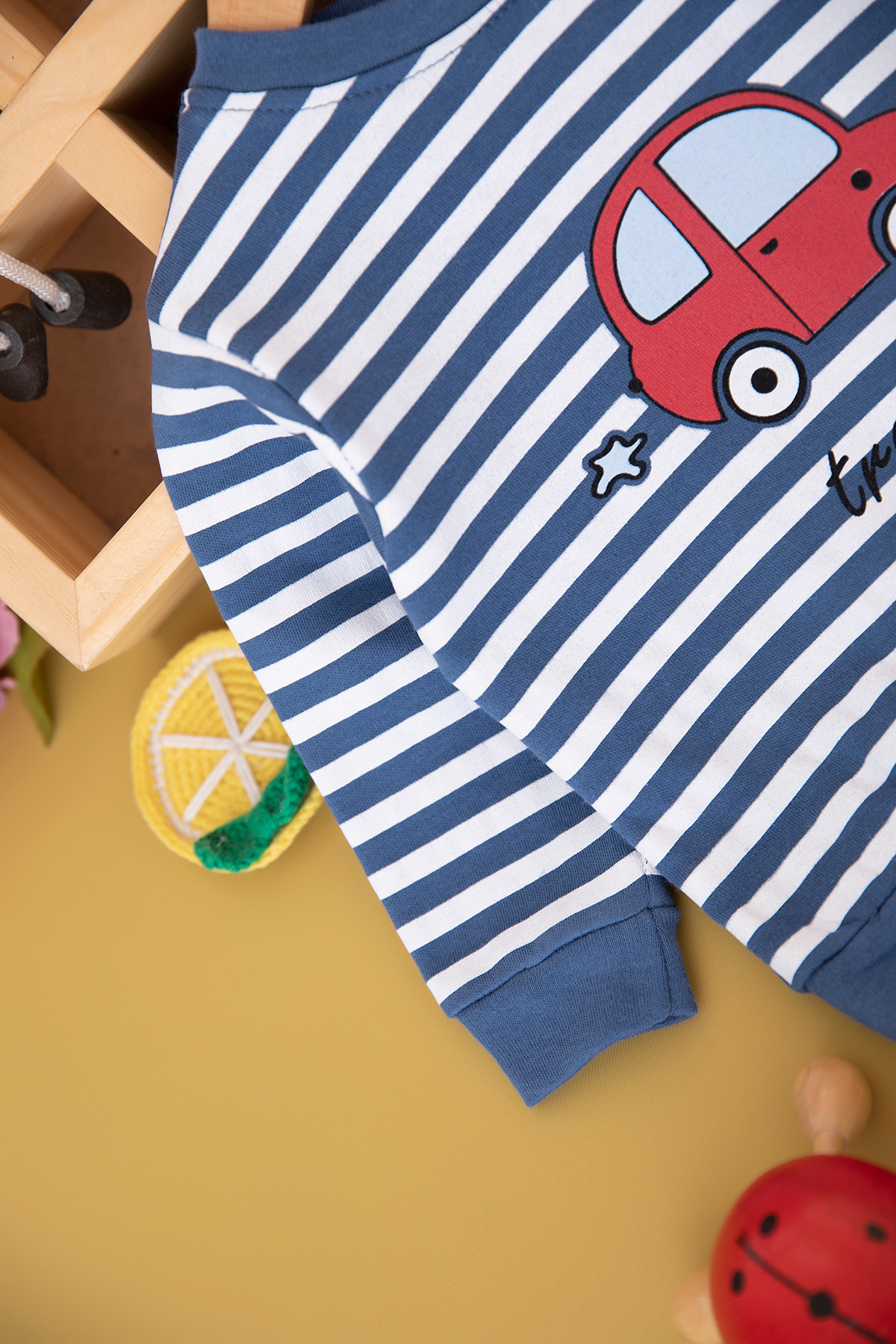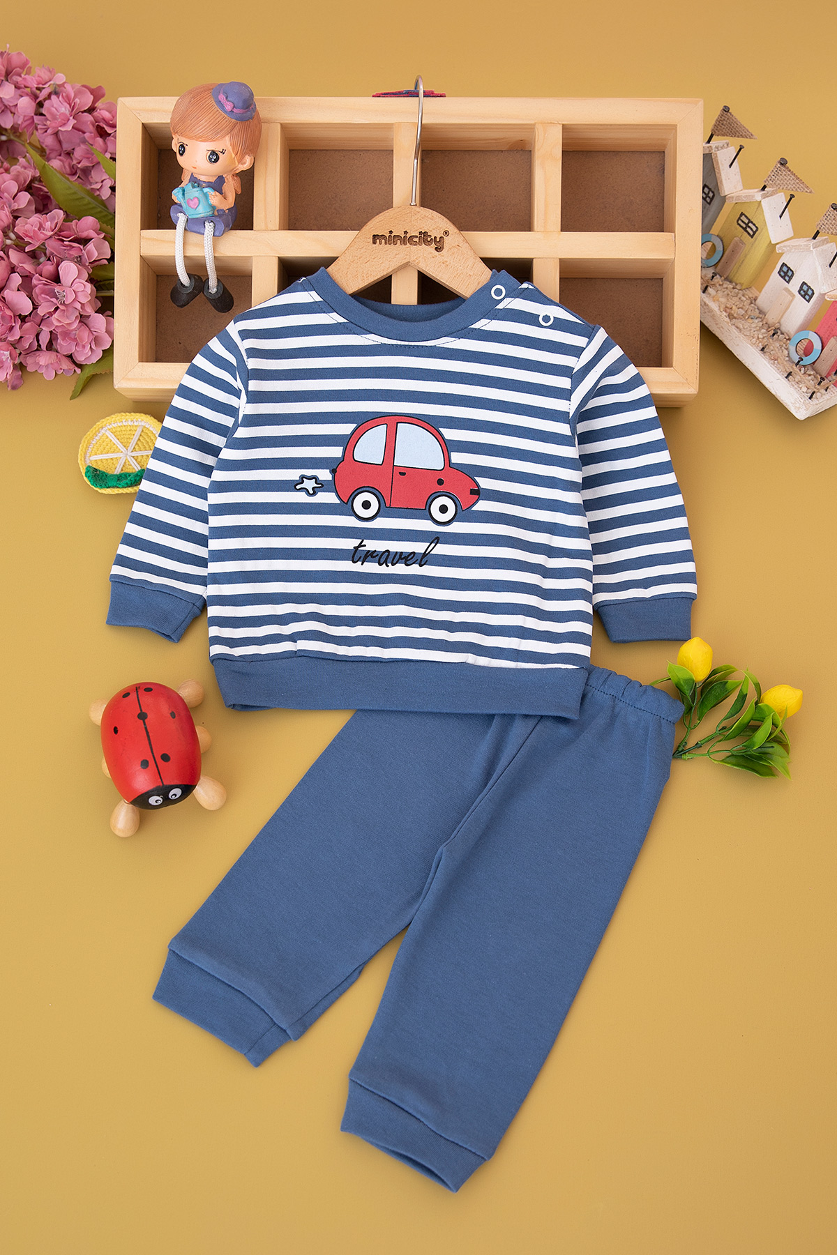 Erkek Bebek Çizgili Araba Baskılı Takım (9-18 Ay)