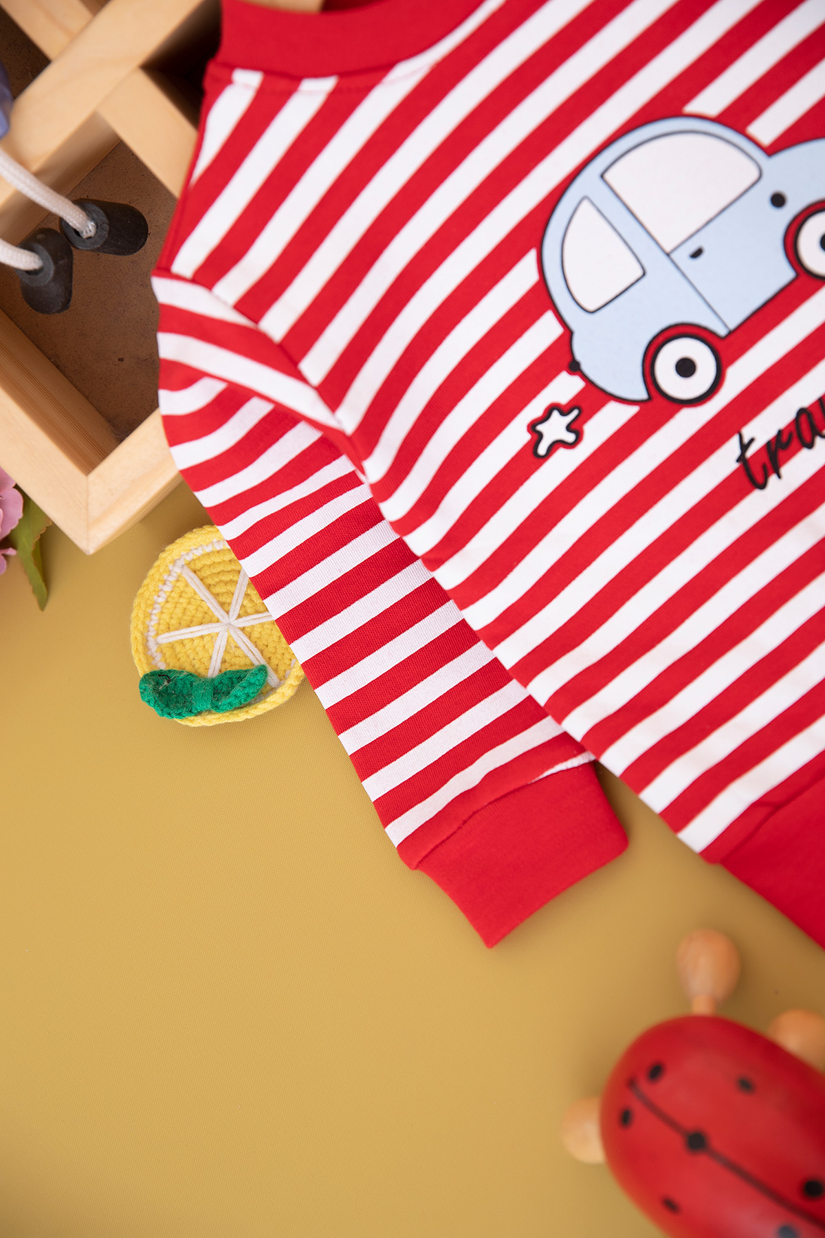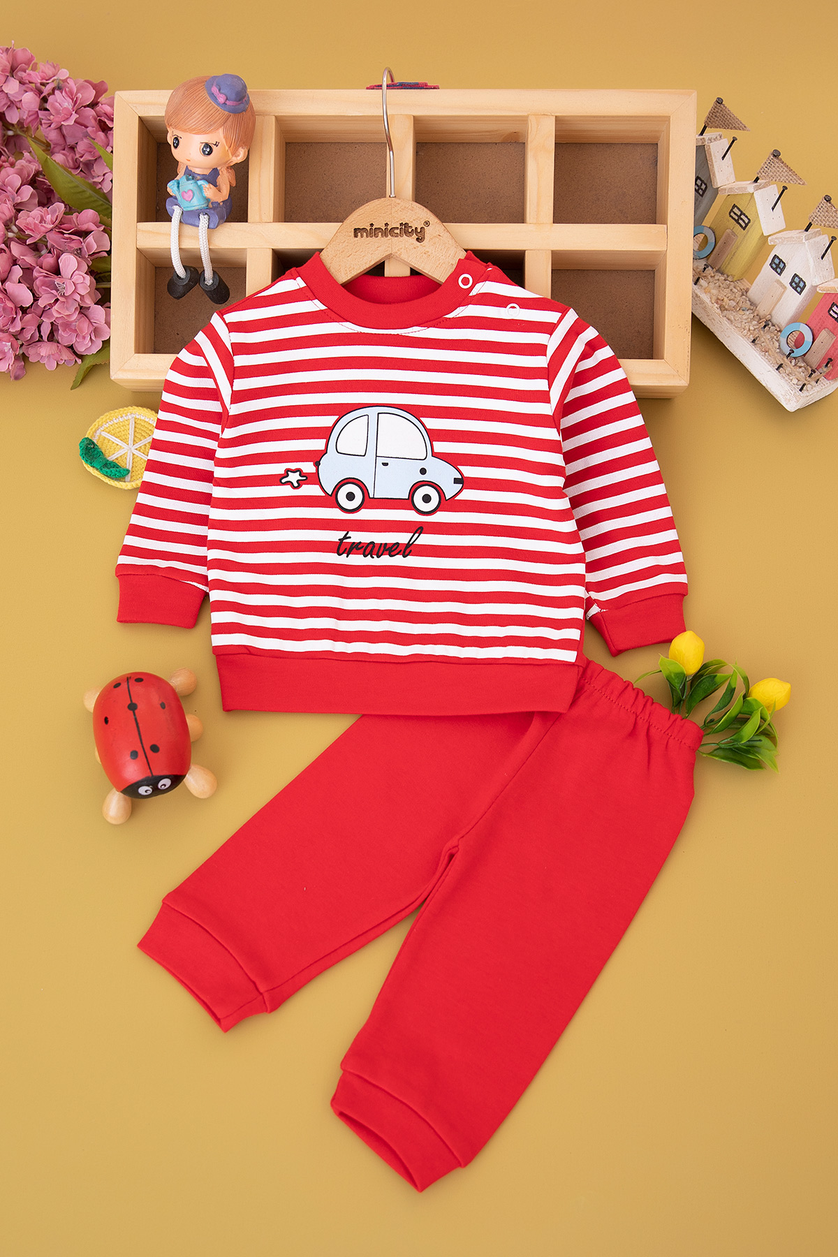 Erkek Bebek Çizgili Araba Baskılı Takım (9-18 Ay)