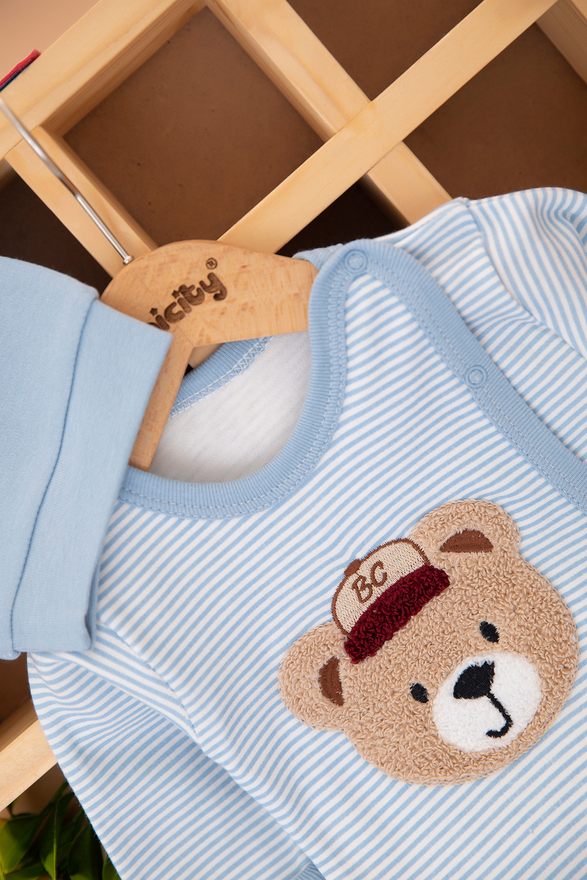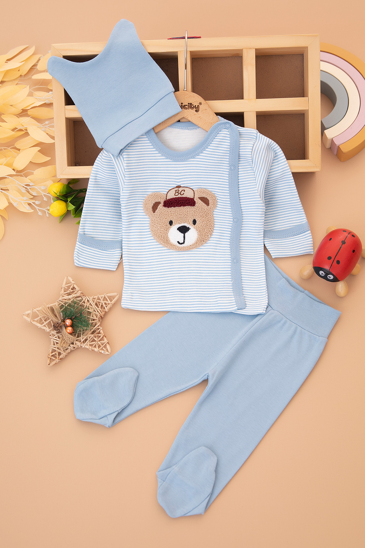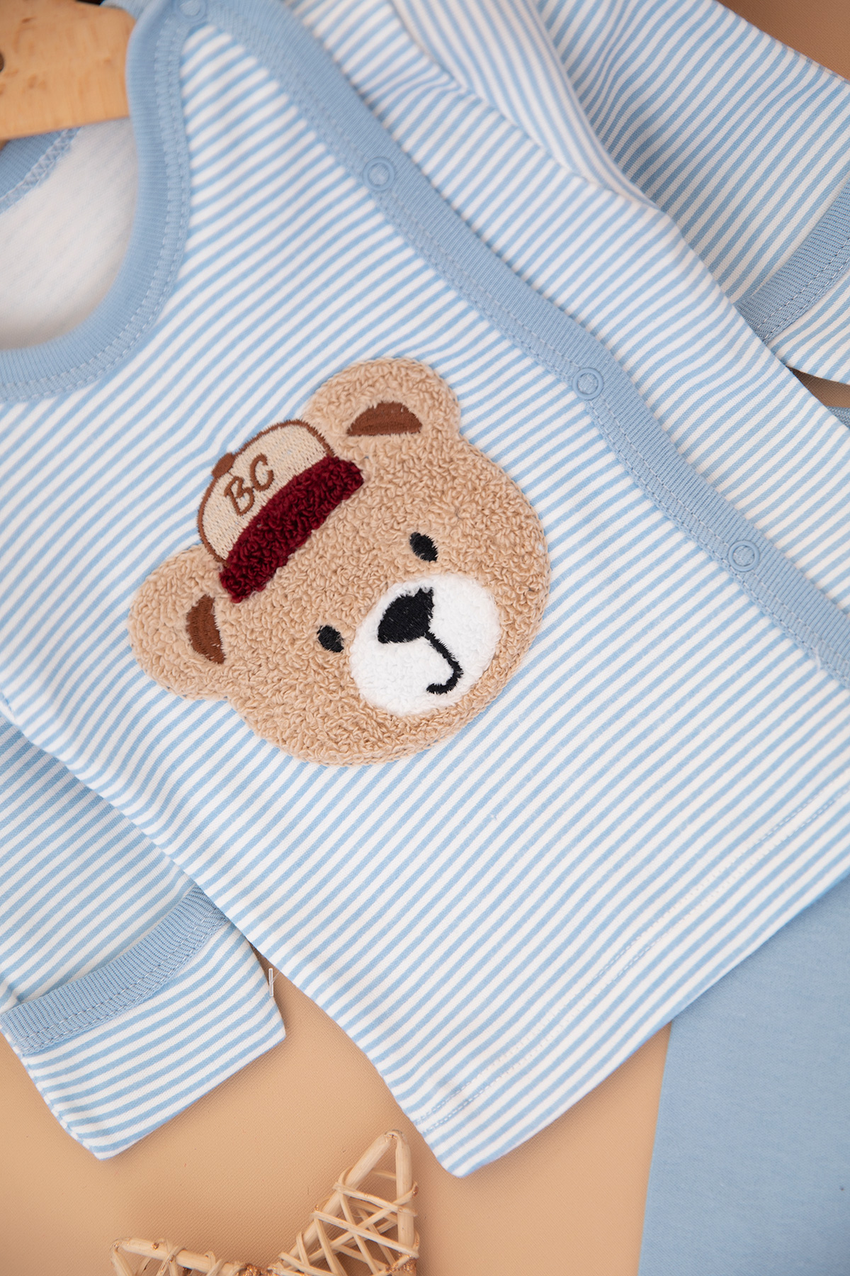 Erkek Bebek Çizgili Ayıcık Zıbın Takımı - 9401 (0-3 Ay)
