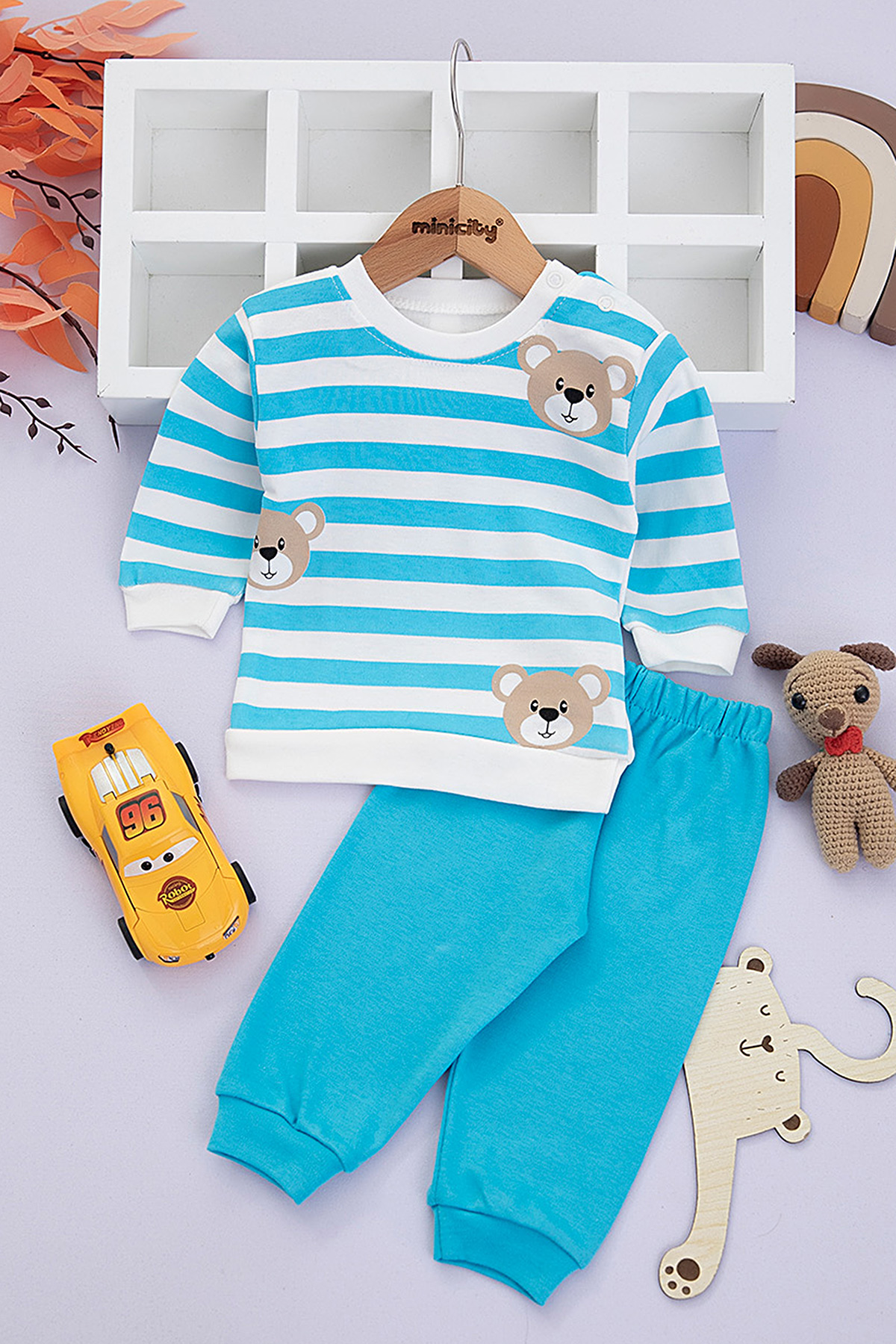 Erkek Bebek Çizgili Ayıcıklı Takım - 1062 (6-18 Ay)