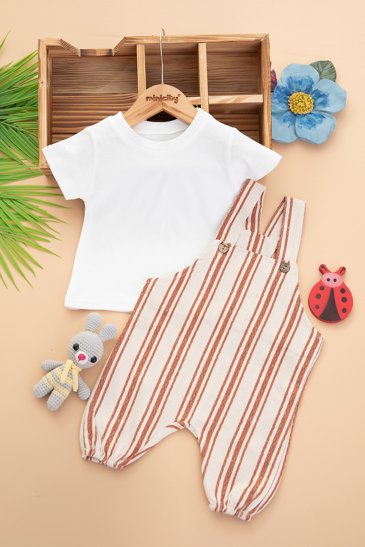 Erkek Bebek Çizgili Badili Şort Salopet (3-12 Ay)