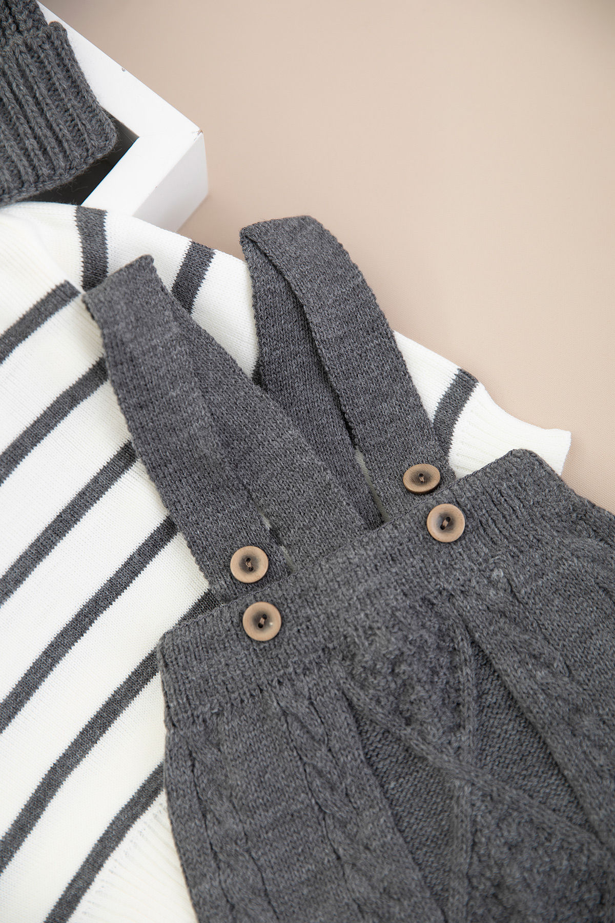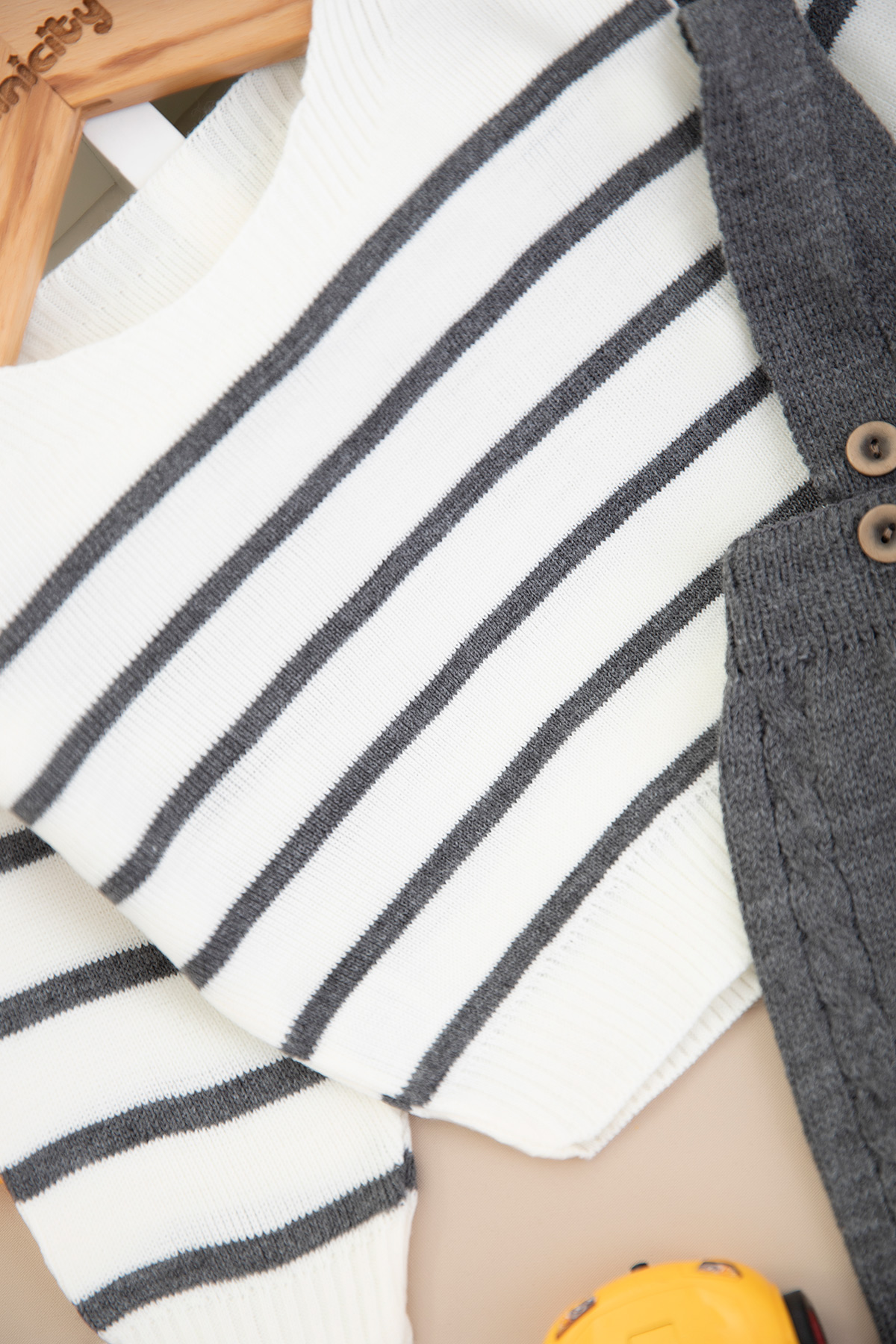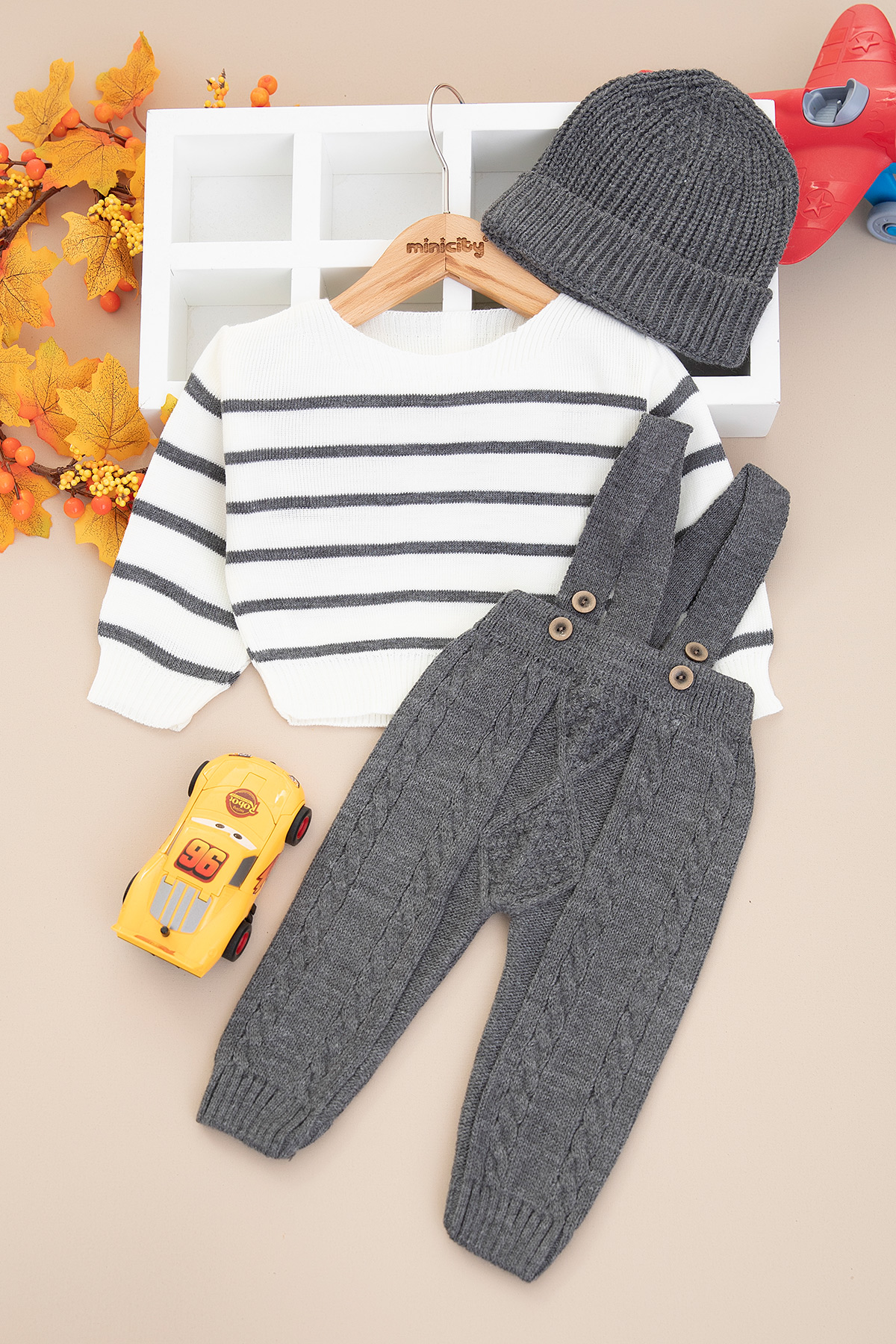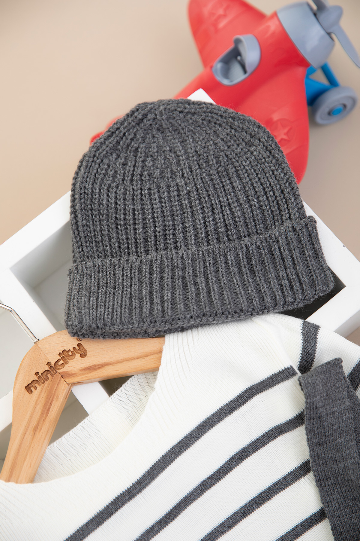 Erkek Bebek Çizgili Bereli Triko Takım - 6424 (3-18 Ay)