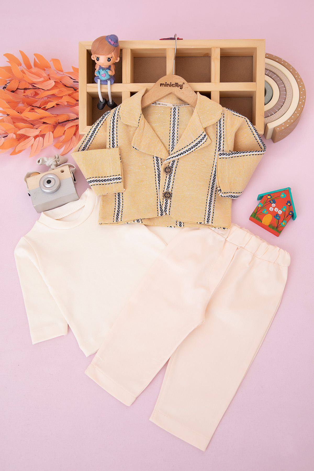 Erkek Bebek Çizgili Ceketli Üçlü Takım - 1763 (9-24 Ay)
